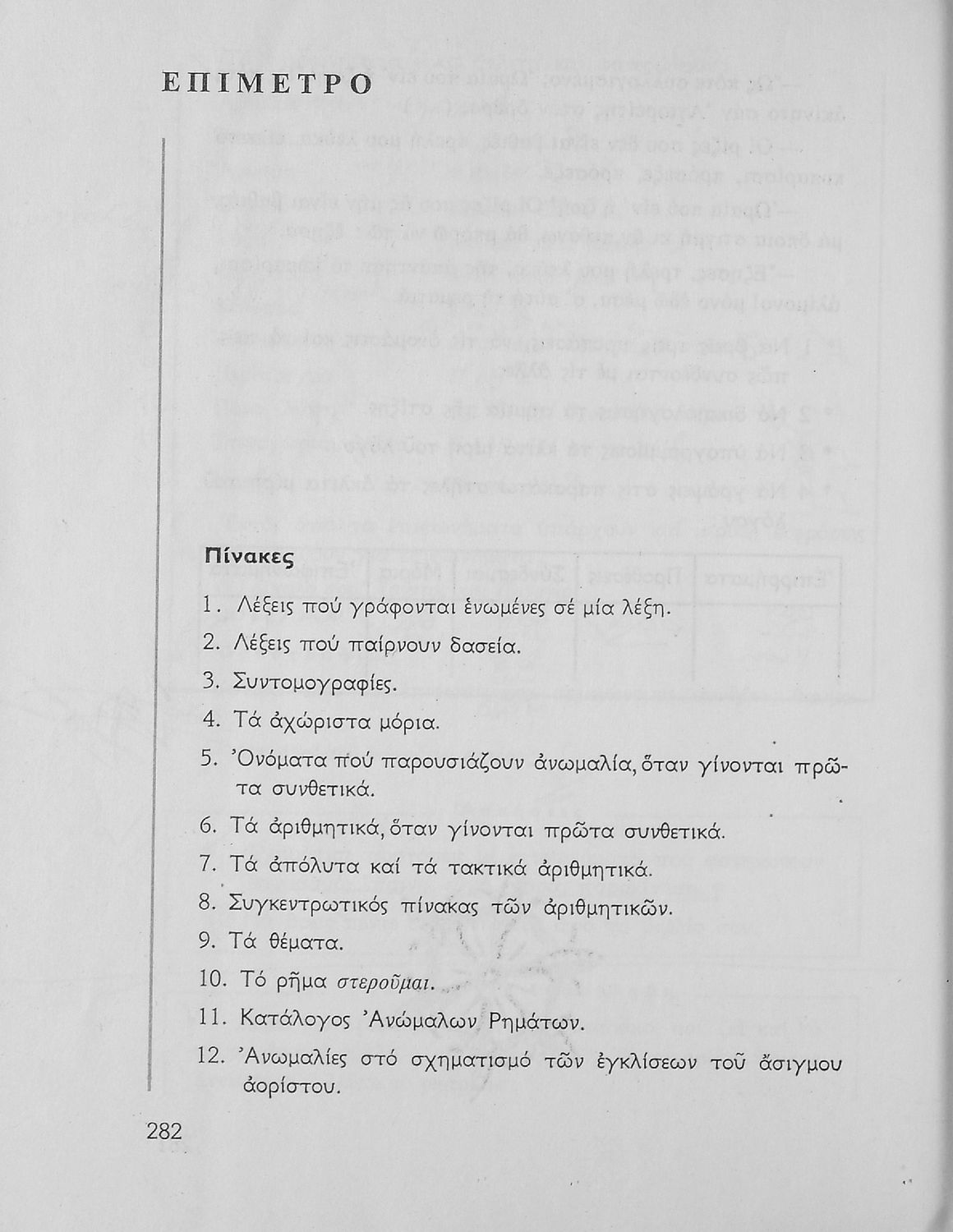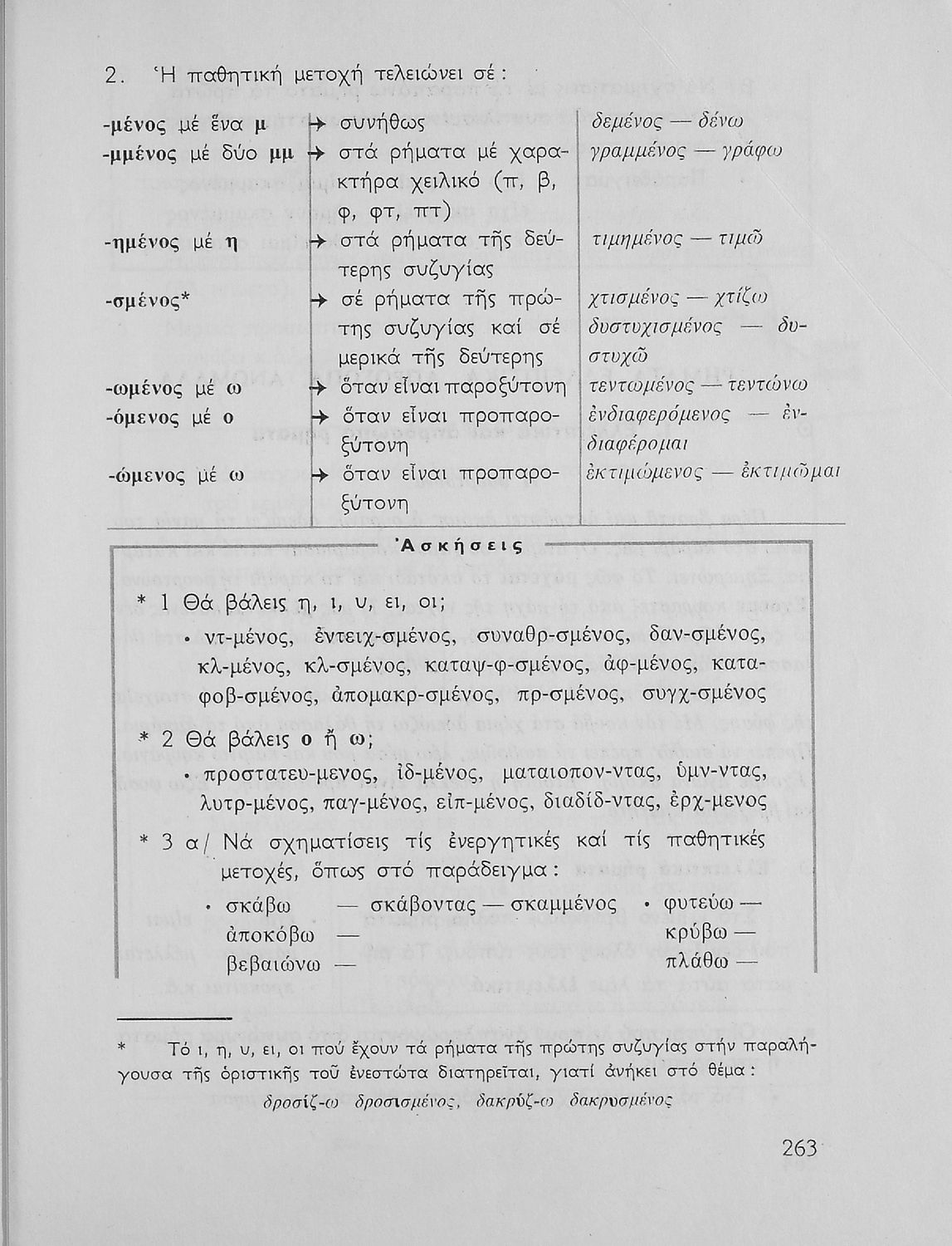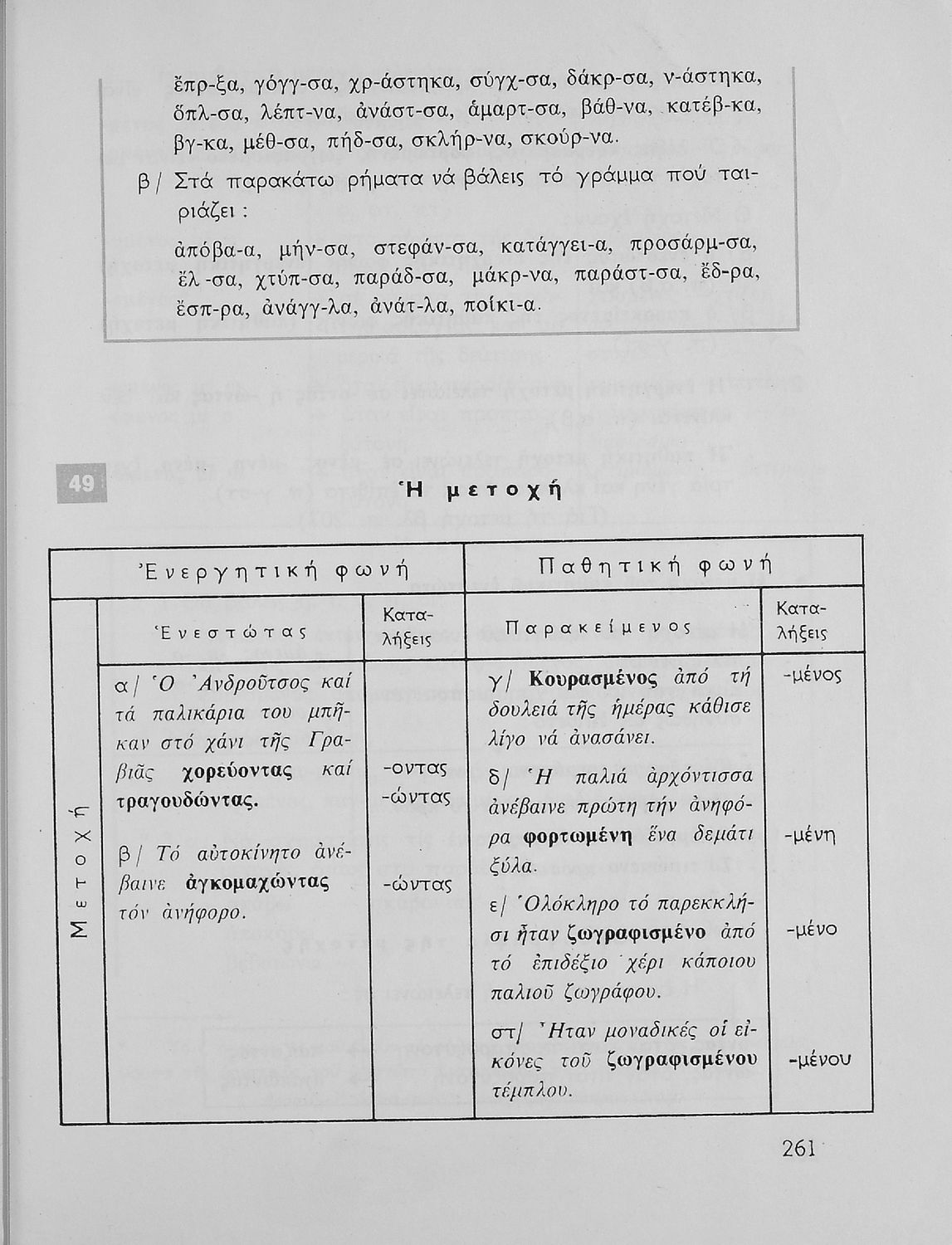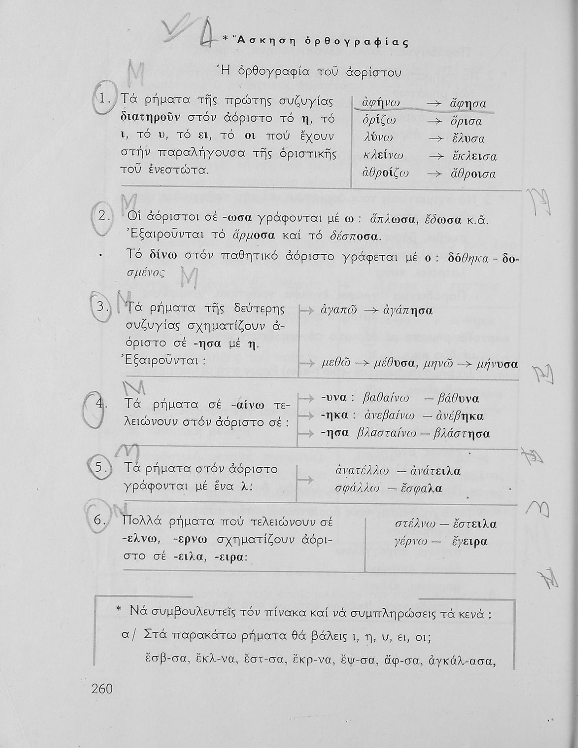 Σχολικό εγχειρίδιο της Ε΄ και ΣΤ΄ τάξης Δημοτικού για την γραμματική της ελληνικής γλώσσας με κανόνες και παραδείγματα. Στο επίμετρο υπάρχουν πίνακες με ανώμαλους σχηματισμούς ρημάτων.