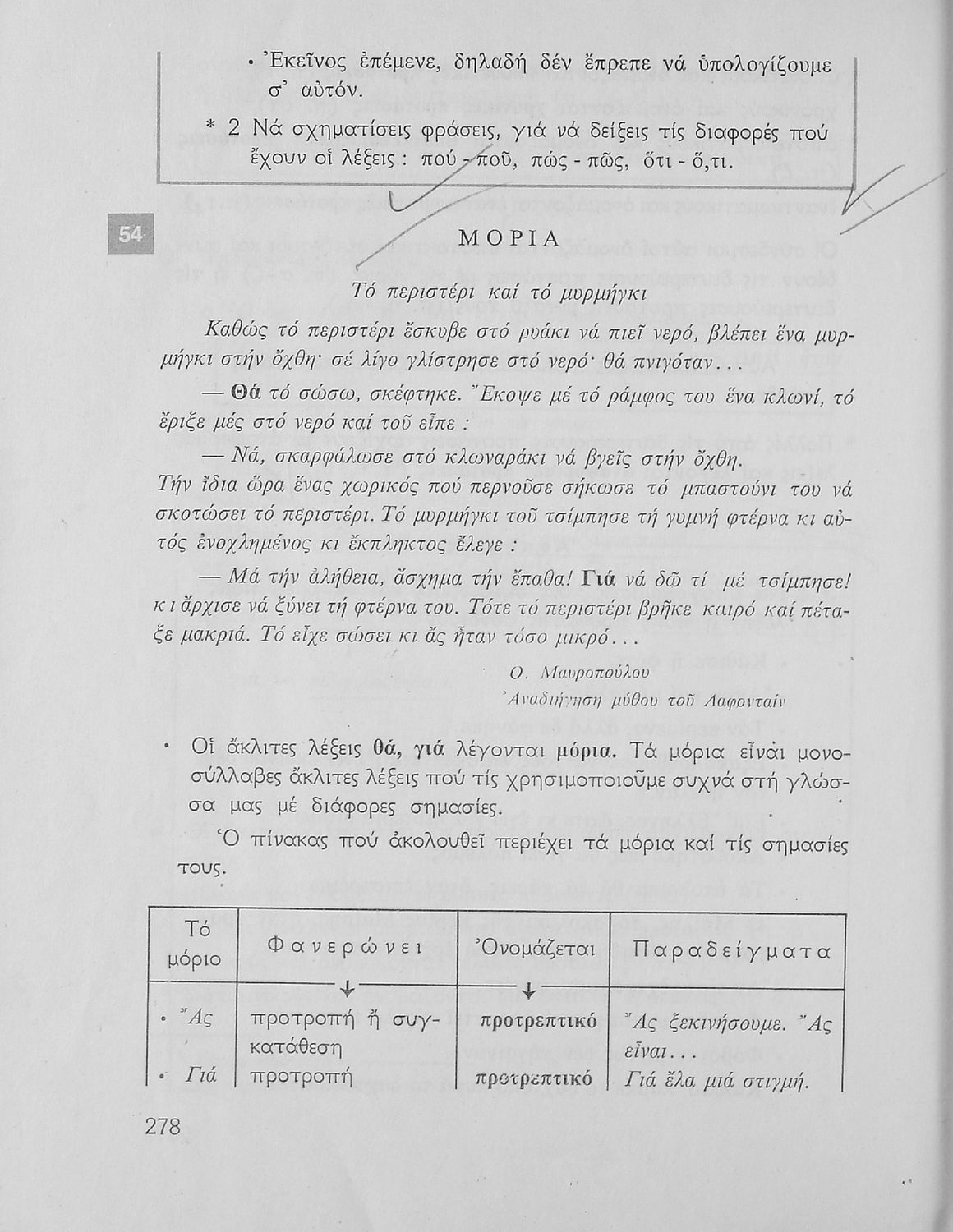 Σχολικό εγχειρίδιο για την Ε΄ και ΣΤ΄ τάξη Δημοτικού με γραμματικούς κανόνες και παραδείγματα για τα κλιτά και άκλιτα μέρη του λόγου.