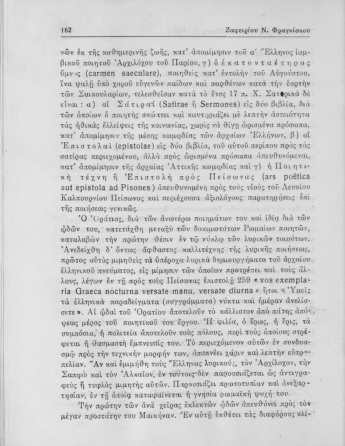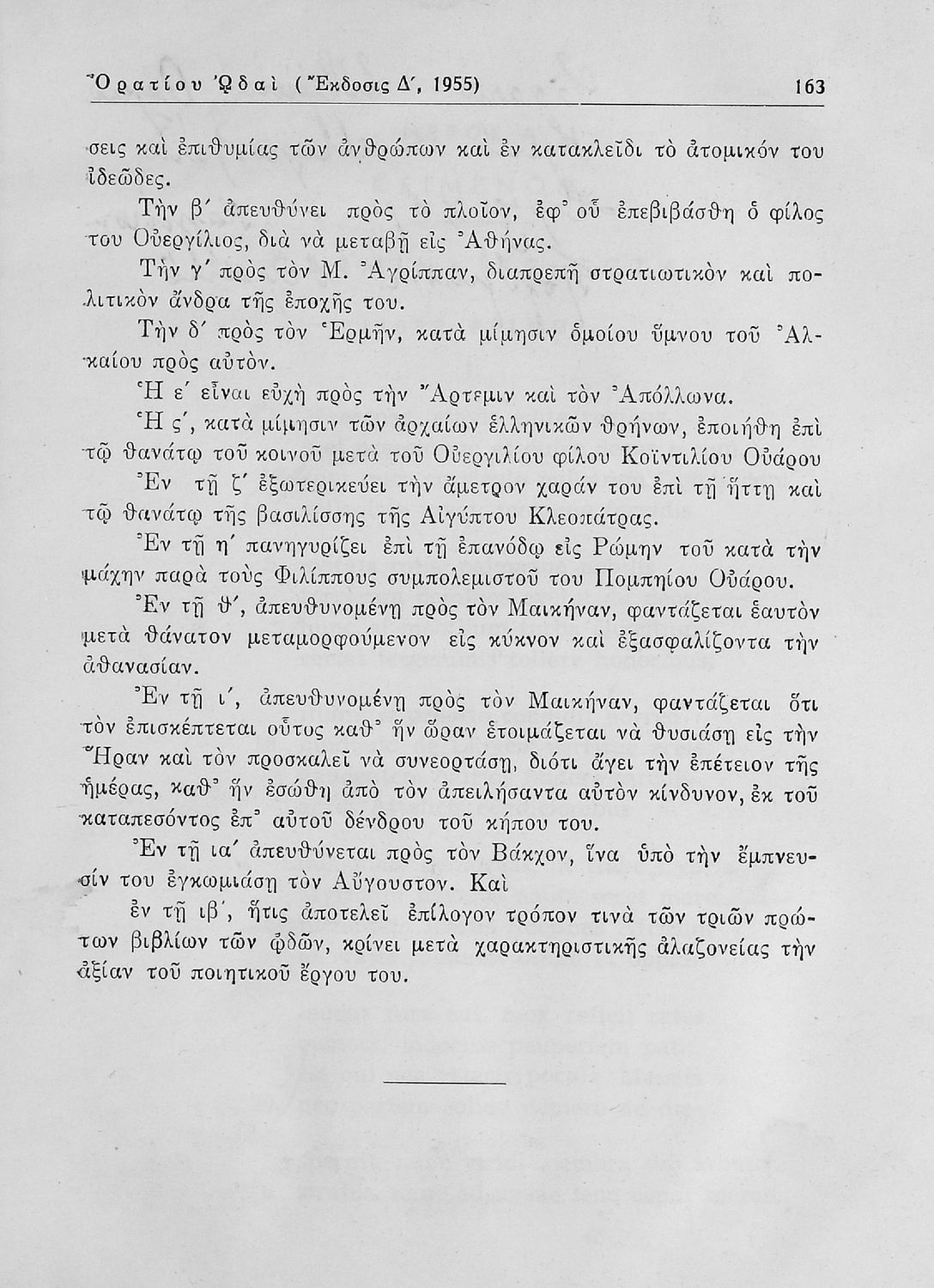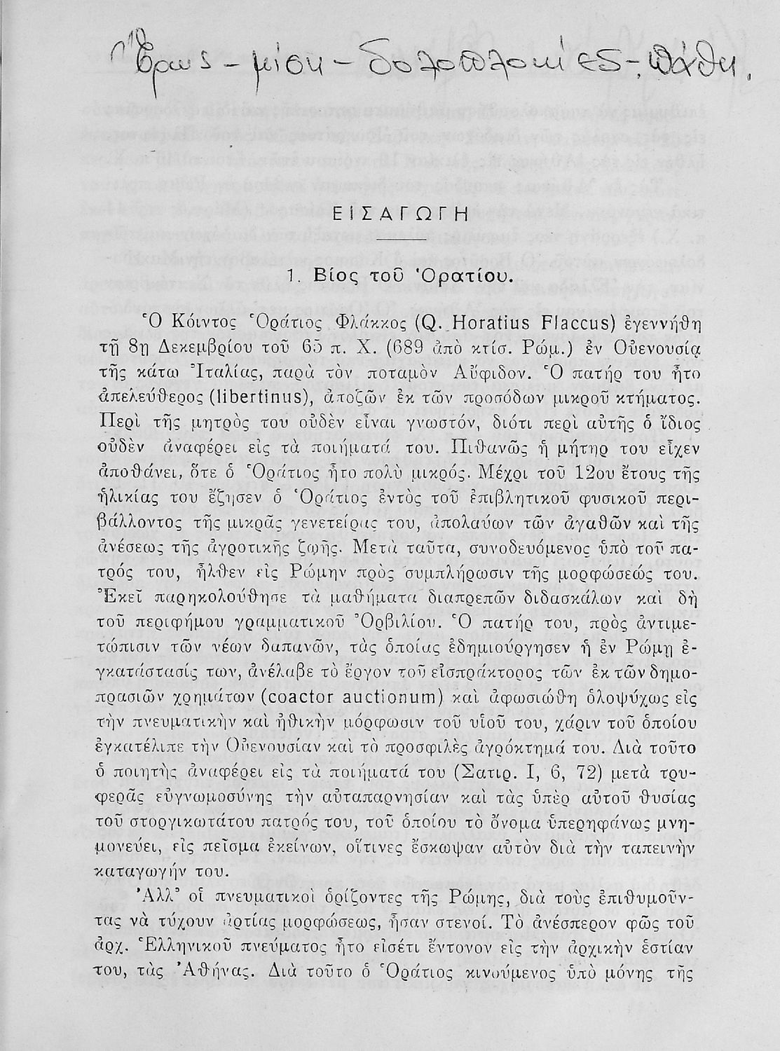 Πόπλιος Βιργίλιος Μάρων (P. Vergilius Maro), Μάρκος Τύλλιος Κικέρωνας (Marcus Tullius Ciceco), Κουίντος Οράτιος Φλάκκος (Q. Horati Flacci), Φωκίωνας Β. Βουσβούνης, Ερρίκος Σκάσσης, Ζαφείριος Ν. Φραγκίσκος (σχόλια)