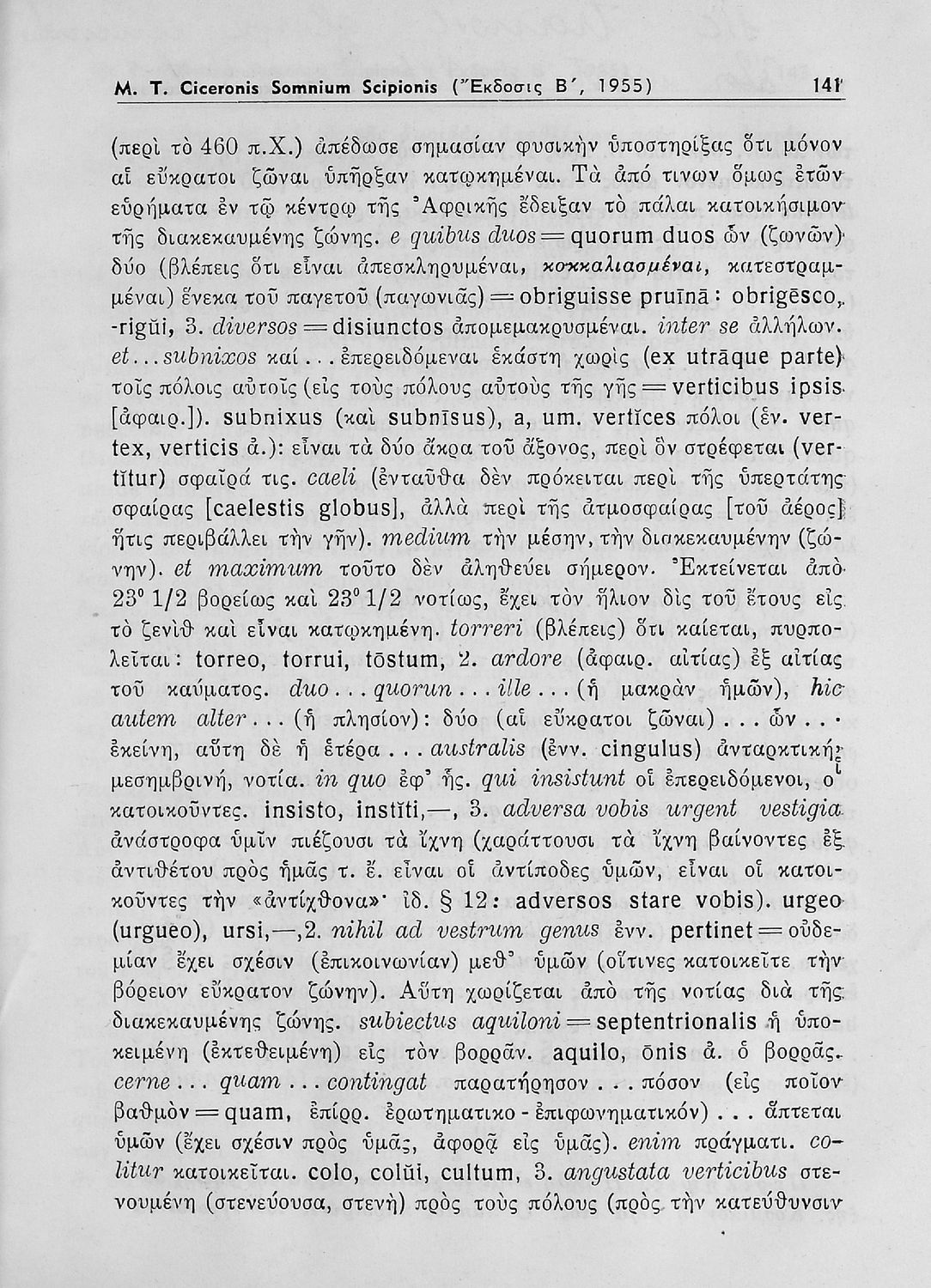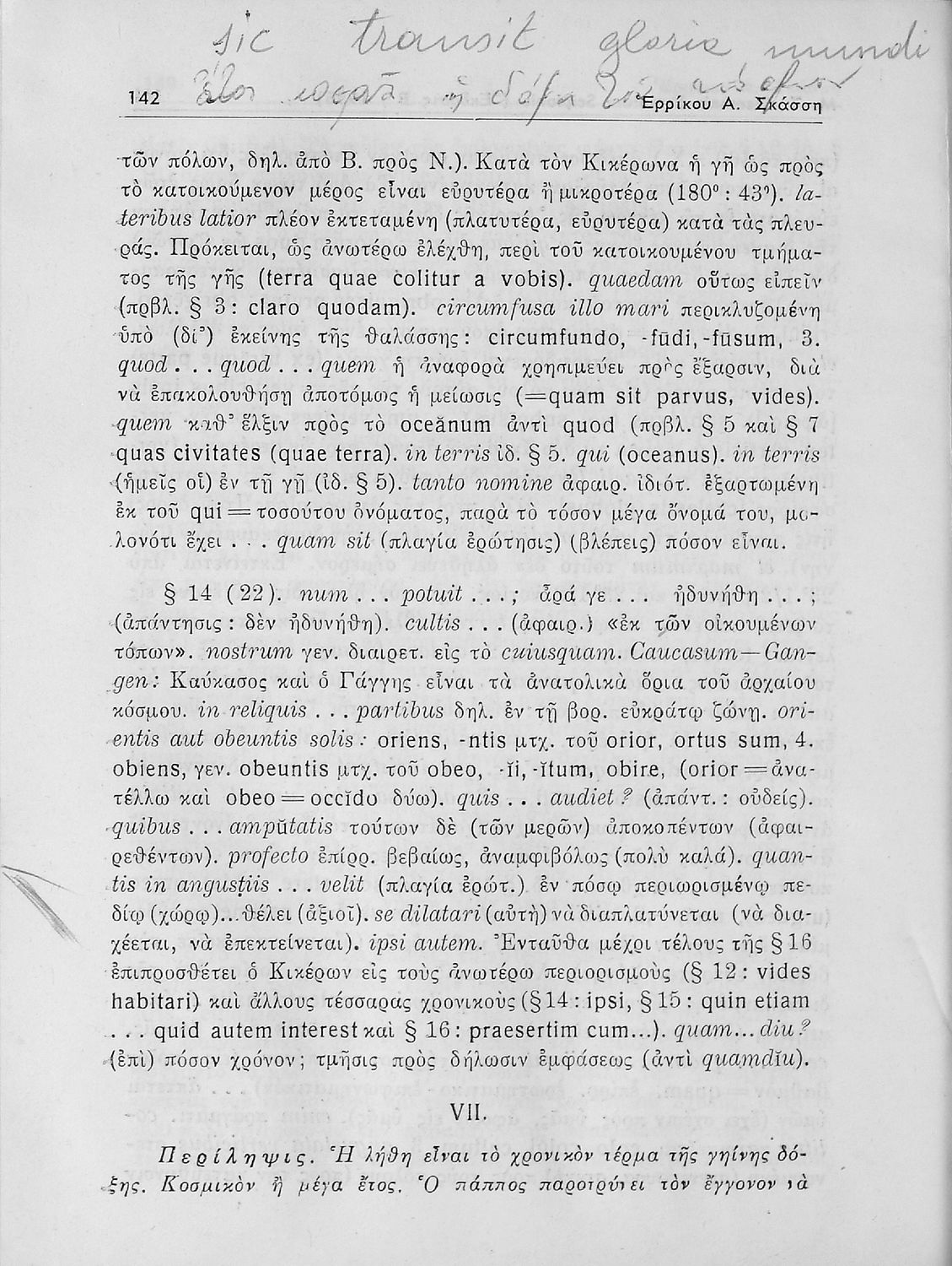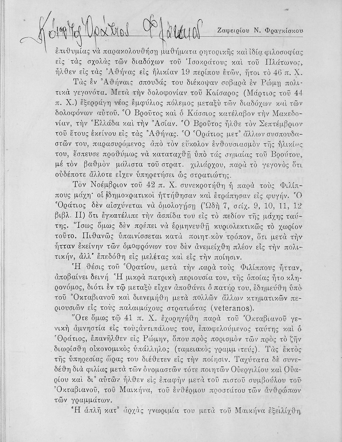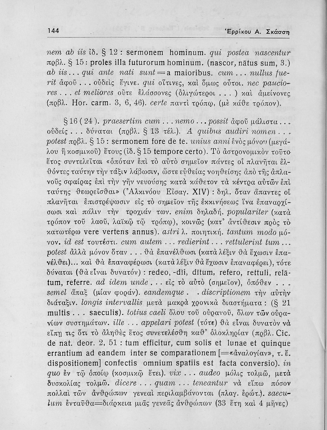 Πόπλιος Βιργίλιος Μάρων (P. Vergilius Maro), Μάρκος Τύλλιος Κικέρωνας (Marcus Tullius Ciceco), Κουίντος Οράτιος Φλάκκος (Q. Horati Flacci), Φωκίωνας Β. Βουσβούνης, Ερρίκος Σκάσσης, Ζαφείριος Ν. Φραγκίσκος (σχόλια)