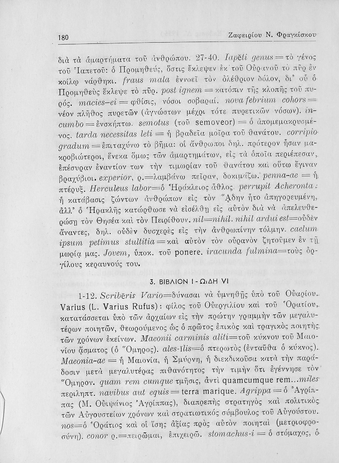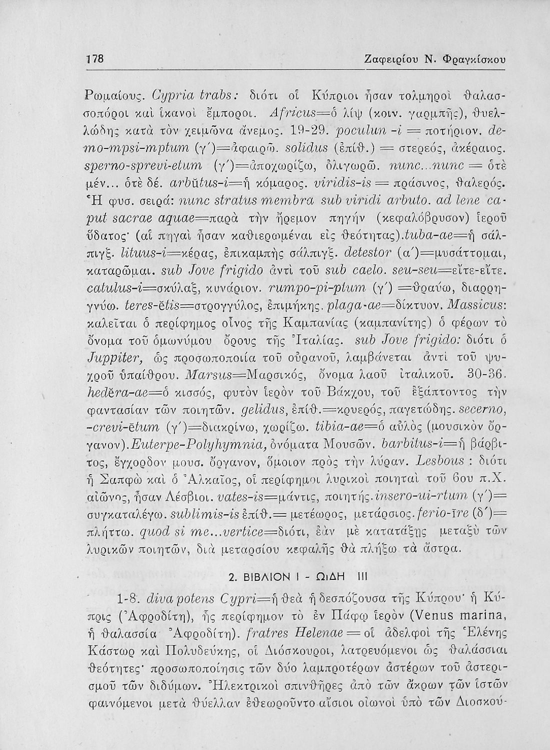 Πόπλιος Βιργίλιος Μάρων (P. Vergilius Maro), Μάρκος Τύλλιος Κικέρωνας (Marcus Tullius Ciceco), Κουίντος Οράτιος Φλάκκος (Q. Horati Flacci), Φωκίωνας Β. Βουσβούνης, Ερρίκος Σκάσσης, Ζαφείριος Ν. Φραγκίσκος (σχόλια)