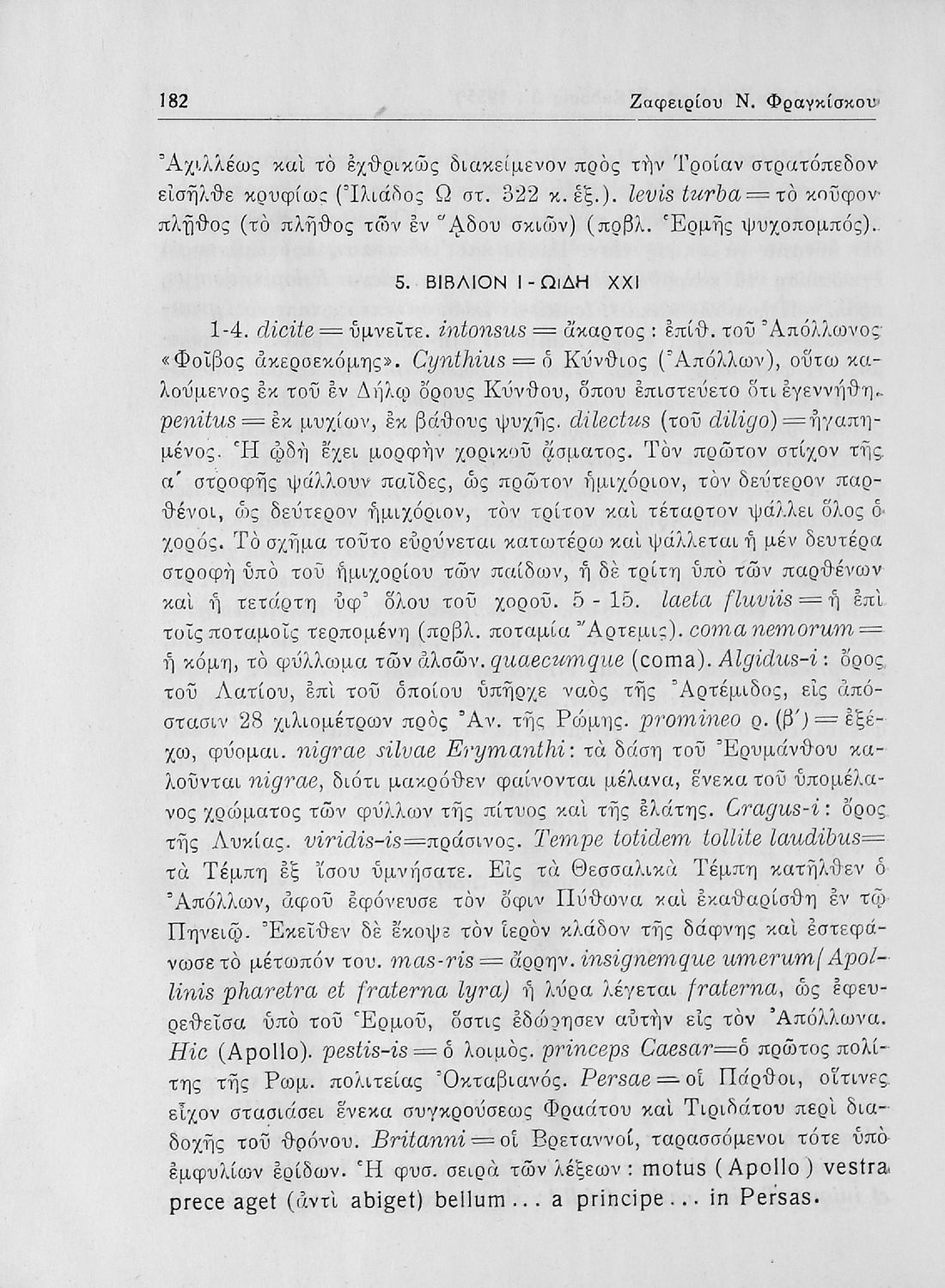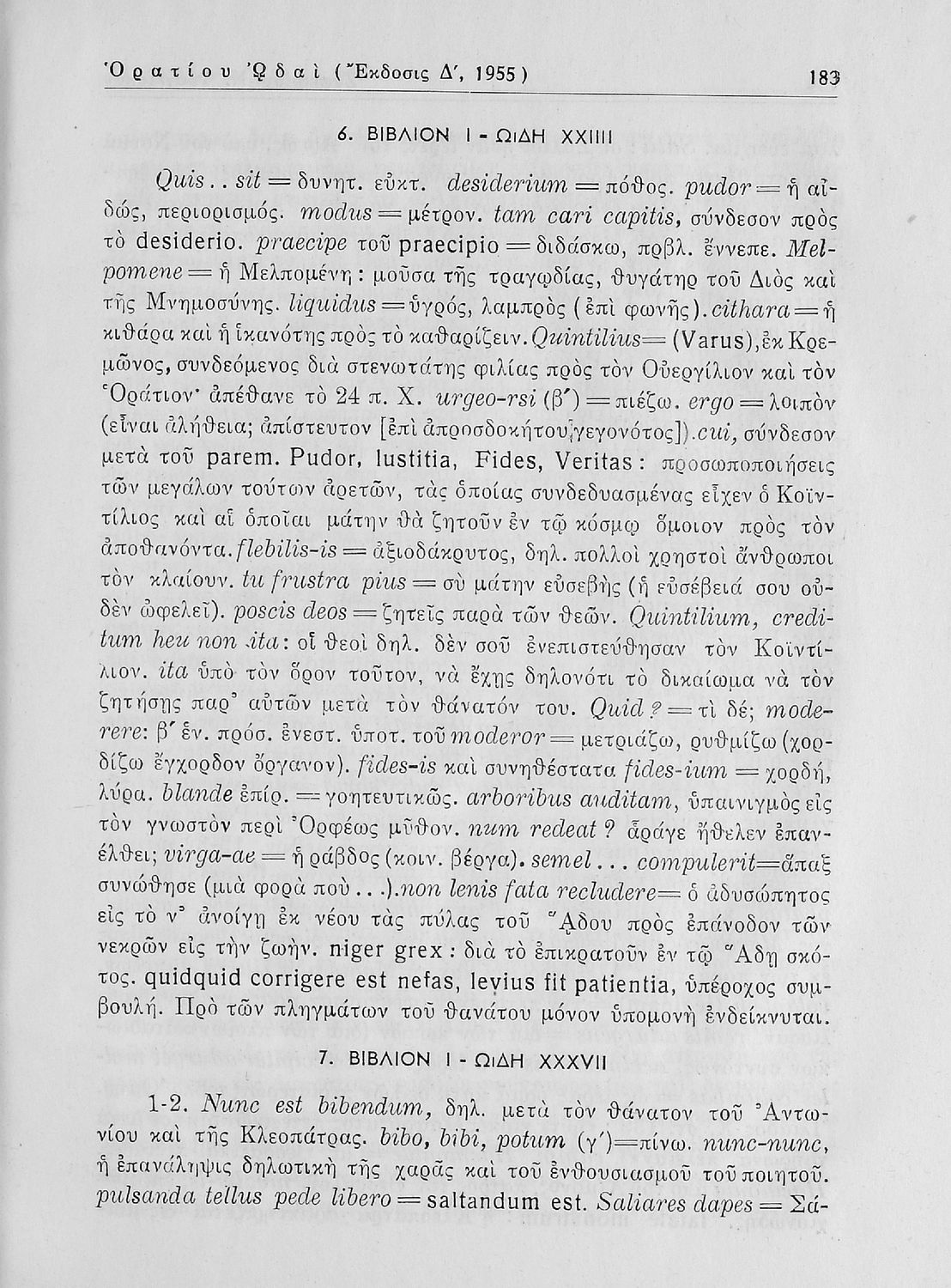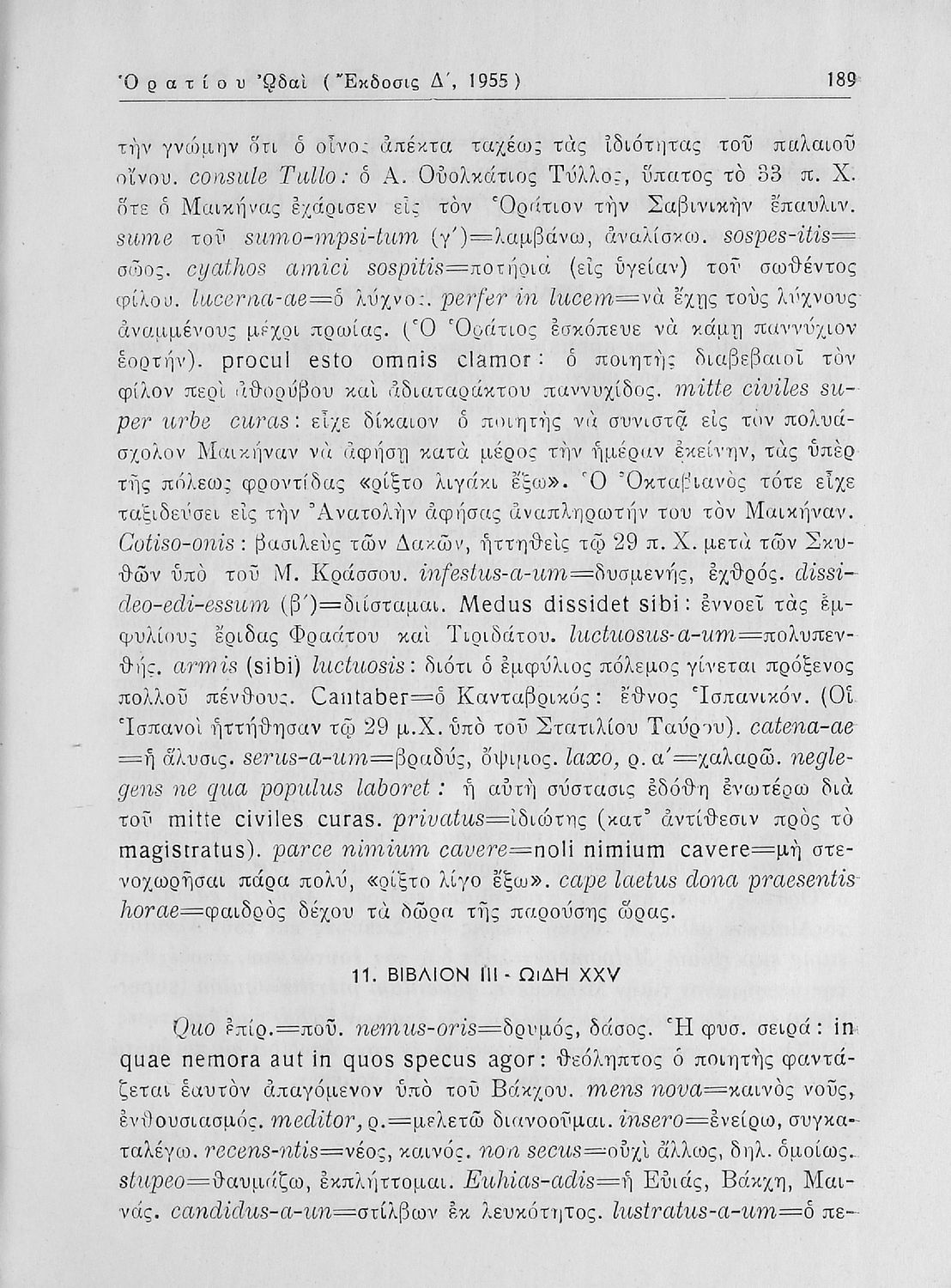 Πόπλιος Βιργίλιος Μάρων (P. Vergilius Maro), Μάρκος Τύλλιος Κικέρωνας (Marcus Tullius Ciceco), Κουίντος Οράτιος Φλάκκος (Q. Horati Flacci), Φωκίωνας Β. Βουσβούνης, Ερρίκος Σκάσσης, Ζαφείριος Ν. Φραγκίσκος (σχόλια)