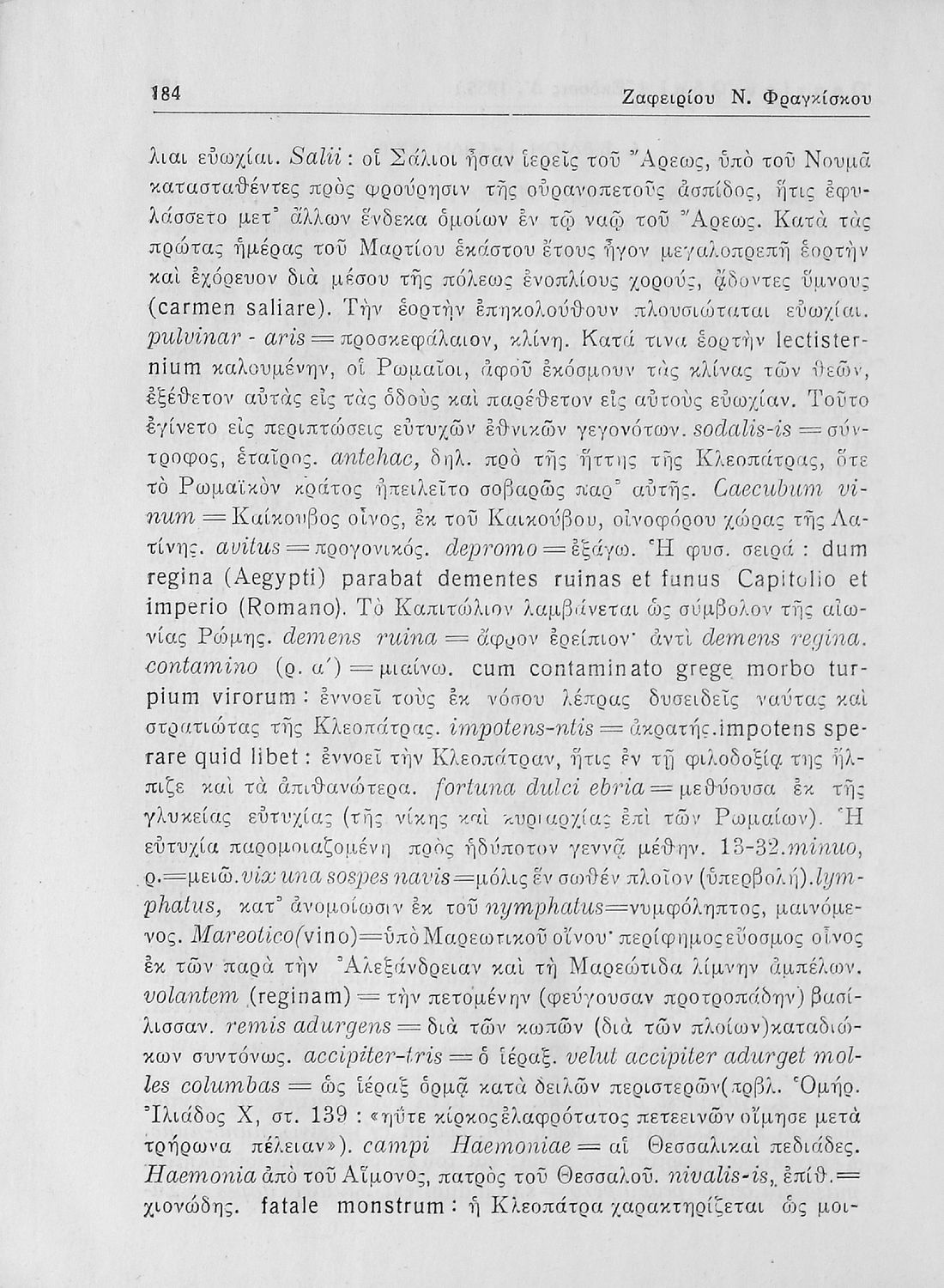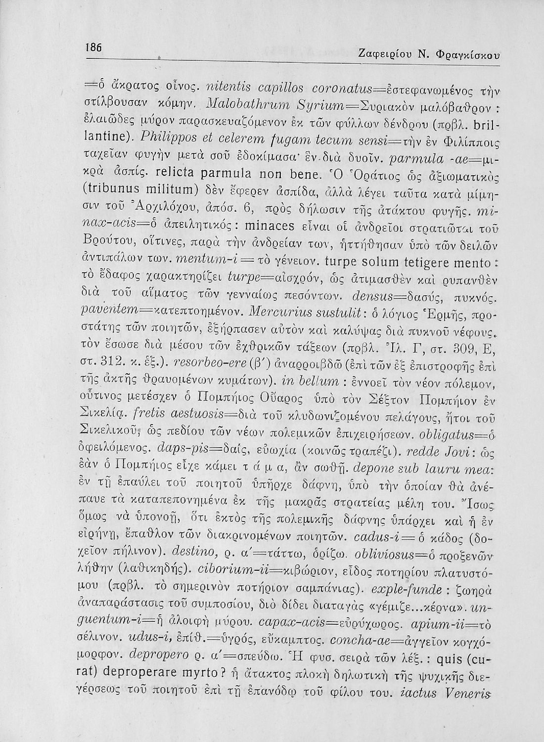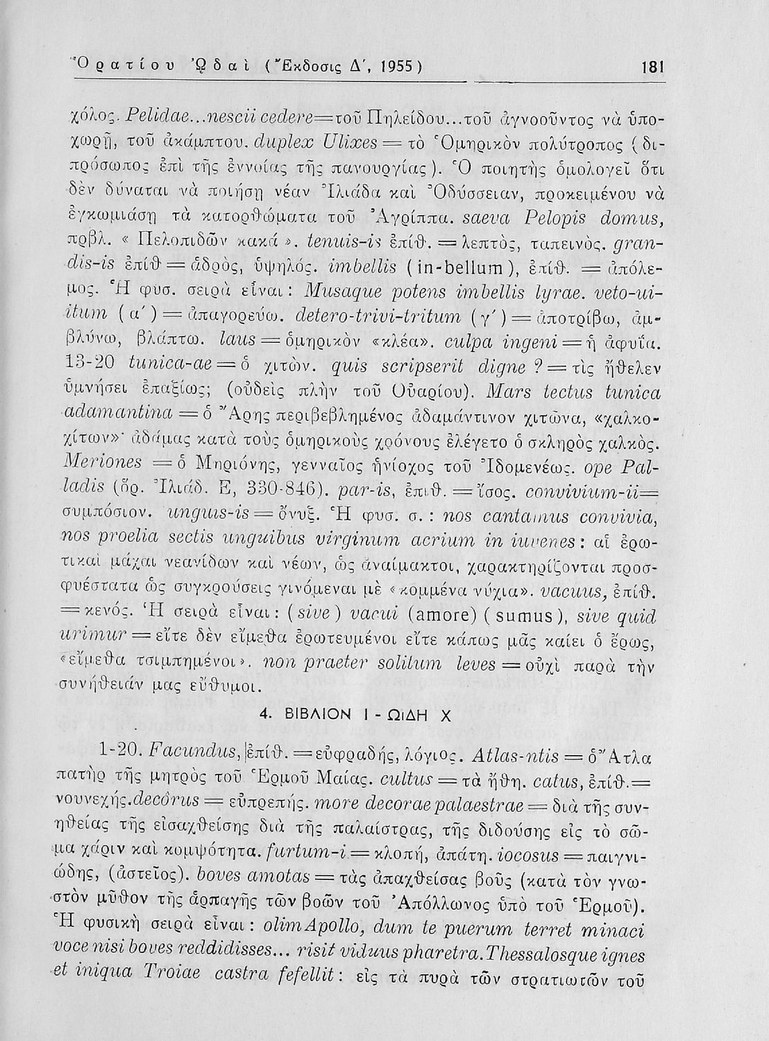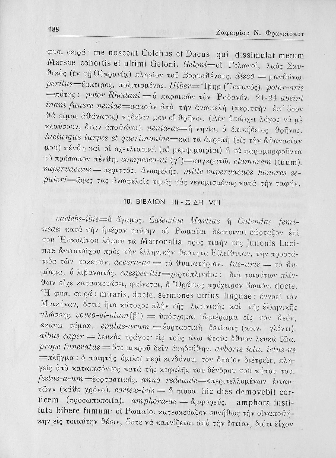 Πόπλιος Βιργίλιος Μάρων (P. Vergilius Maro), Μάρκος Τύλλιος Κικέρωνας (Marcus Tullius Ciceco), Κουίντος Οράτιος Φλάκκος (Q. Horati Flacci), Φωκίωνας Β. Βουσβούνης, Ερρίκος Σκάσσης, Ζαφείριος Ν. Φραγκίσκος (σχόλια)