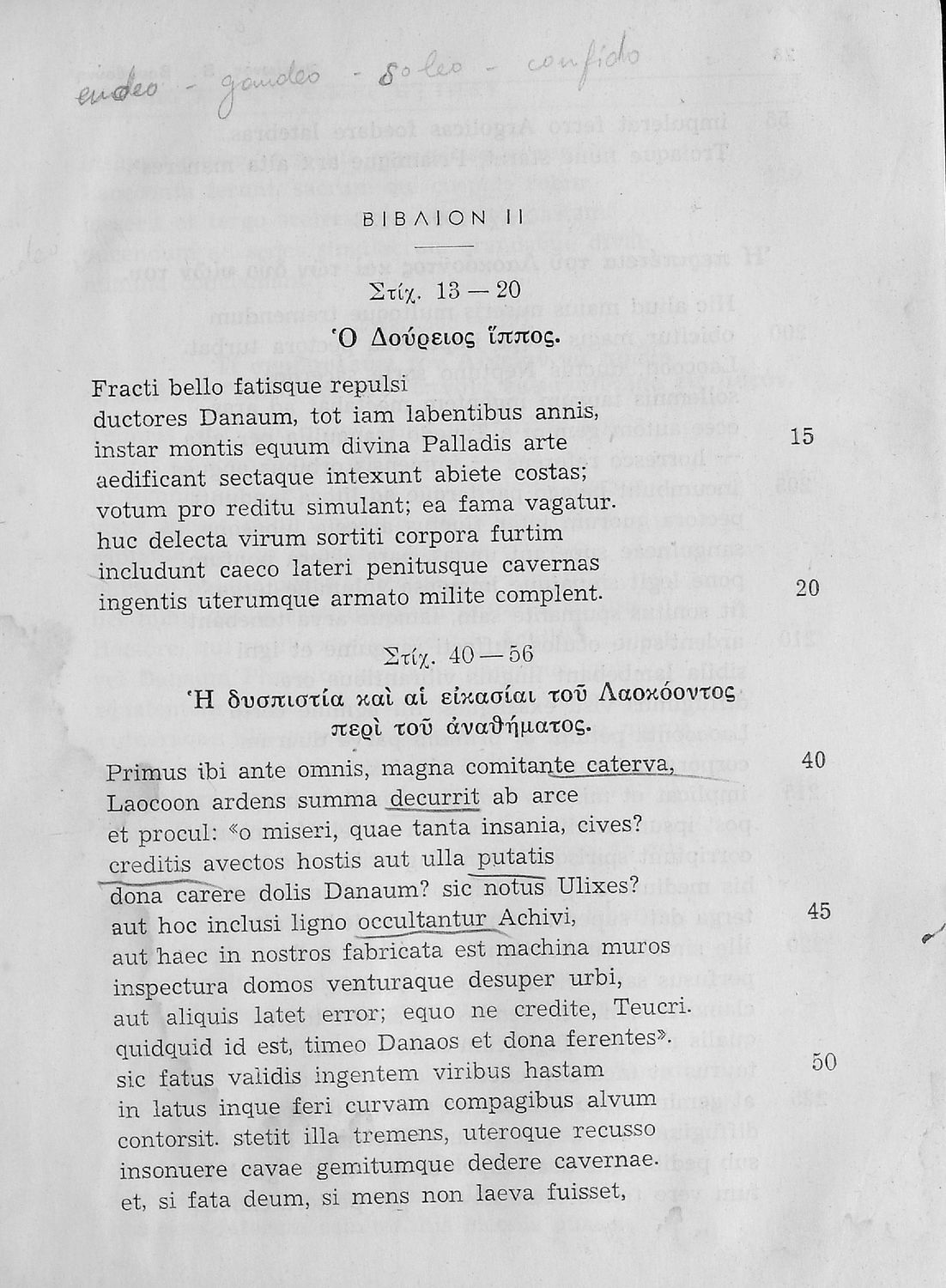 Πόπλιος Βιργίλιος Μάρων (P. Vergilius Maro), Μάρκος Τύλλιος Κικέρωνας (Marcus Tullius Ciceco), Κουίντος Οράτιος Φλάκκος (Q. Horati Flacci), Φωκίωνας Β. Βουσβούνης, Ερρίκος Σκάσσης, Ζαφείριος Ν. Φραγκίσκος (σχόλια)