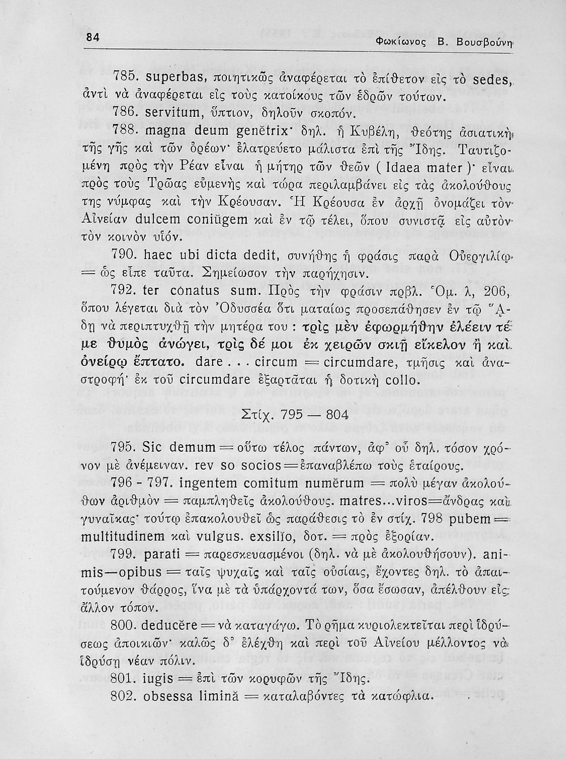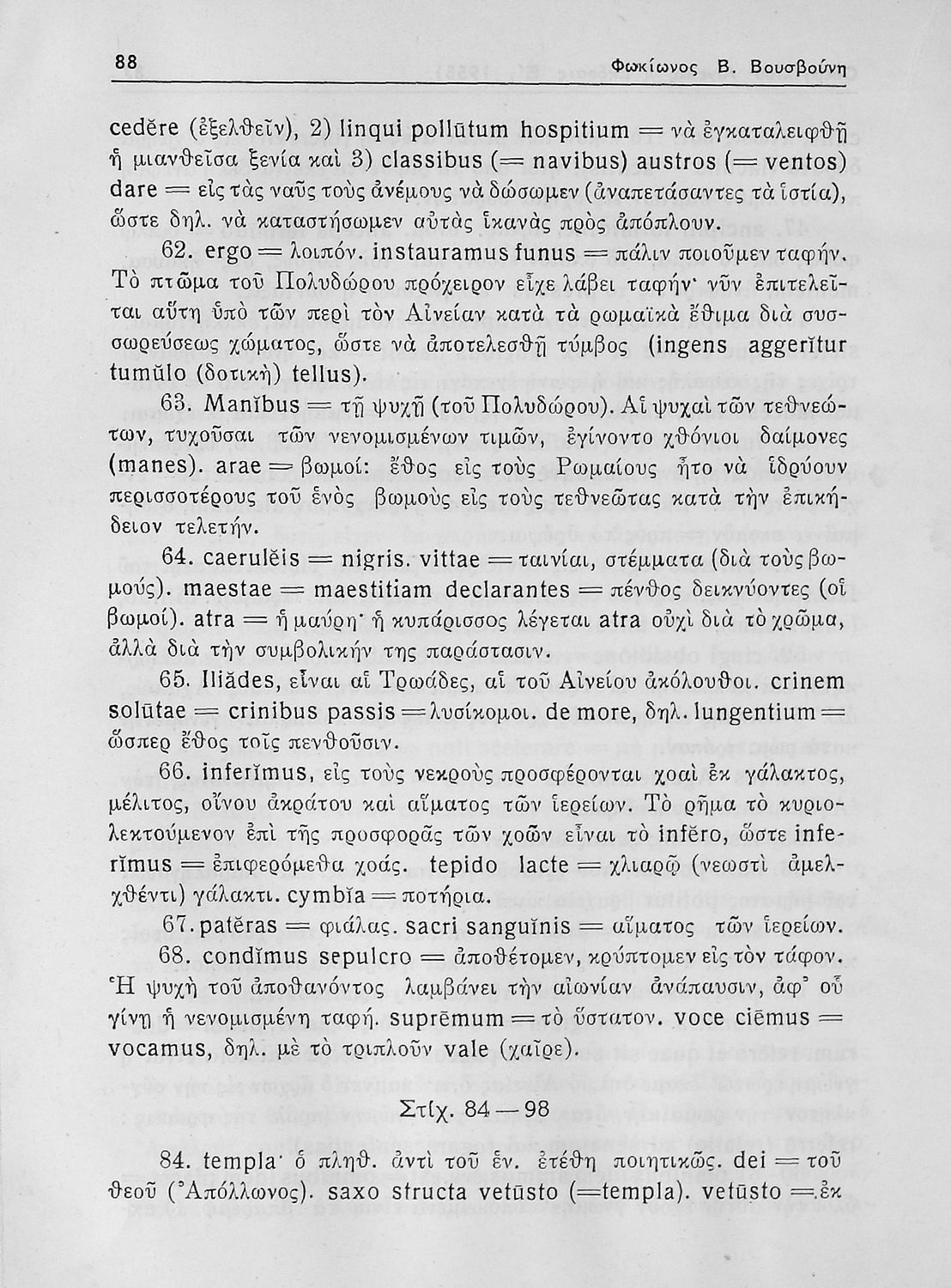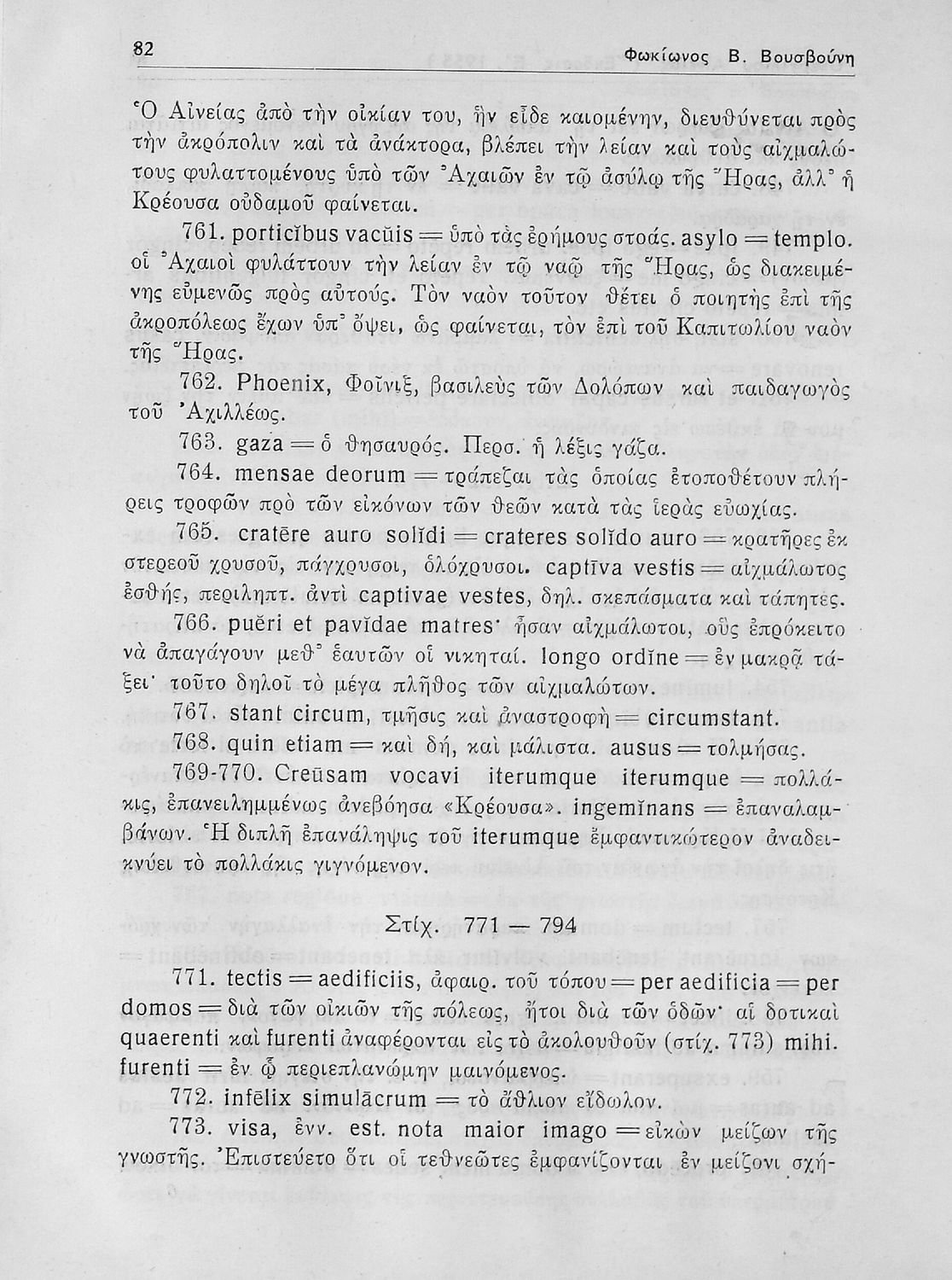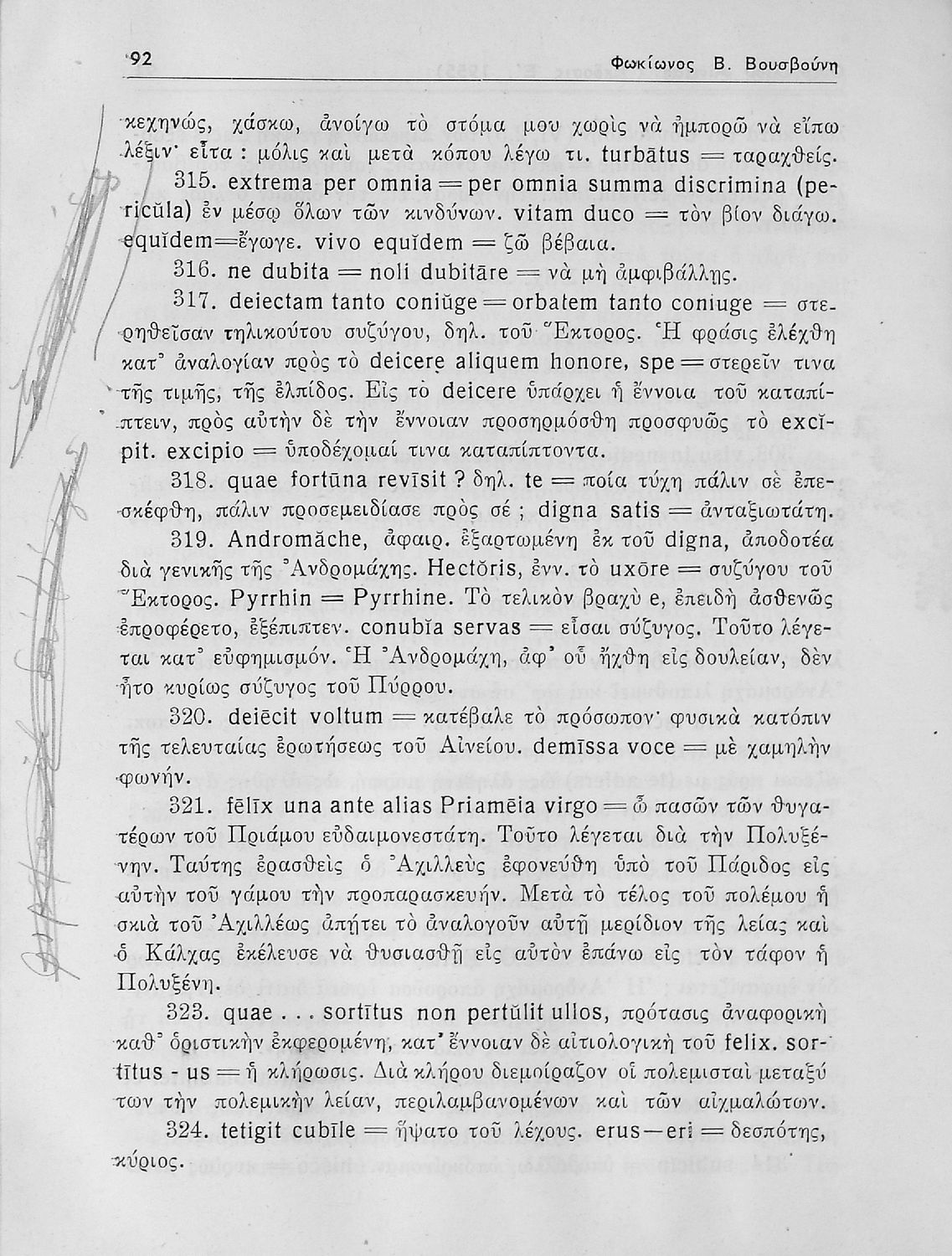 Πόπλιος Βιργίλιος Μάρων (P. Vergilius Maro), Μάρκος Τύλλιος Κικέρωνας (Marcus Tullius Ciceco), Κουίντος Οράτιος Φλάκκος (Q. Horati Flacci), Φωκίωνας Β. Βουσβούνης, Ερρίκος Σκάσσης, Ζαφείριος Ν. Φραγκίσκος (σχόλια)