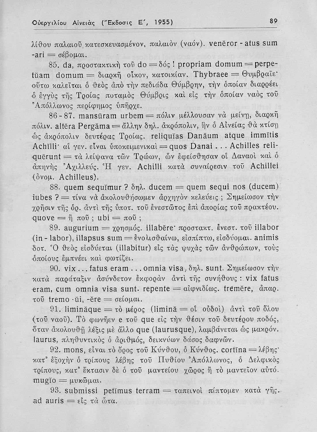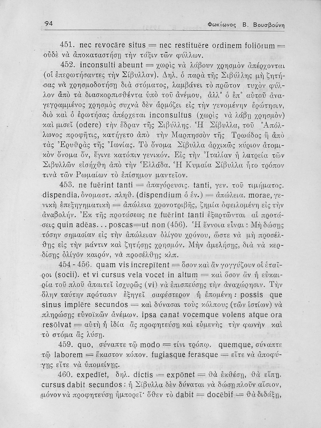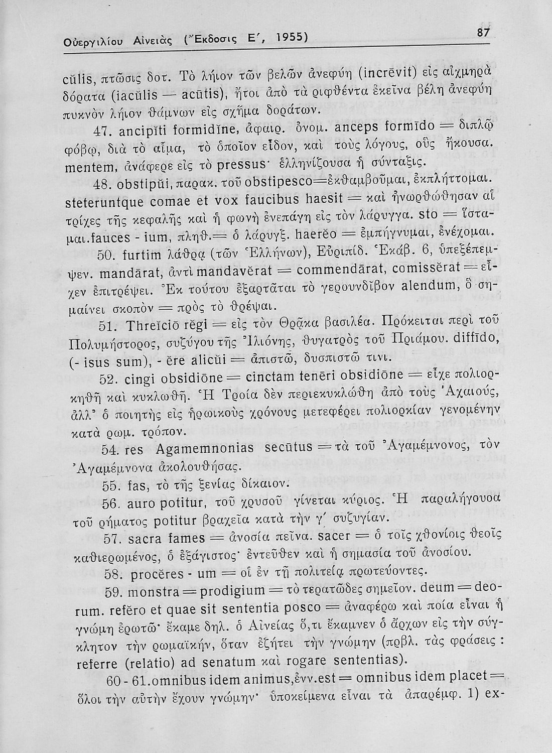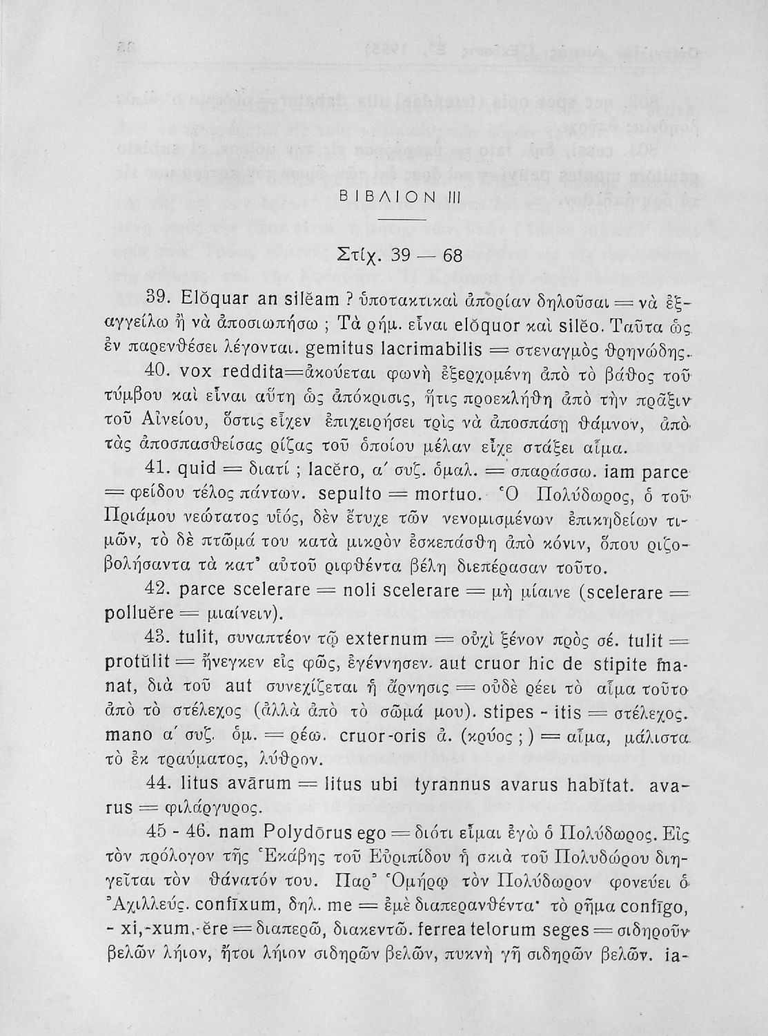 Πόπλιος Βιργίλιος Μάρων (P. Vergilius Maro), Μάρκος Τύλλιος Κικέρωνας (Marcus Tullius Ciceco), Κουίντος Οράτιος Φλάκκος (Q. Horati Flacci), Φωκίωνας Β. Βουσβούνης, Ερρίκος Σκάσσης, Ζαφείριος Ν. Φραγκίσκος (σχόλια)