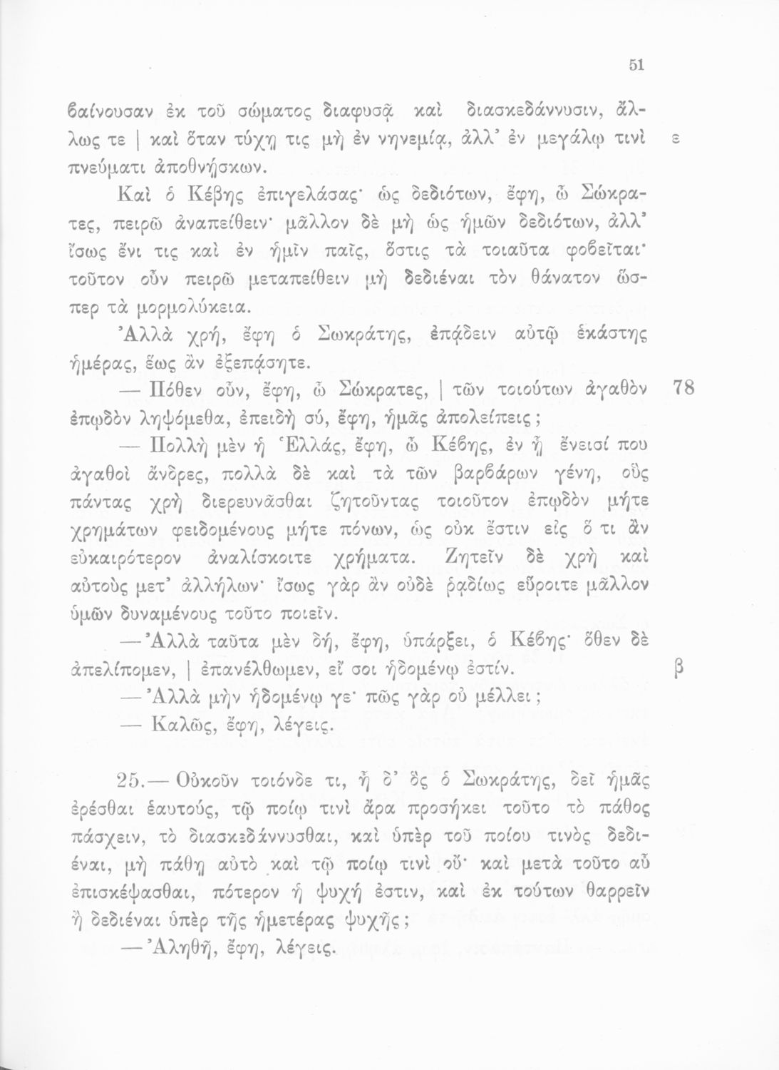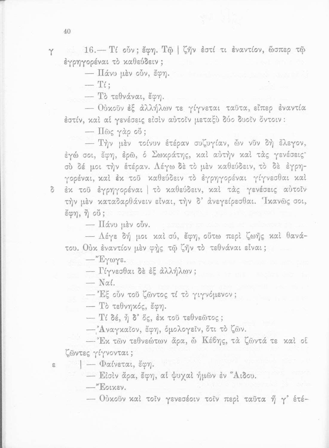 Σχολικό εγχειρίδιο Αρχαίων Ελληνικών. Το βιβλίο περιλαμβάνει εισαγωγή σχετικά με τη ζωή και το έργο του Πλάτωνα και αναφέρεται σε φιλοσόφους της εποχής. Παραθέτεται το κείμενο "Φαίδων : Η περί ψυχής ηθικός" το