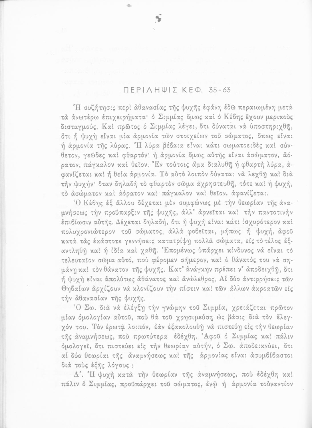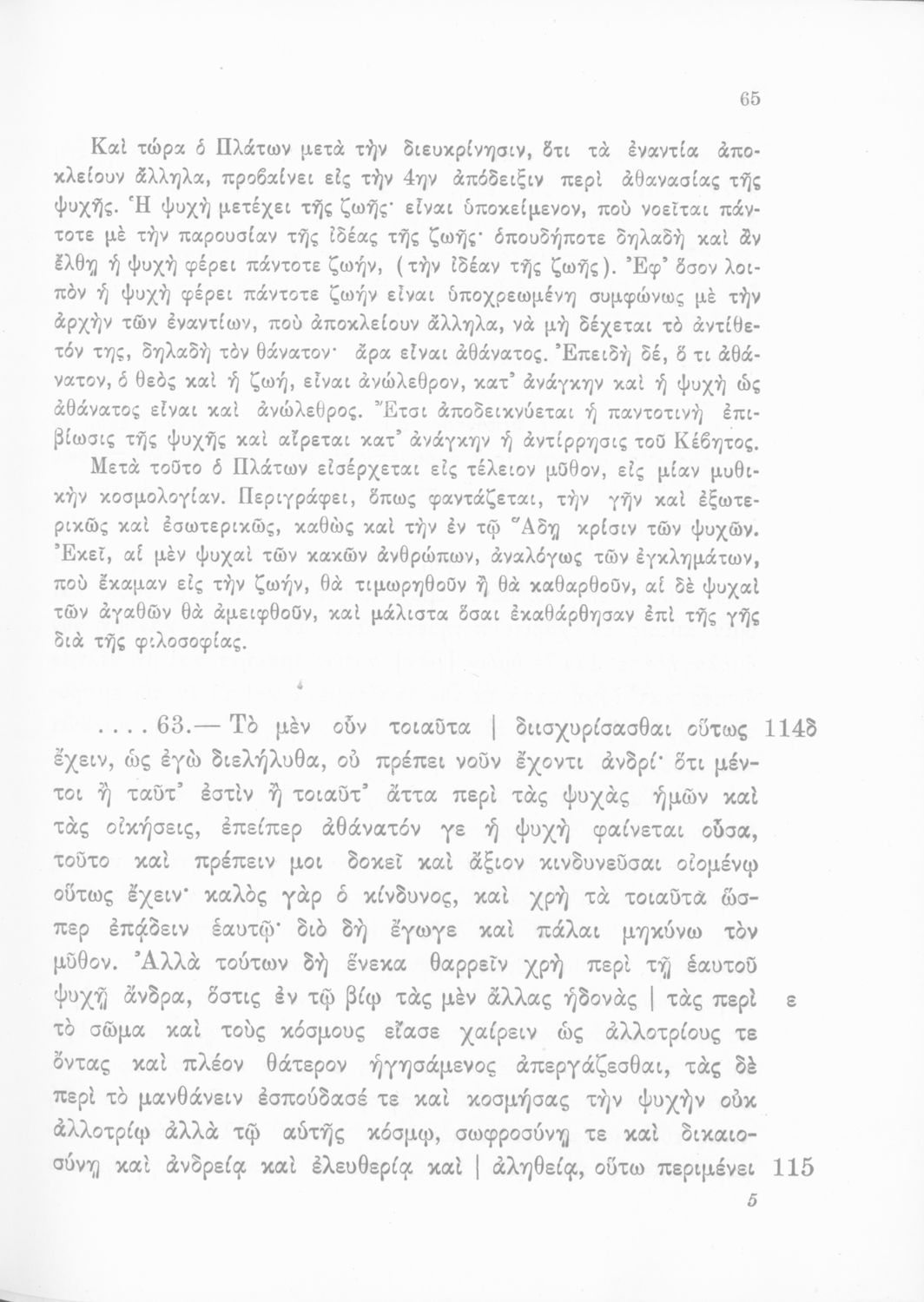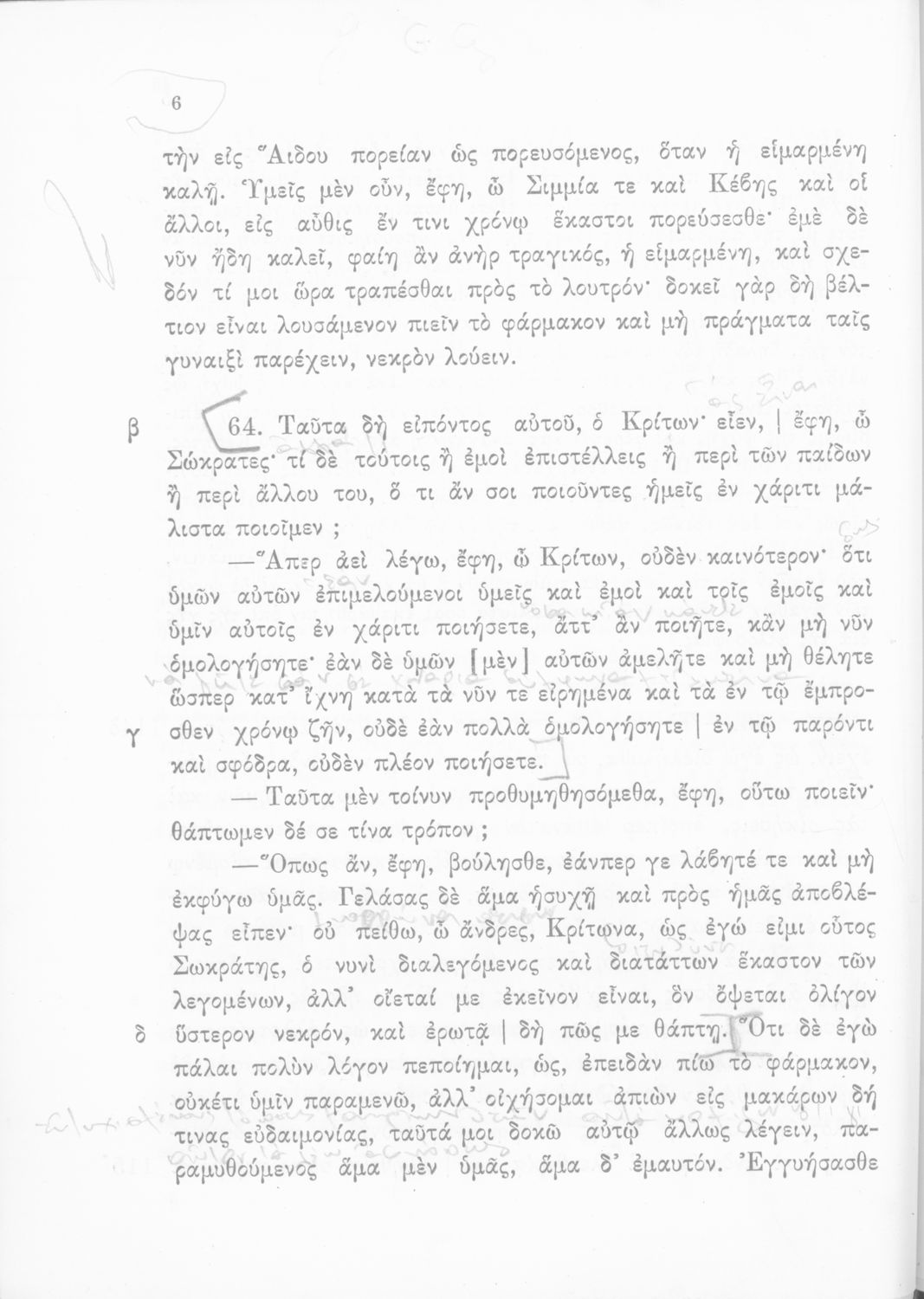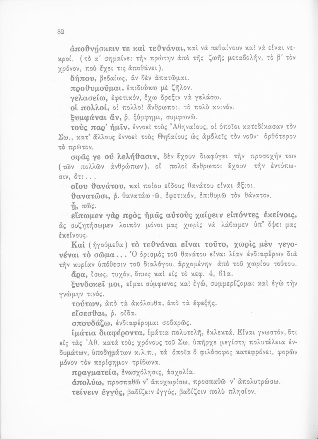 Σχολικό εγχειρίδιο Αρχαίων Ελληνικών ΣΤ΄ Γυμνασίου που περιέχει αποσπάσματα από το έργο του Πλάτωνα Φαίδων, λεξιλογικές παρατηρήσεις, και ερμηνευτικά, πραγματολογικά σχόλια και γραμματικές παρατηρήσεις.