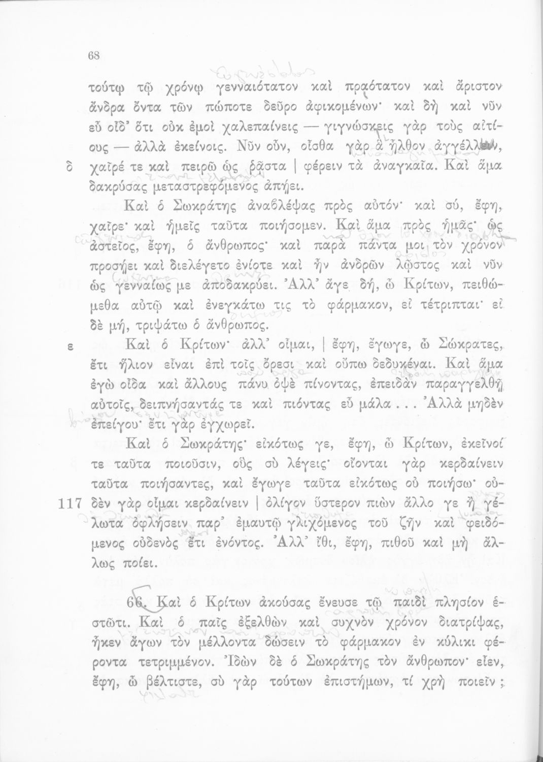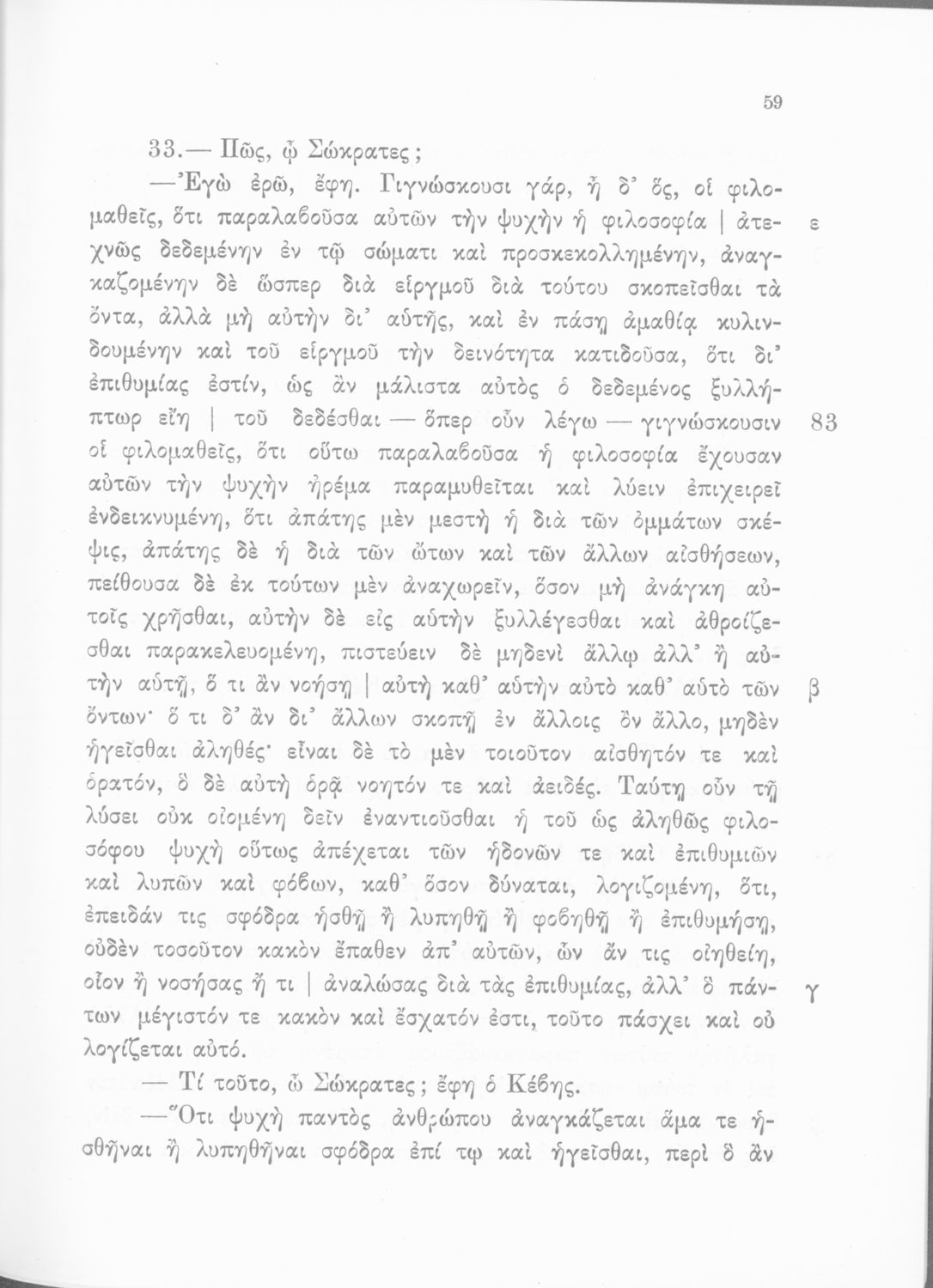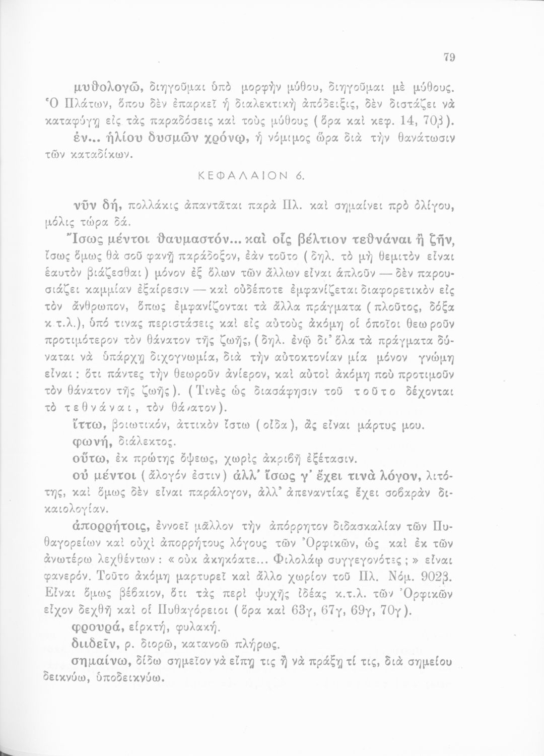 Σχολικό εγχειρίδιο Αρχαίων Ελληνικών ΣΤ΄ Γυμνασίου που περιέχει αποσπάσματα από το έργο του Πλάτωνα Φαίδων, λεξιλογικές παρατηρήσεις, και ερμηνευτικά, πραγματολογικά σχόλια και γραμματικές παρατηρήσεις.