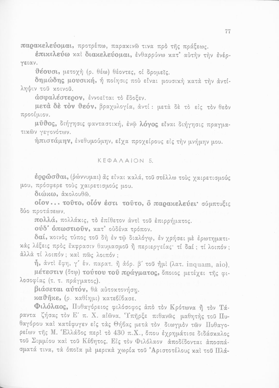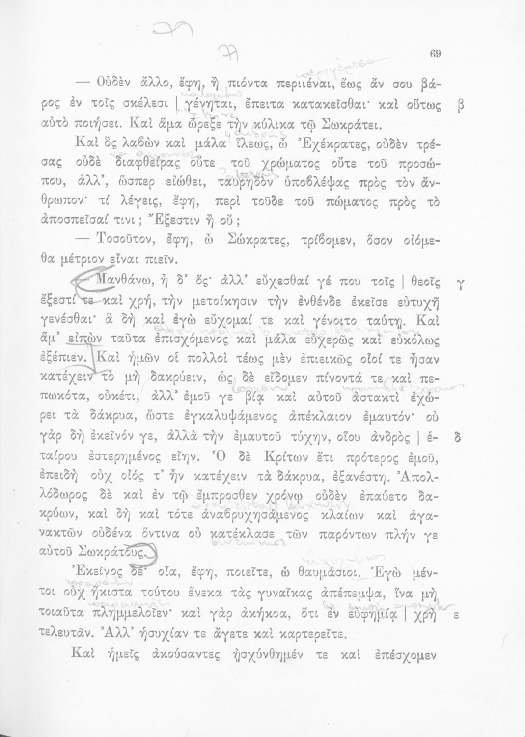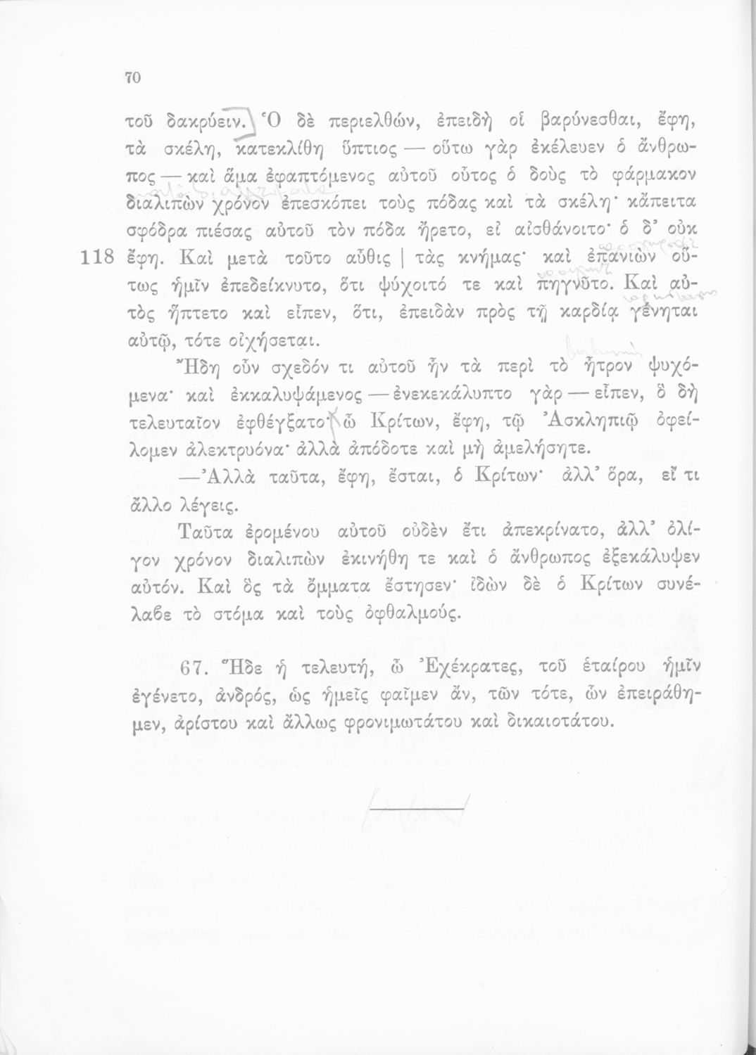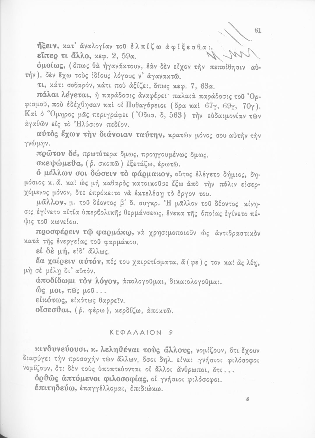 Σχολικό εγχειρίδιο Αρχαίων Ελληνικών ΣΤ΄ Γυμνασίου που περιέχει αποσπάσματα από το έργο του Πλάτωνα Φαίδων, λεξιλογικές παρατηρήσεις, και ερμηνευτικά, πραγματολογικά σχόλια και γραμματικές παρατηρήσεις.