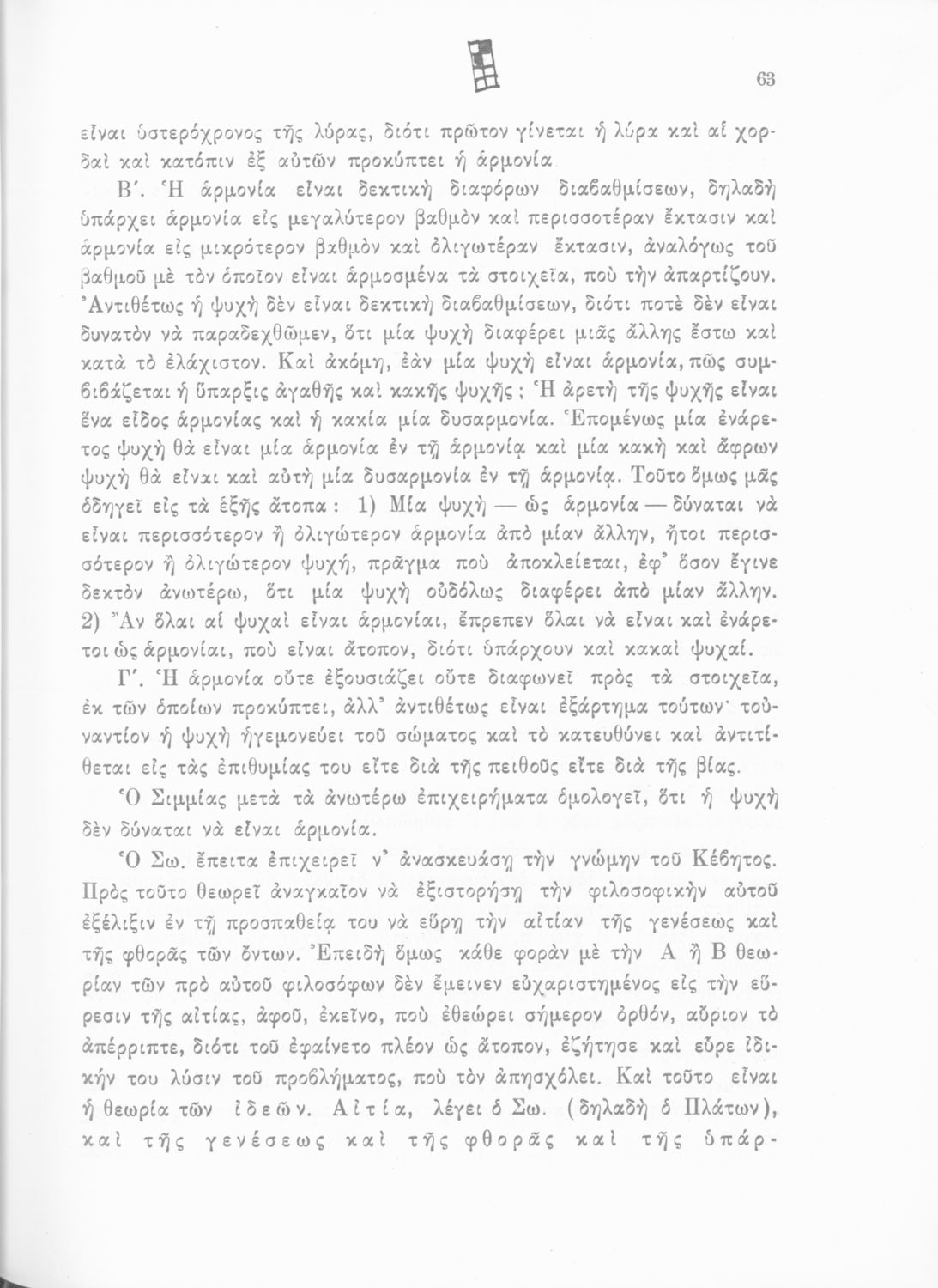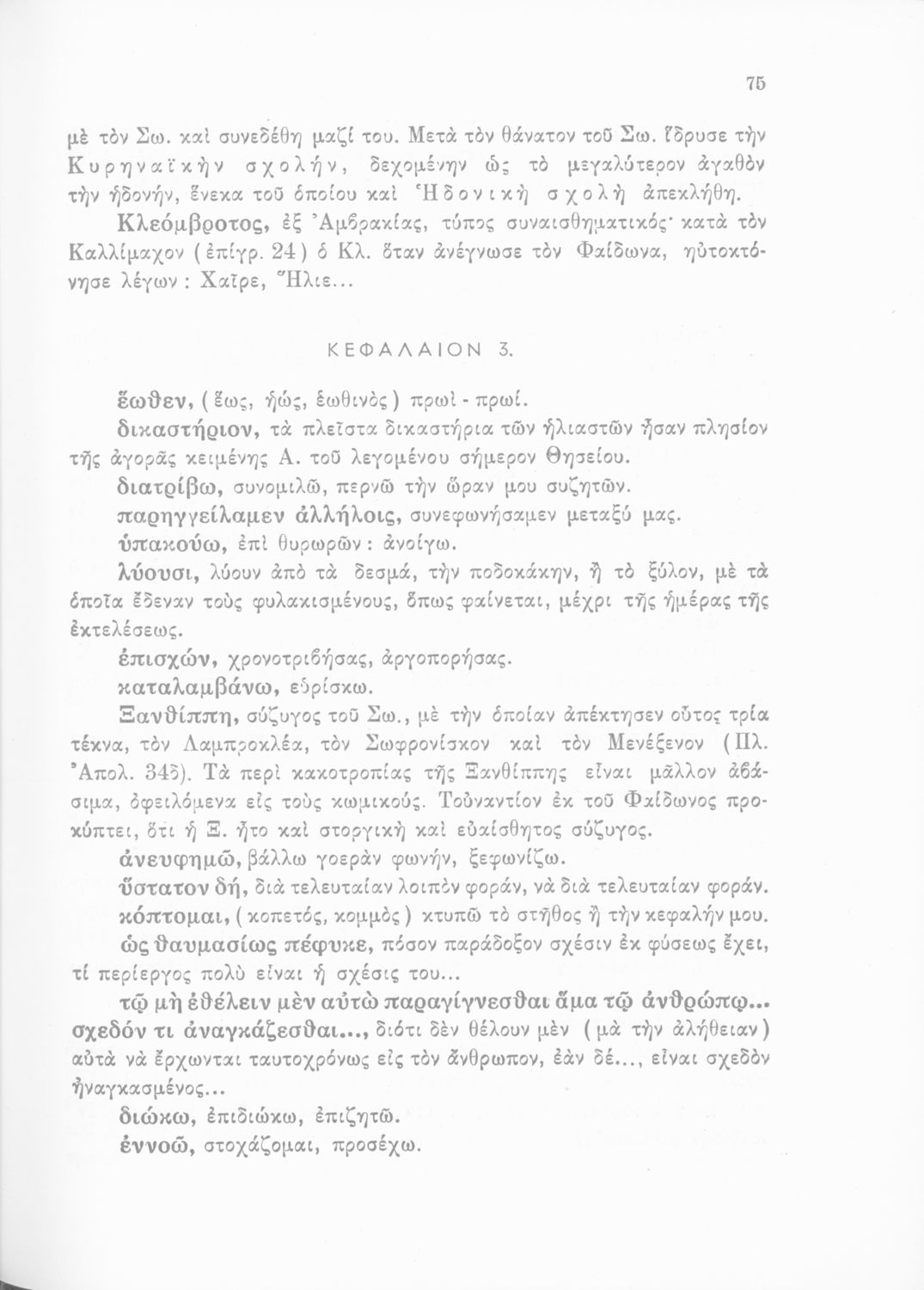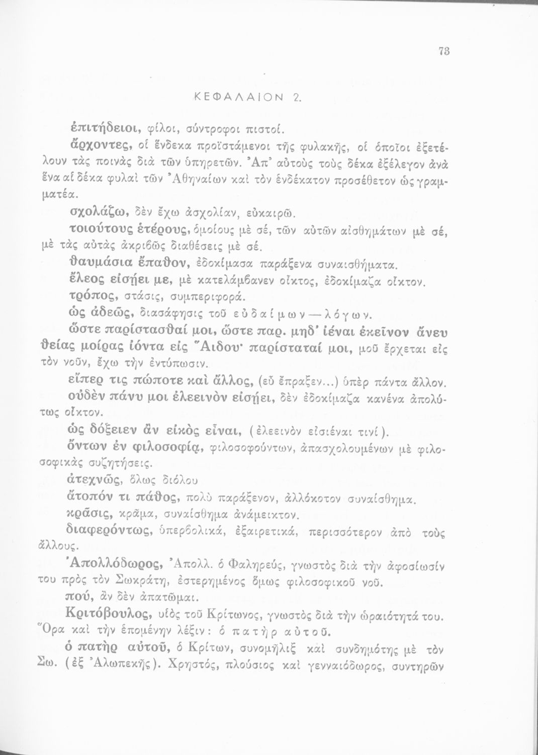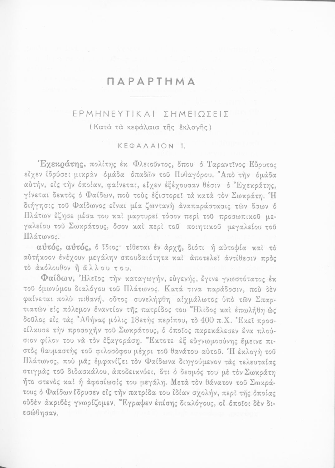 Βαθμίδα εκπαίδευσης: Δευτεροβάθμια Τάξη: ΣΤ' Γυμνασίου Μάθημα: Αρχαία Ελληνικά Γλώσσα: Απλή καθαρεύουσα Παρουσίαση περιεχομένου: Σχολικό εγχειρίδιο Αρχαίων Ελληνικών ΣΤ΄ Γυμνασίου που περιέχει αποσπάσματα από το έργο του Πλάτωνα Φαίδων, λεξιλογικές παρατηρήσεις, και ερμηνευτικά, πραγματολογικά σχόλια και γραμματικές παρατηρήσεις. |