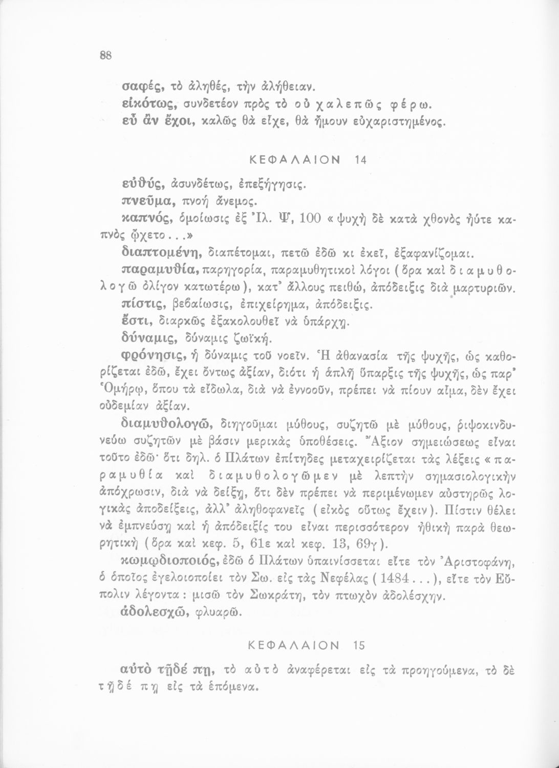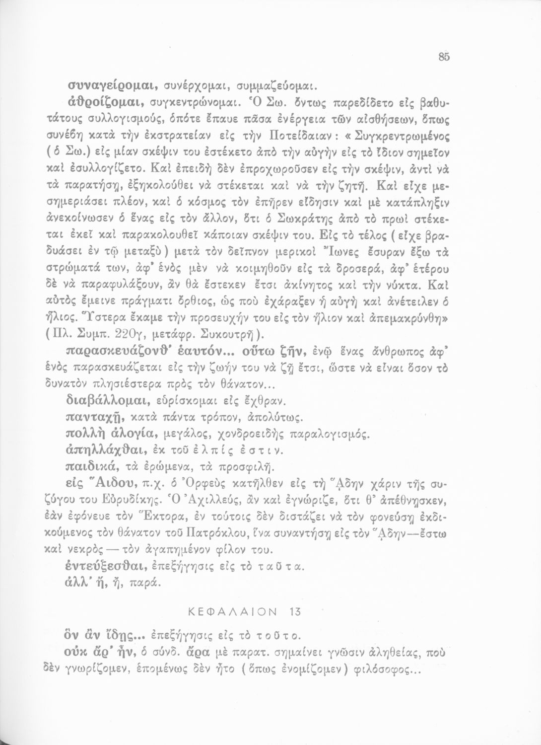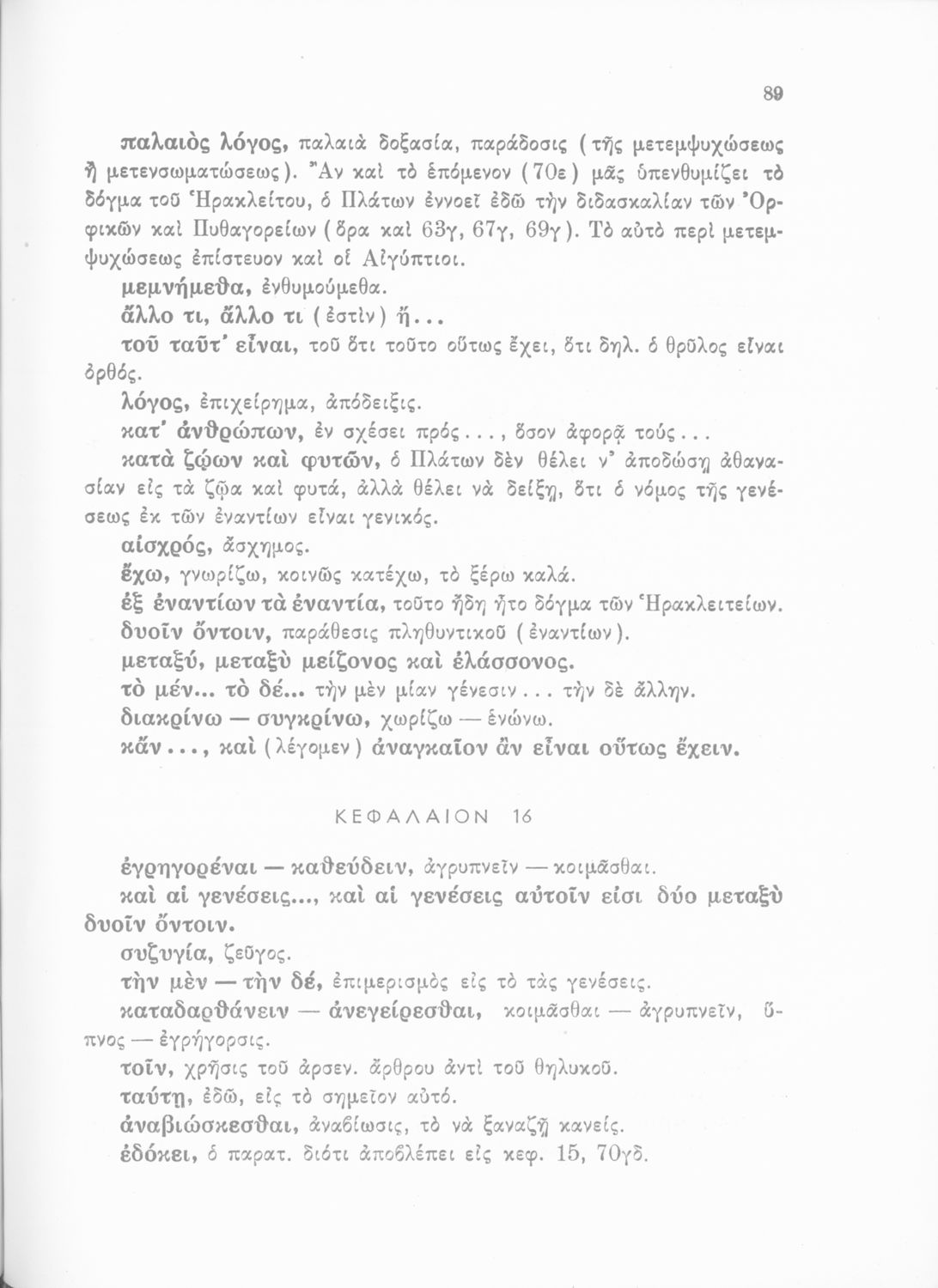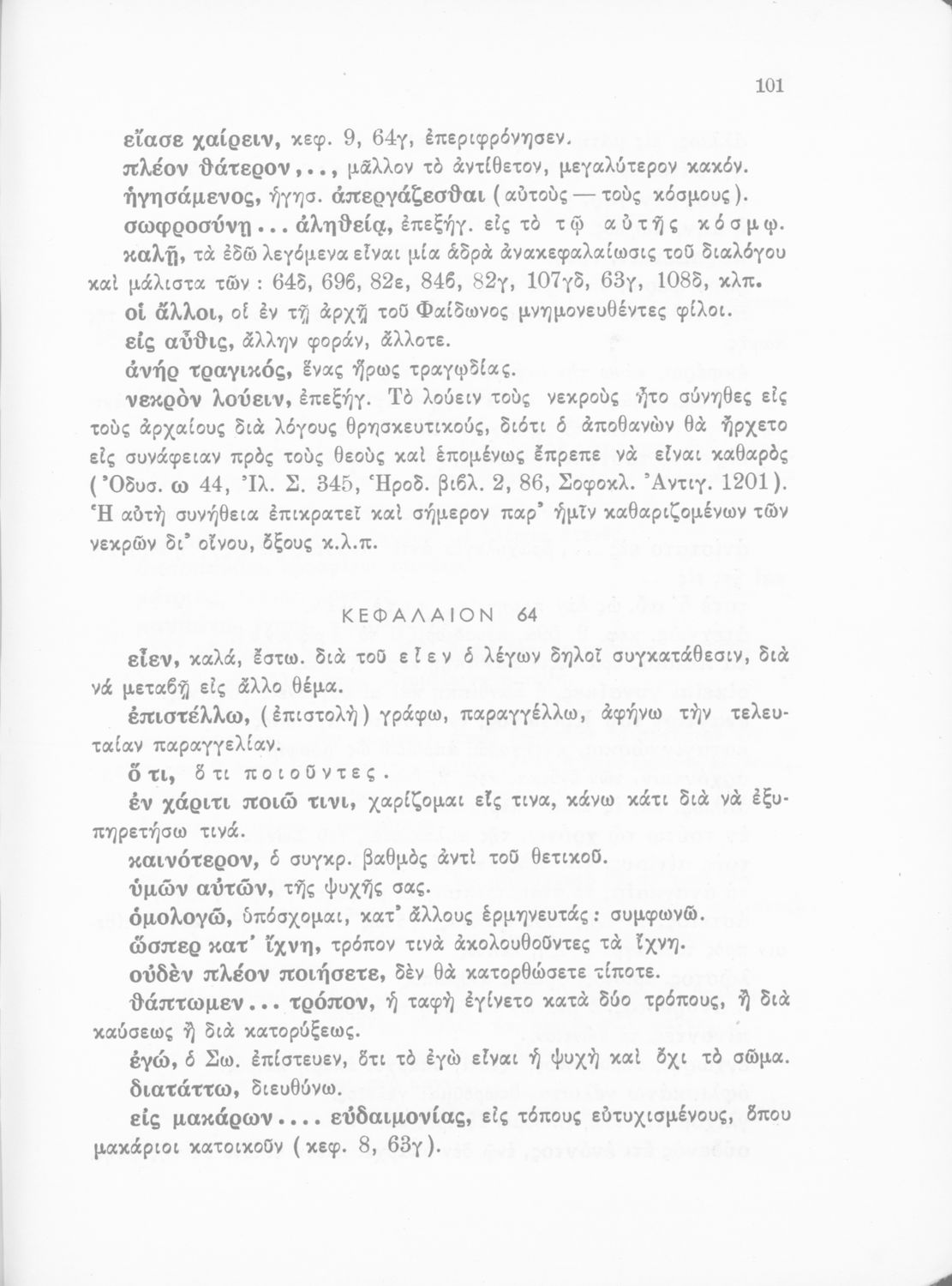 Σχολικό εγχειρίδιο Αρχαίων Ελληνικών ΣΤ΄ Γυμνασίου που περιέχει αποσπάσματα από το έργο του Πλάτωνα Φαίδων, λεξιλογικές παρατηρήσεις, και ερμηνευτικά, πραγματολογικά σχόλια και γραμματικές παρατηρήσεις.