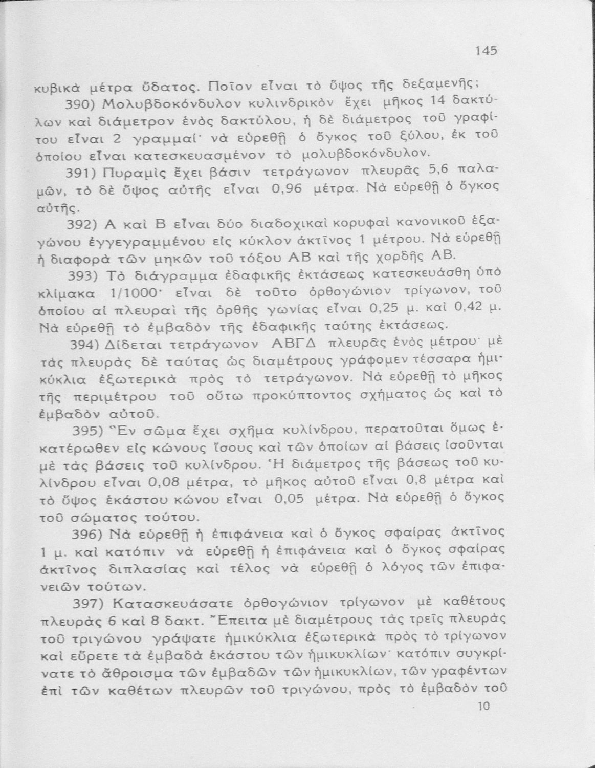 Σχολικό εγχειρίδιο Γεωμετρίας για τα Γυμνάσια και Αστικά Σχολεία που περιλαμβάνει θεωρία και ασκήσεις και είναι χωρισμένο σε Επιπεδομετρία και Στερεομετρία.