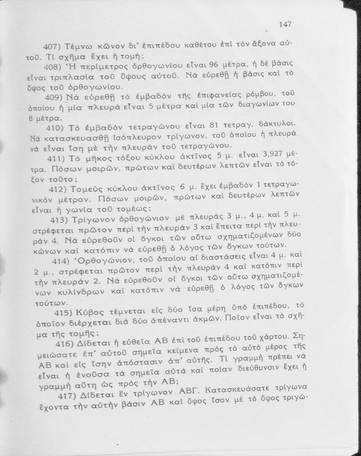 Σχολικό εγχειρίδιο Γεωμετρίας για τα Γυμνάσια και τα Αστικά Σχολεία που είναι χωρισμένο σε Επιπεδομετρία και Στερεομετρία και περιλαμβάνει θεωρία και ασκήσεις.
