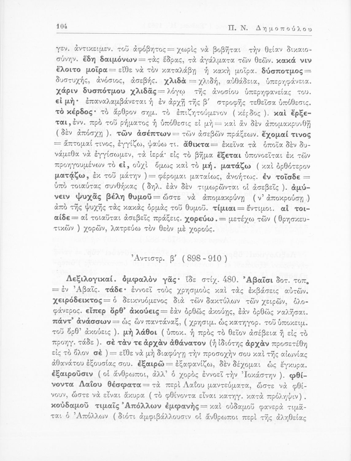 Σοφοκλής, Π. Ν. Δημόπουλος (σχόλια)