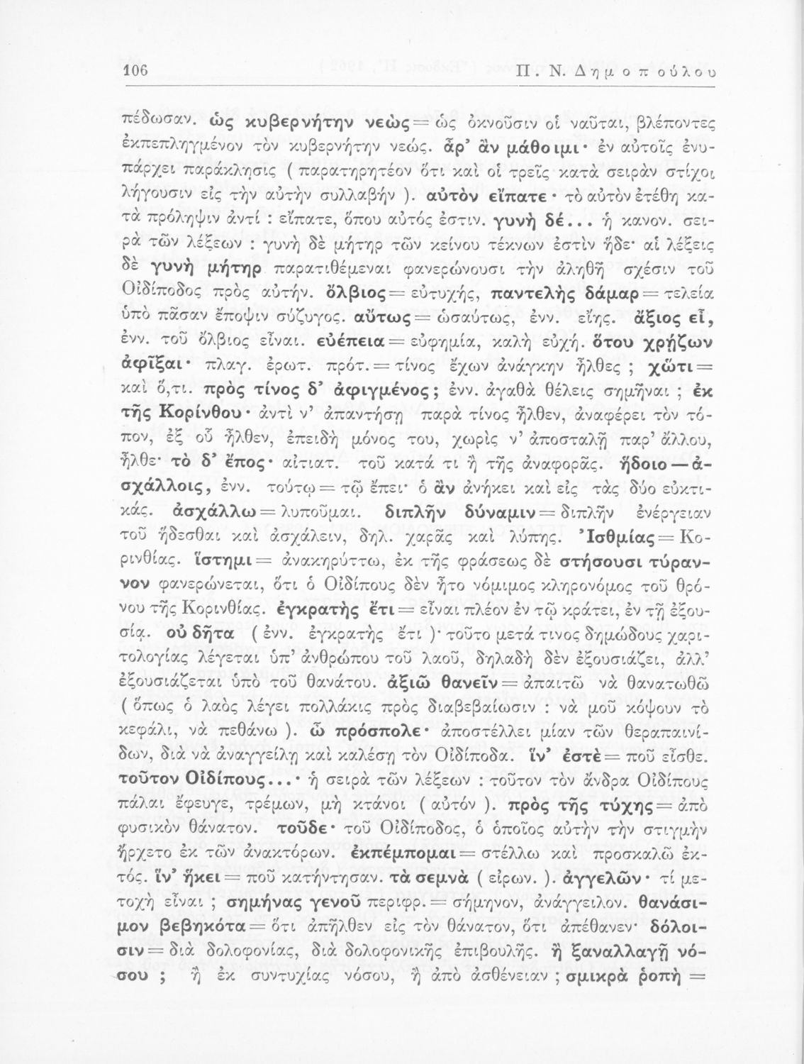 Σοφοκλής, Π. Ν Δημόπουλος (σχόλια)