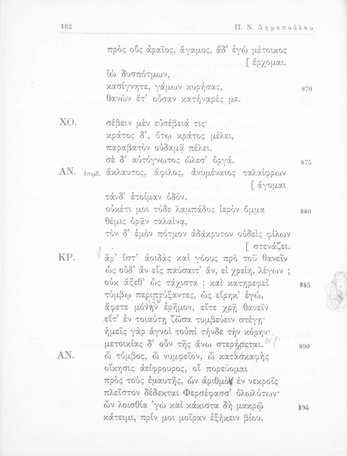 Σοφοκλής, Π. Ν Δημόπουλος (σχόλια)