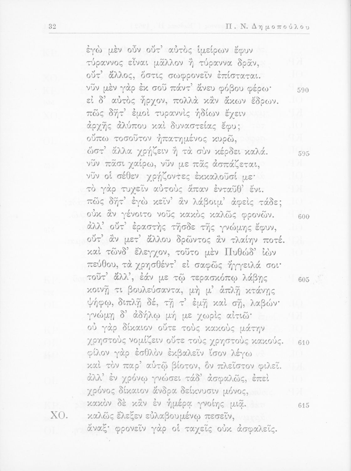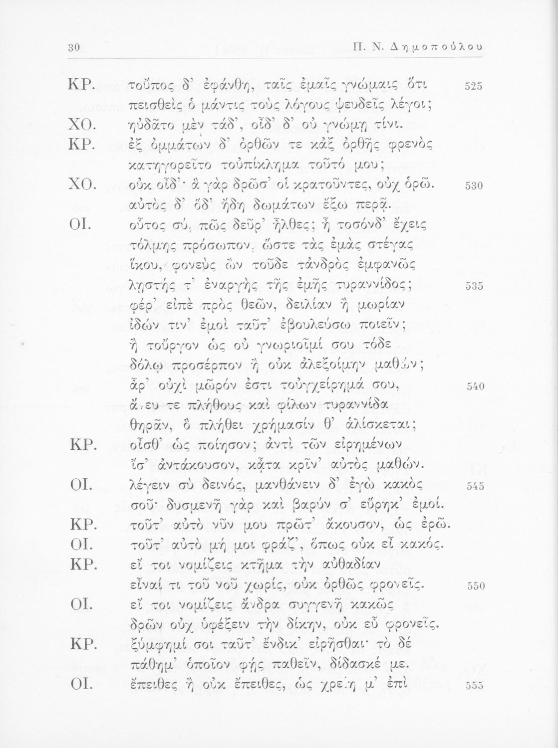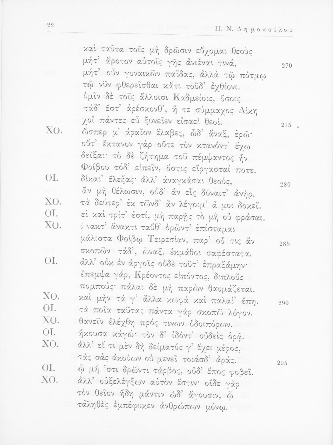 Σοφοκλής, Π. Ν Δημόπουλος (σχόλια)