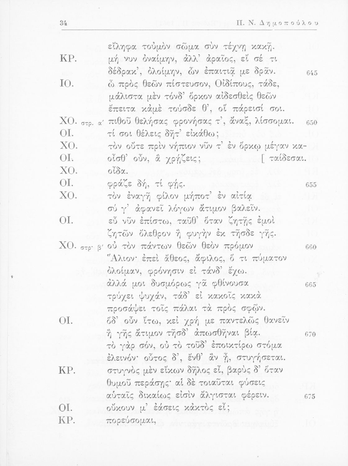 Σοφοκλής, Π. Ν. Δημόπουλος (σχόλια)