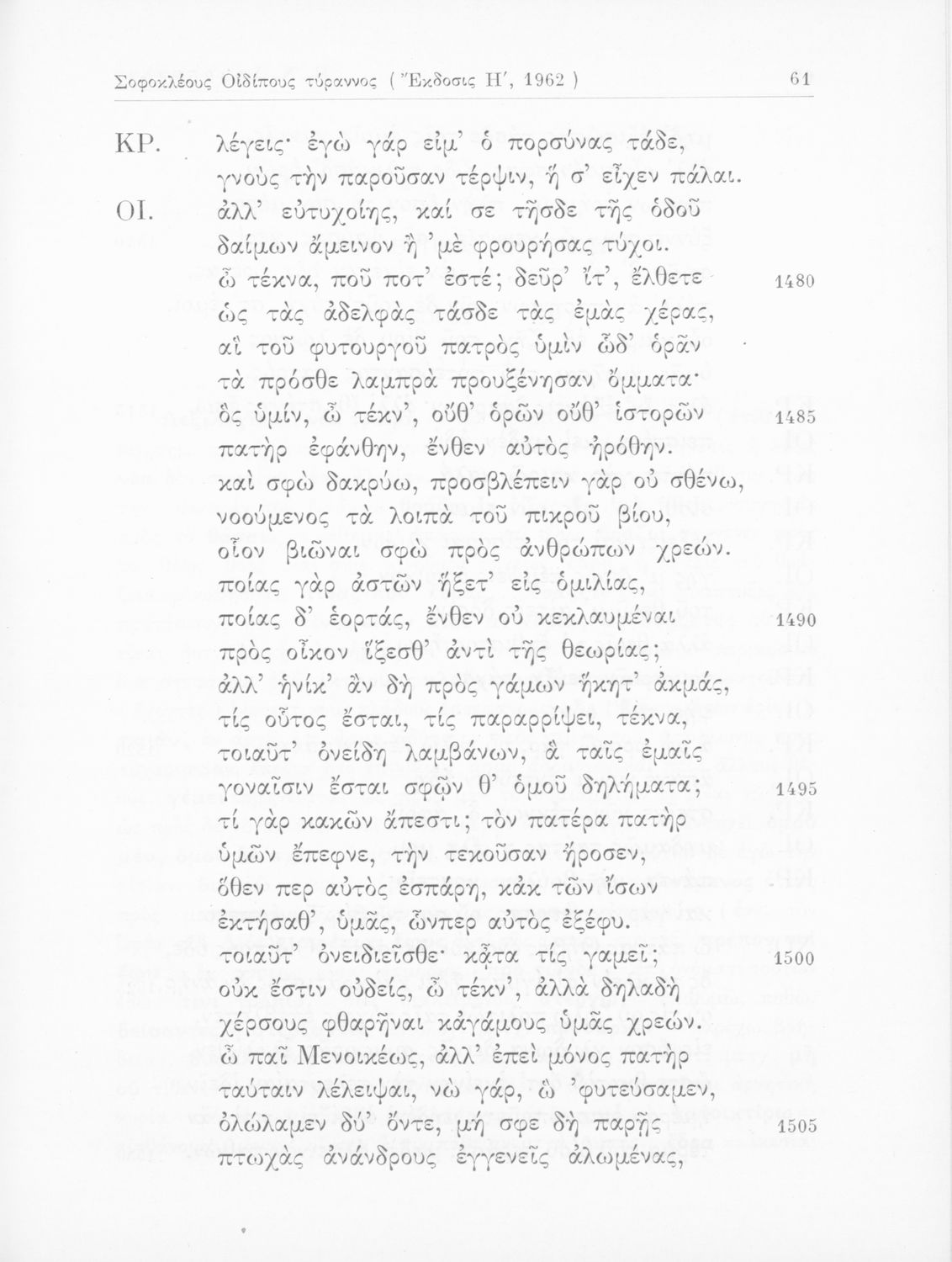 Σχολικό εγχειρίδιο Αρχαίων Ελληνικών της ΣΤ΄ Γυμνασίου. Το βιβλίο περιέχει δύο τραγωδίες του Σοφοκλή, τον Οιδίπους Τύραννο και την Αντιγόνη. Τα έργα αυτά συνοδεύονται από αναλύσεις λεξιλογικές και αναφορικά με