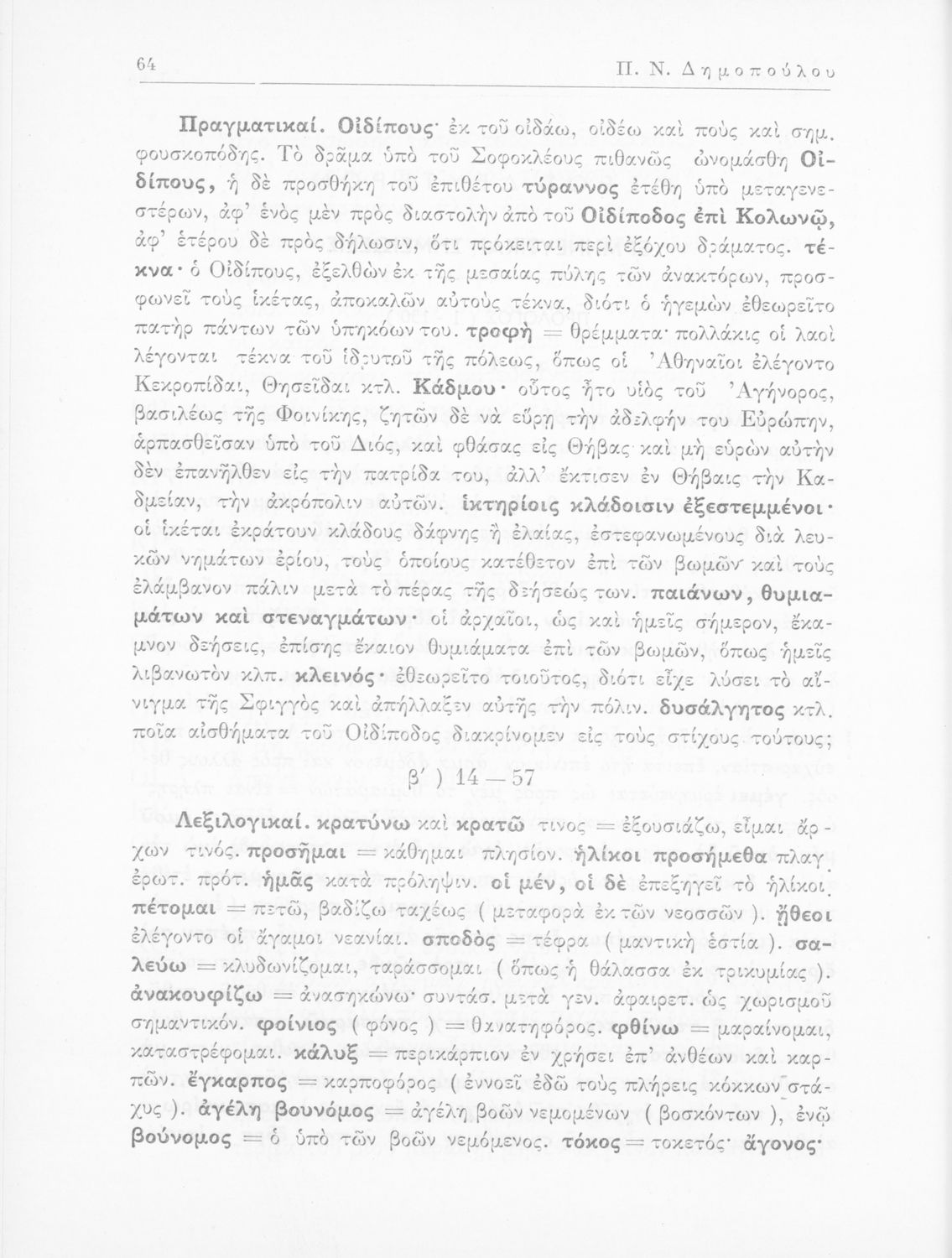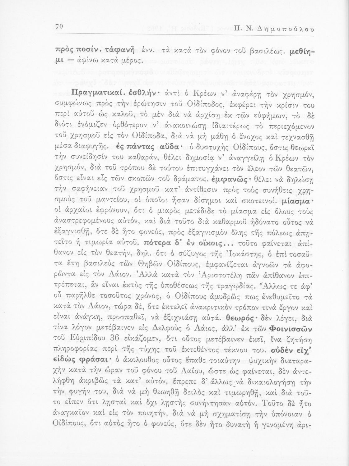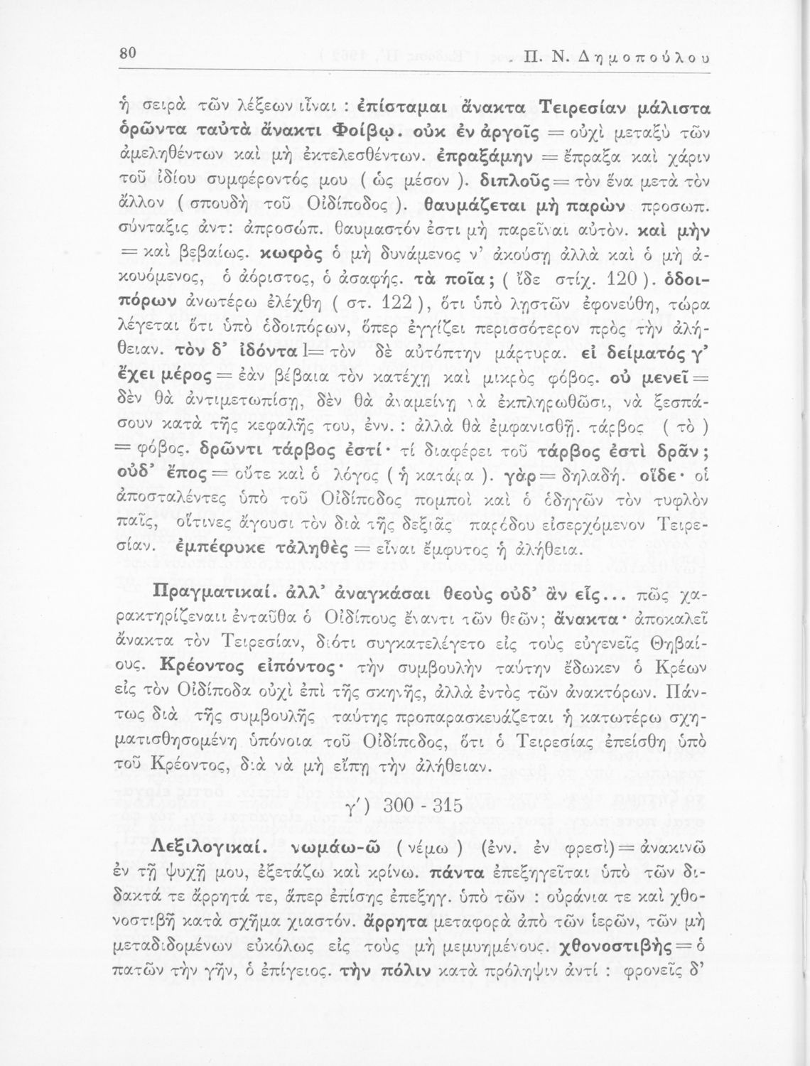 Σοφοκλής, Π.Ν. Δημόπουλος (σχόλια)