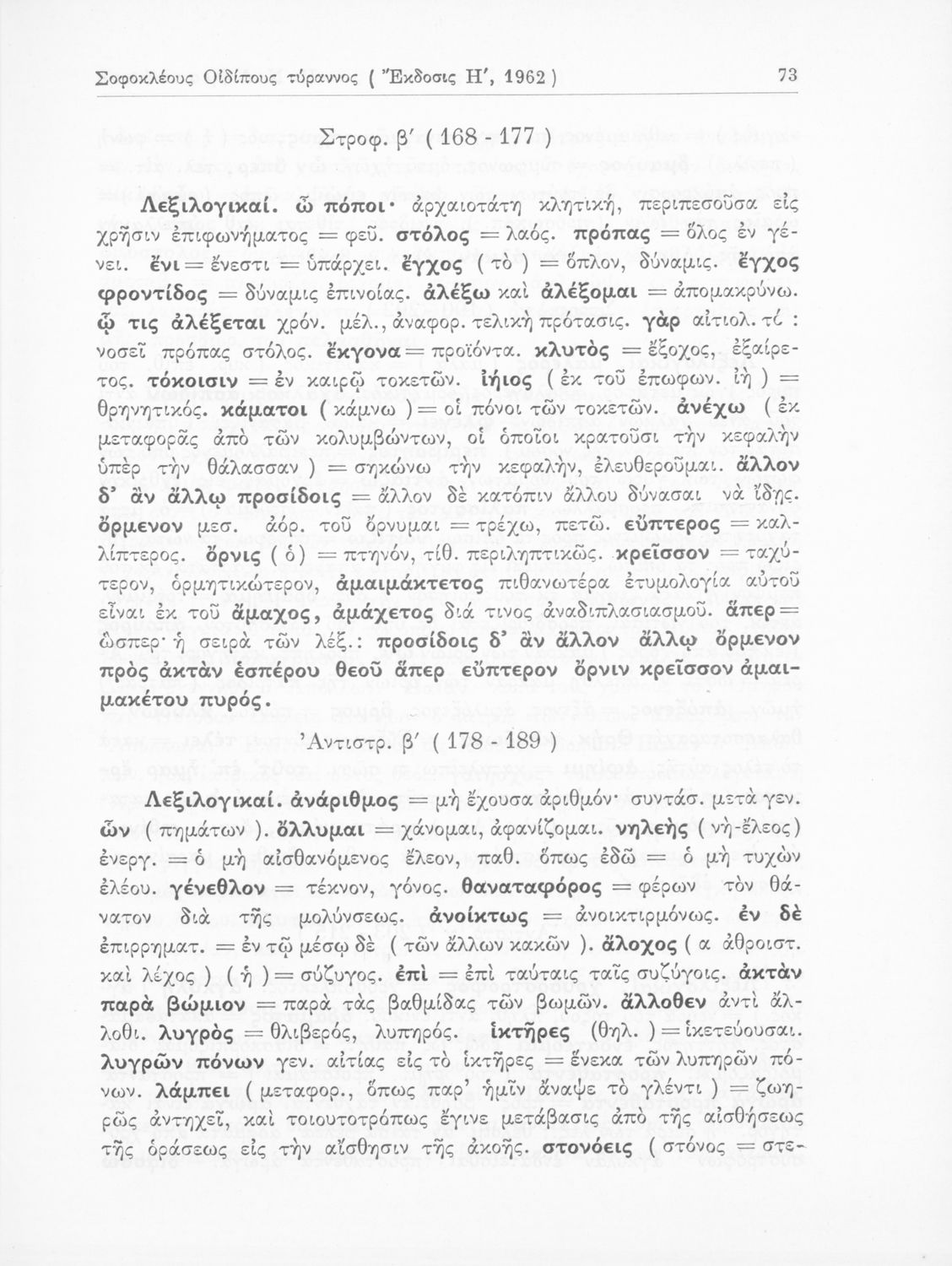 Σχολικό εγχειρίδιο Αρχαίων Ελληνικών που περιλαμβάνει τις τραγωδίες του Σοφοκλή Οιδίπους Τύραννος και Αντιγόνη, εισαγωγή και ερμηνευτικά σχόλια.
