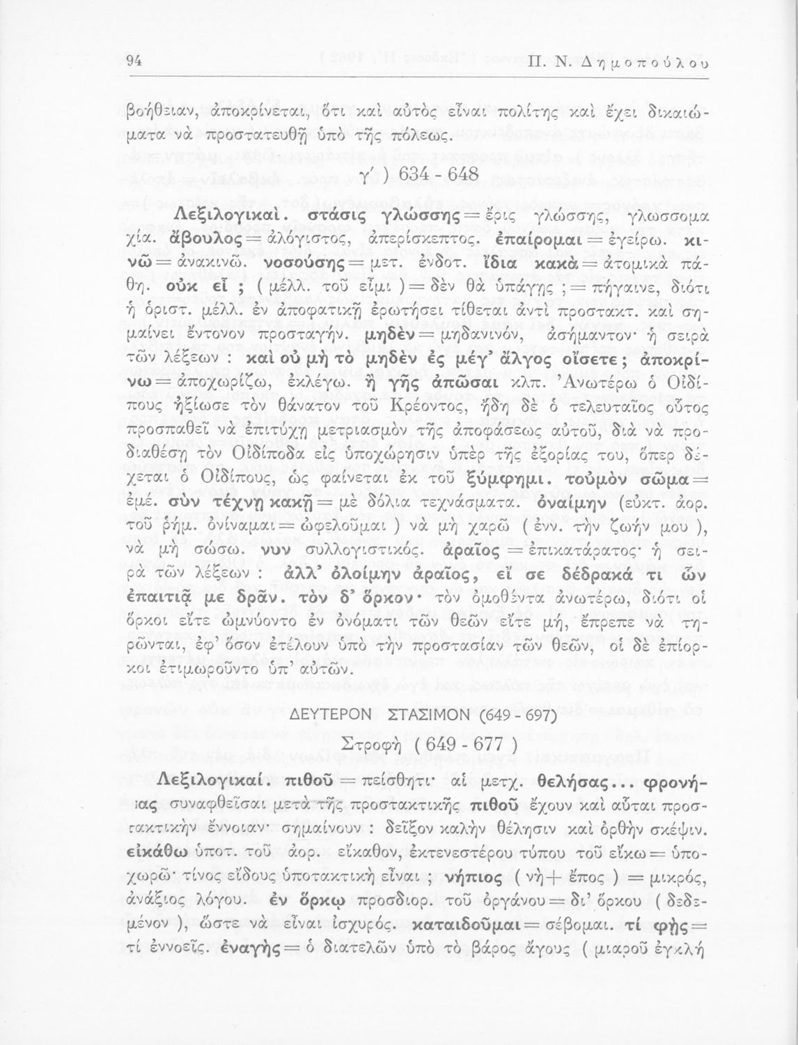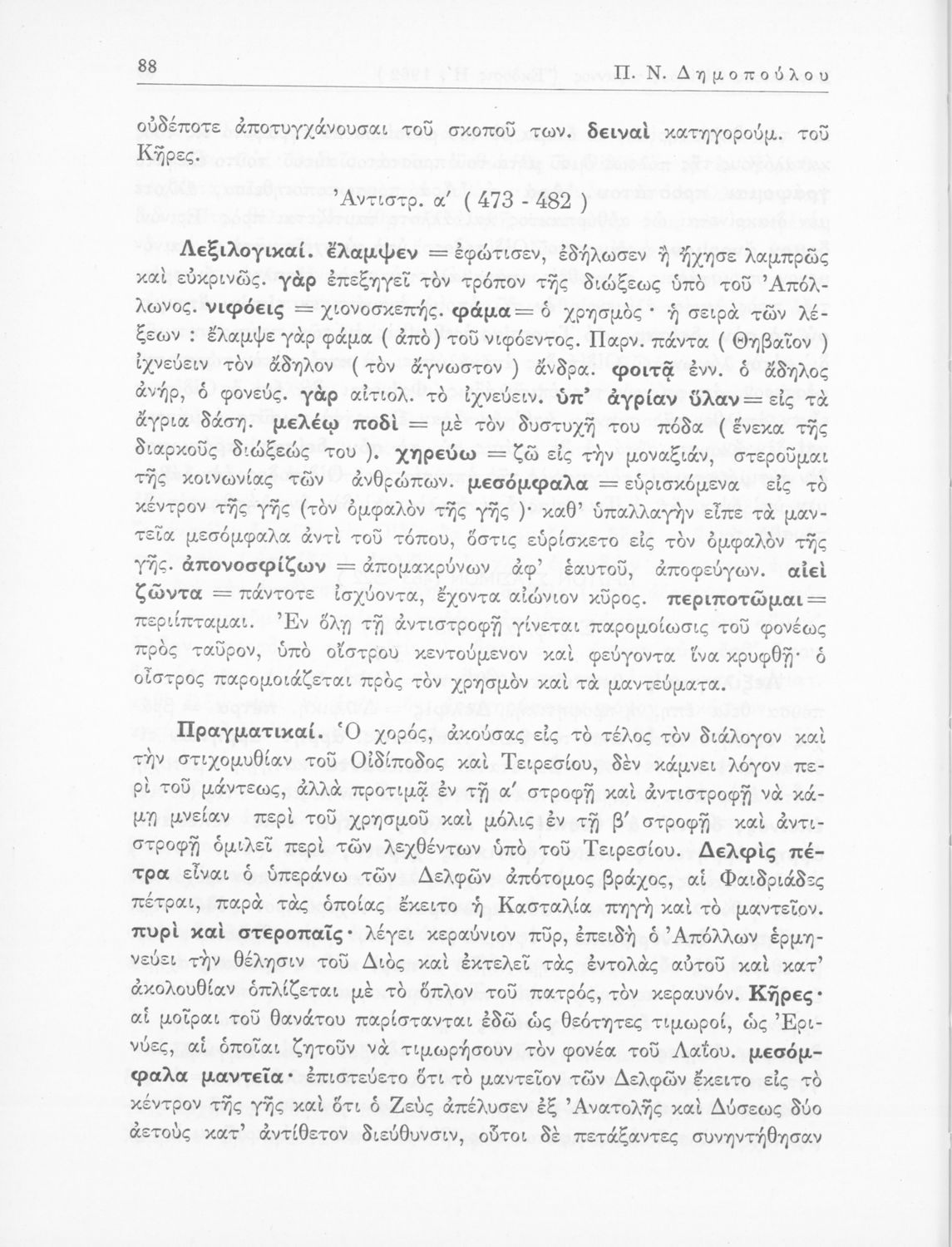 LDR 01184 2200229 4500 035 ## _a01-17328 040 ## _aΙνστιτούτο Εκπαιδευτικής Πολιτικής 041 ## _ael 100 ## _aΣοφοκλής _aΠ. Ν Δημόπουλος (σχόλια) 110 ## _a17328 245 0# _aΣοφοκλέους Τραγωδίαι Οιδίπους Τύραννος - Αντιγόνη 250 ## _a8η Έκδοση 260 ## _aΑθήνα _bΟργανισμός Εκδόσεως Σχολικών Βιβλίων _c1962 300 ## _a255 _bΣκίτσα (ασπρόμαυρα) 520 ## _aΣχολικό εγχειρίδιο Αρχαίων Ελληνικών Γυμνασίου που περιέχει κείμενο, ερμηνευτικά και πραγματολογικά σχόλια, και λεξιλογικές παρατηρήσεις. 521 ## _aΓυμνάσιο 522 ## _aΕλλάδα 546 ## _aΑπλή καθαρεύουσα 563 ## _aΣκληρό Εξώφυλλο 583 ## _a1081/12-4-1962 _c1962 650 #4 _aΑντιγόνη _aΚάθαρση _aΚρέοντας _aΠολυνίκης _aΤραγωδία 700 ## _aΣπύρος Παπασπύρου
