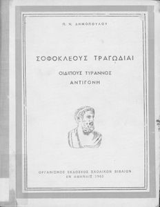 Σχολικό εγχειρίδιο Αρχαίων Ελληνικών της ΣΤ΄ Γυμνασίου. Το βιβλίο περιέχει δύο τραγωδίες του Σοφοκλή, τον Οιδίπους Τύραννο και την Αντιγόνη. Τα έργα αυτά συνοδεύονται από αναλύσεις λεξιλογικές και αναφορικά με