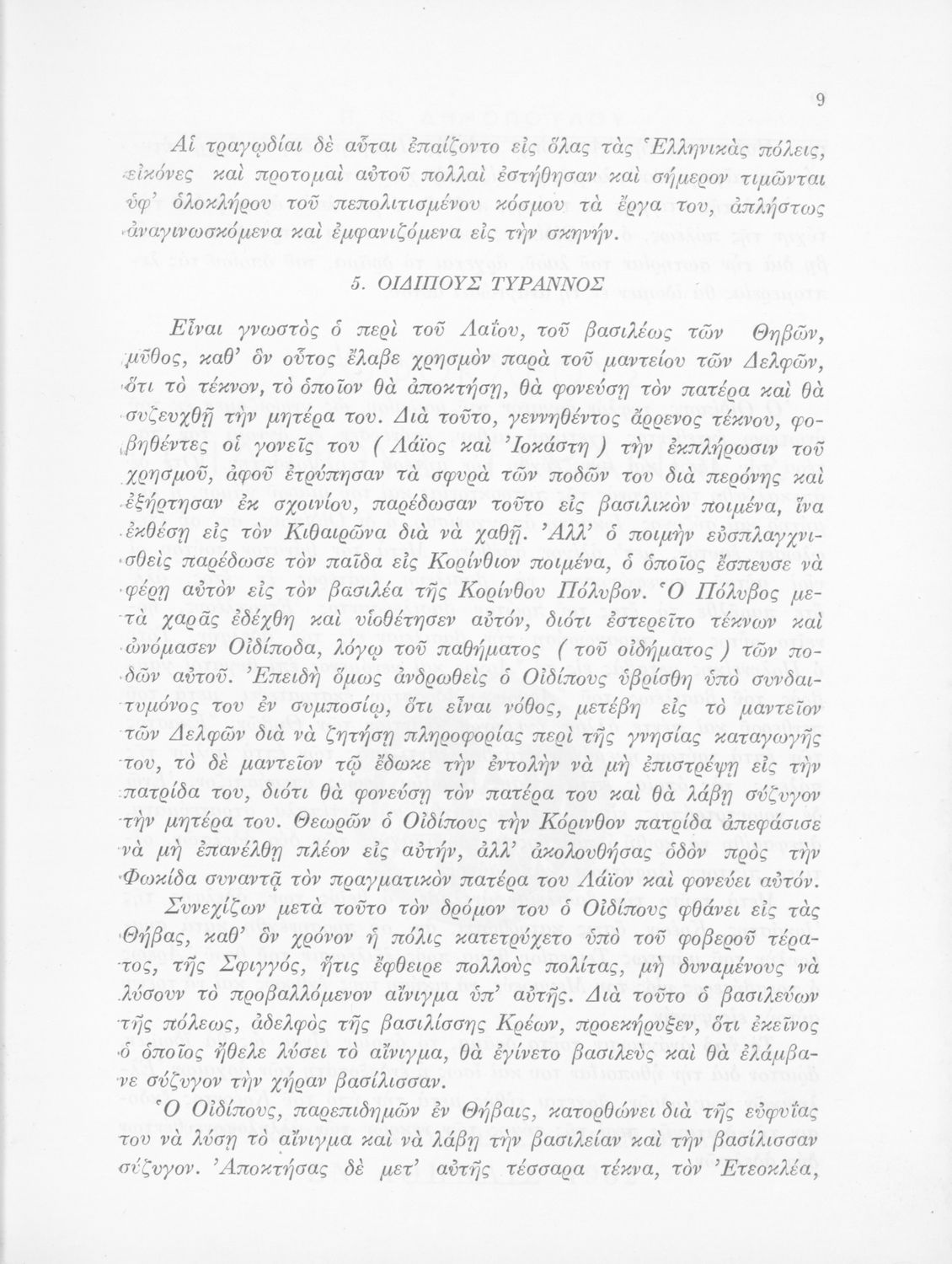 Σχολικό εγχειρίδιο Αρχαίων Ελληνικών που περιλαμβάνει τις τραγωδίες του Σοφοκλή Οιδίπους Τύραννος και Αντιγόνη, εισαγωγή και ερμηνευτικά σχόλια.
