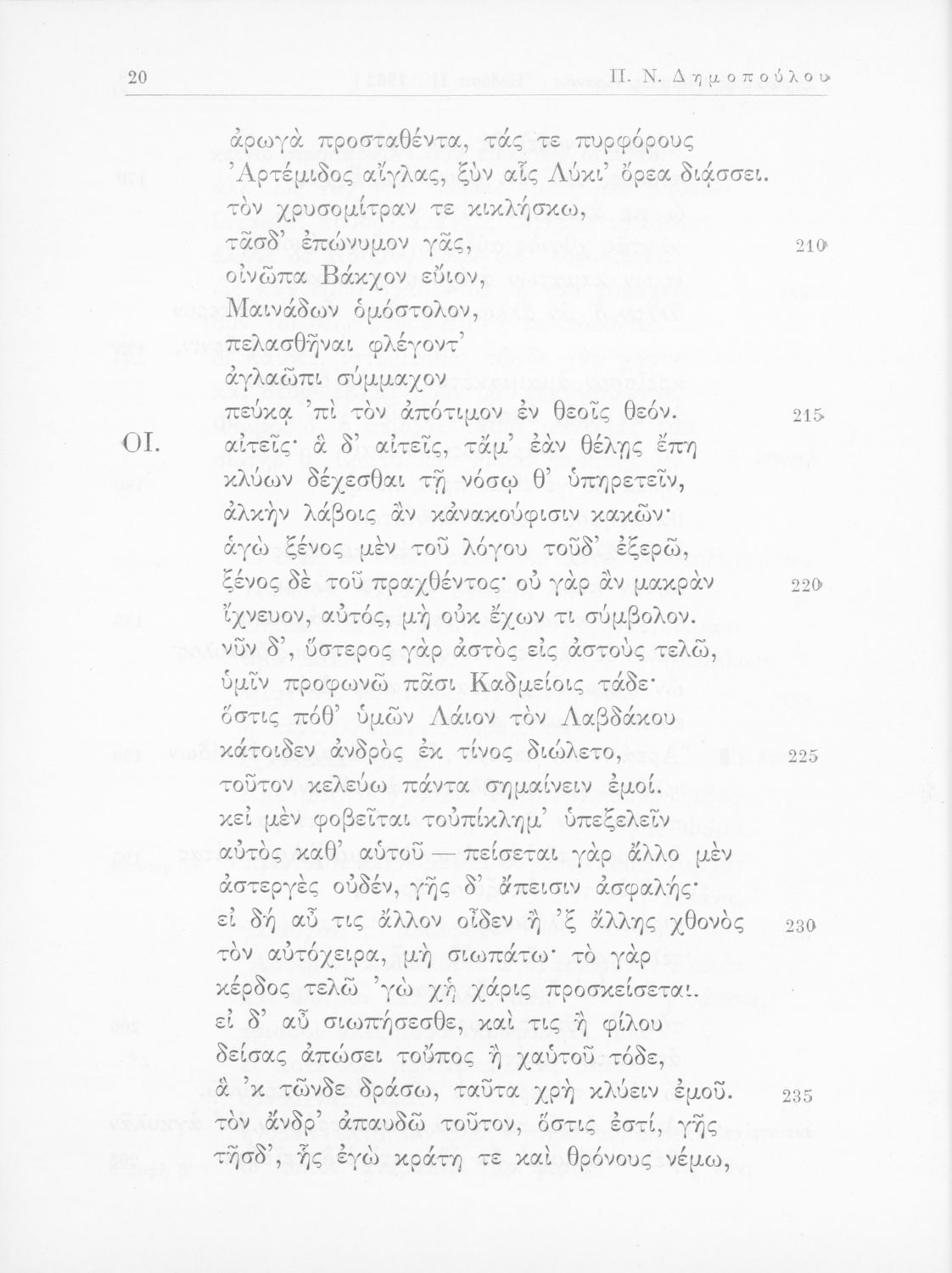 Σοφοκλής, Π. Ν Δημόπουλος (σχόλια)