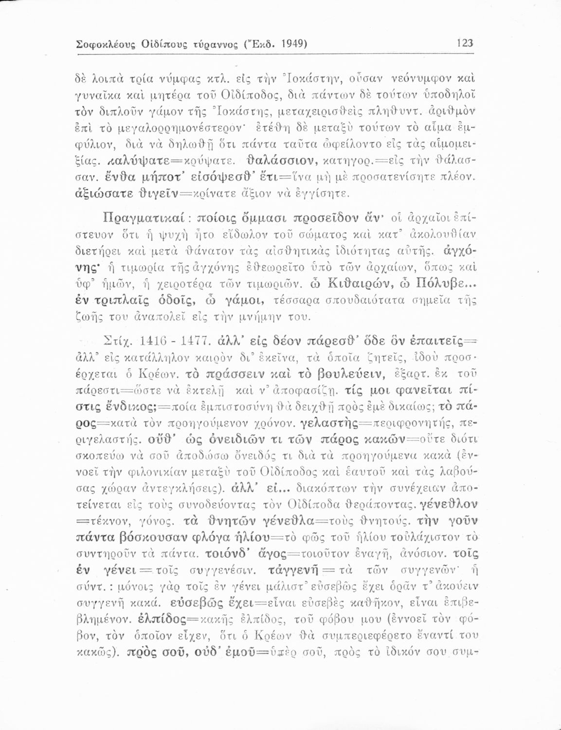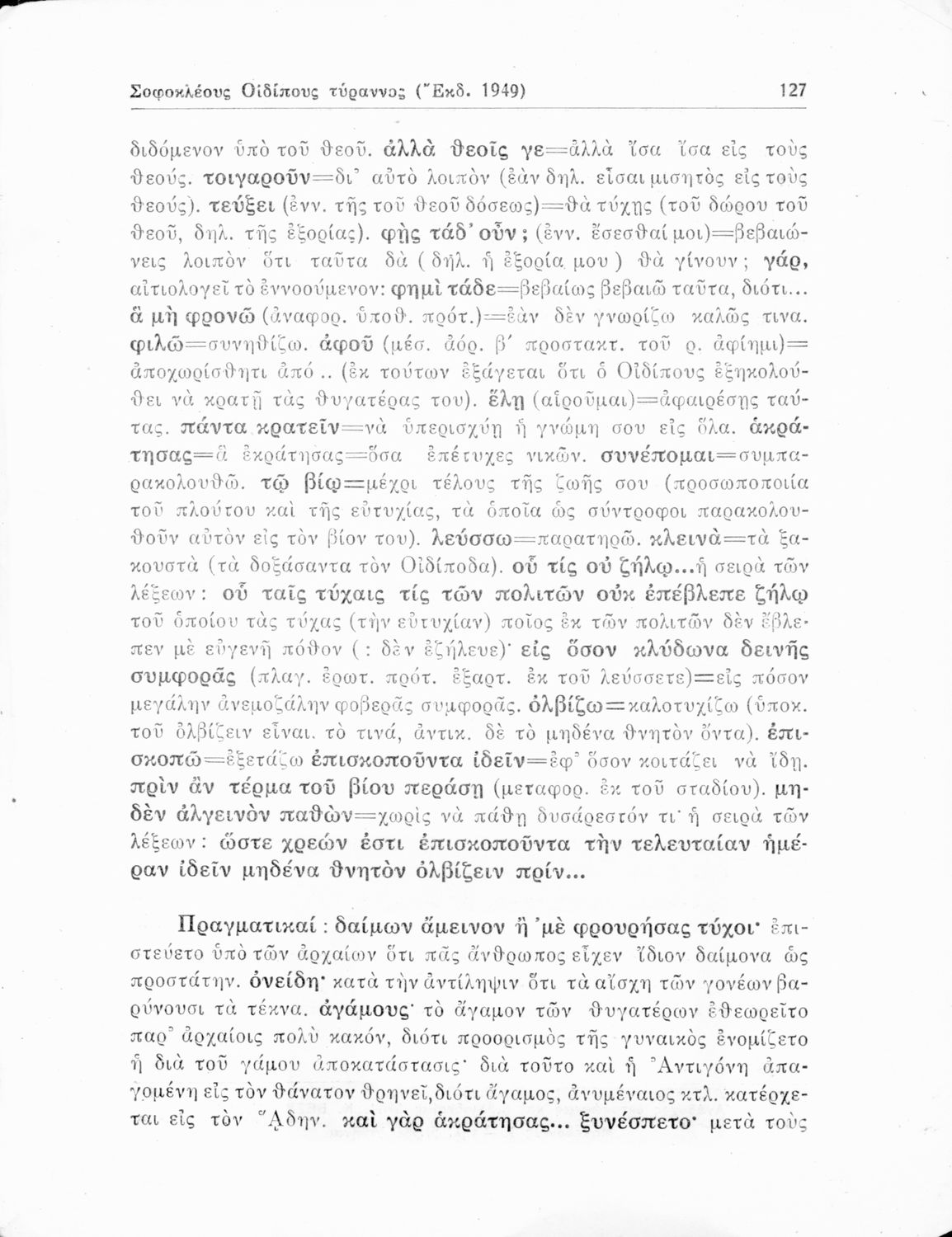 Σοφοκλέους Οιδίπους Τύραννος. Δια την ΣΤ΄ Τάξιν των Γυμνασίων