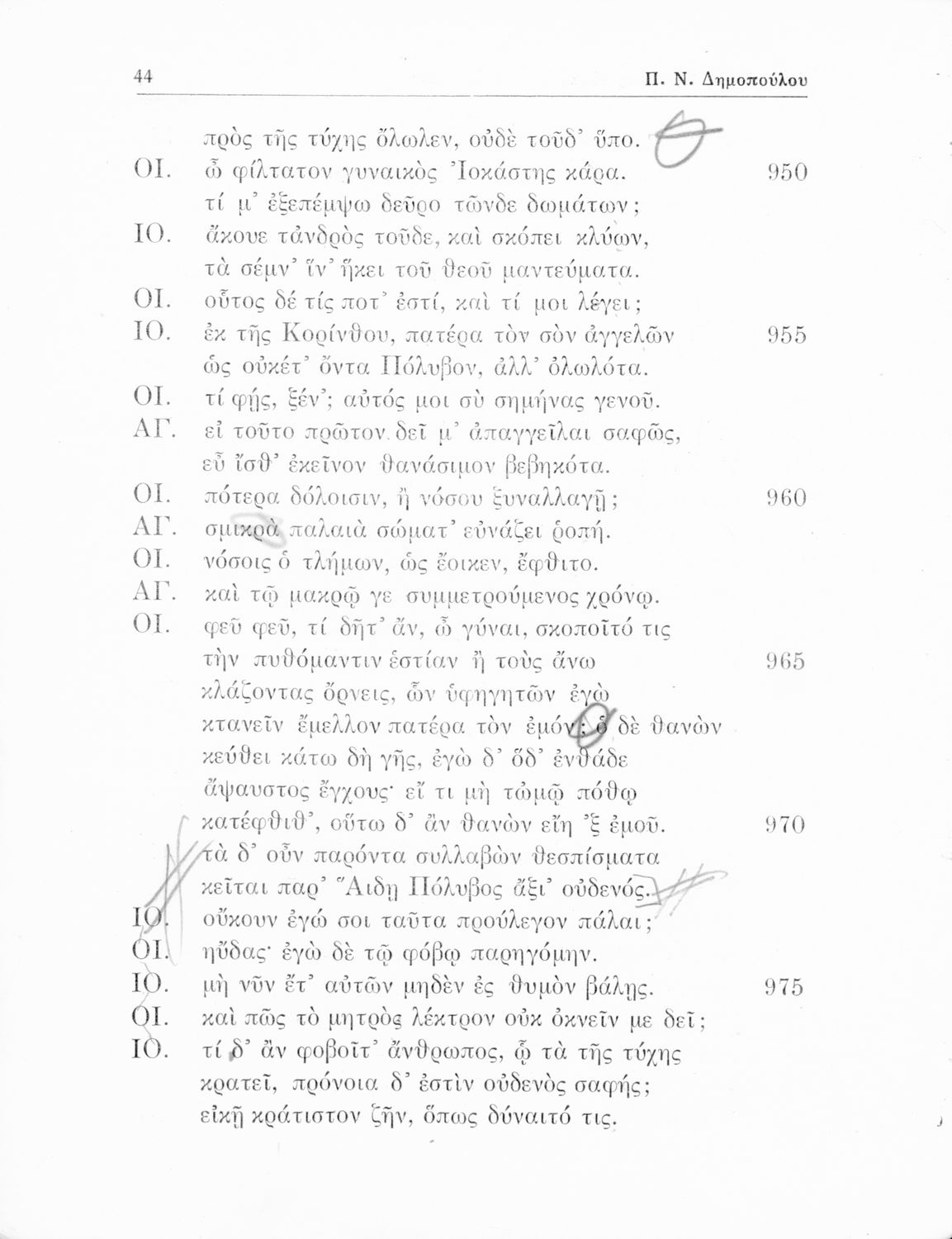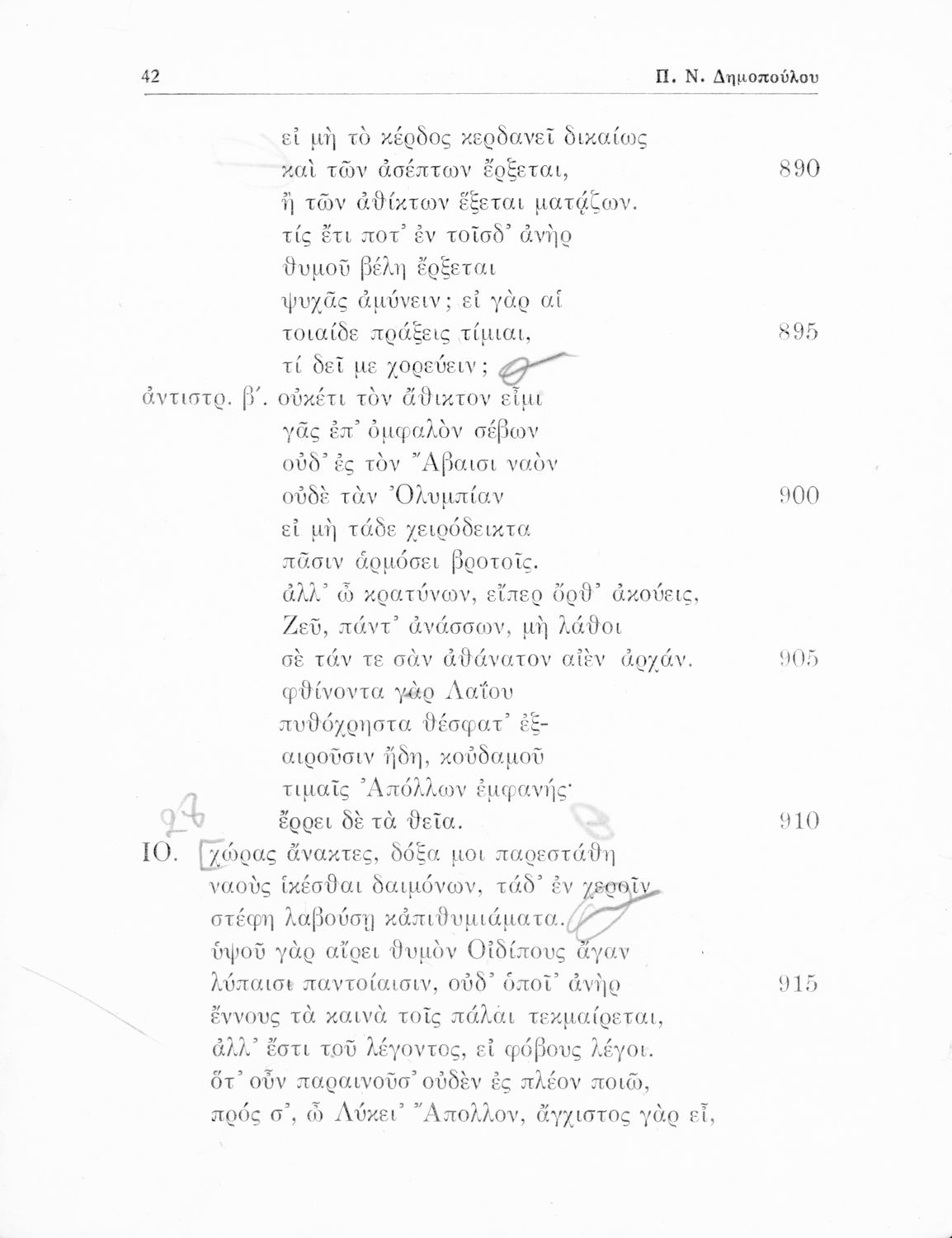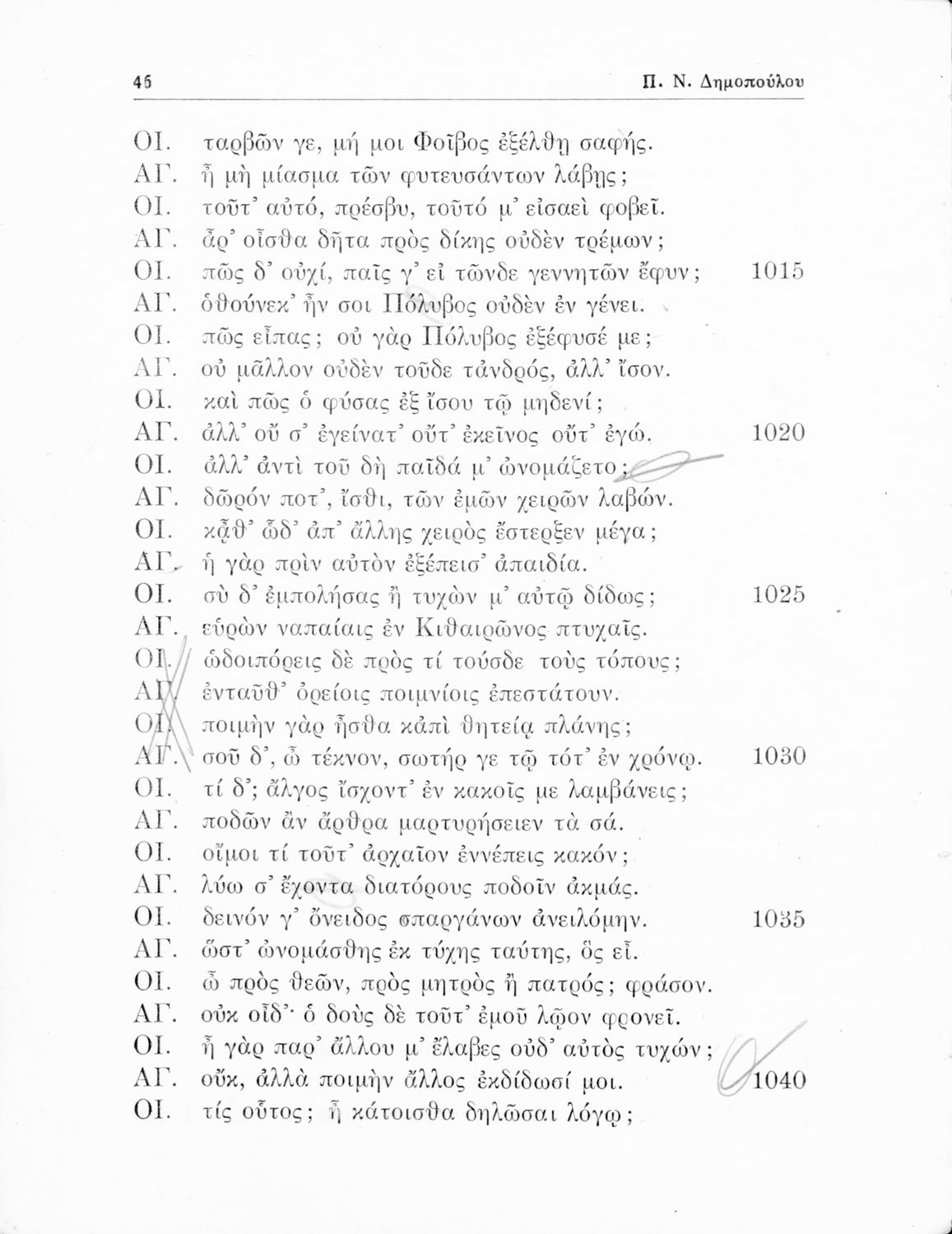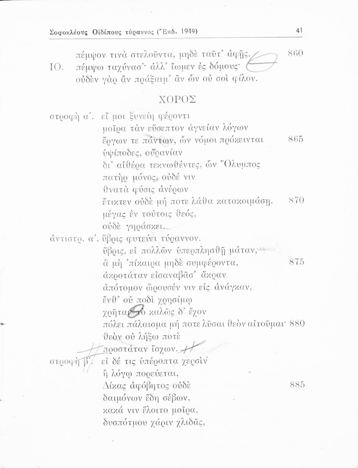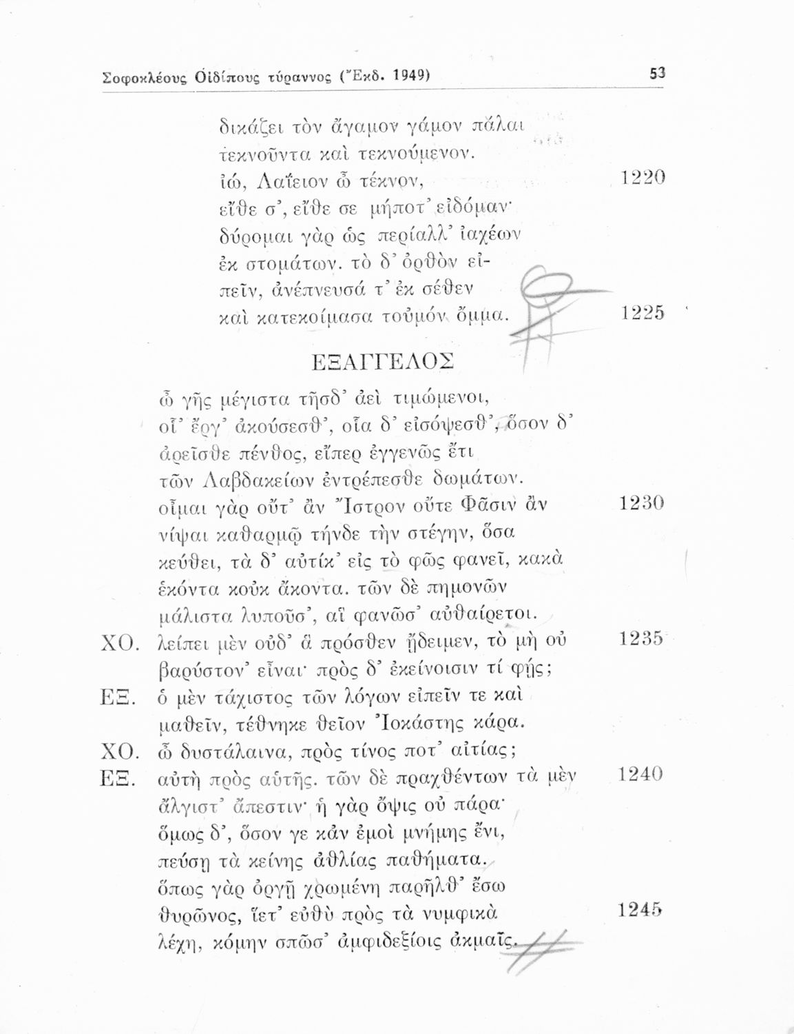 LDR 01144 2200193 4500 035 ## _a01-17329 040 ## _aΙνστιτούτο Εκπαιδευτικής Πολιτικής 041 ## _ael 100 ## _aΣοφοκλής _aΠ.Ν Δημόπουλος (σχόλια) 110 ## _a17329 245 0# _aΣοφοκλέους Οιδίπους Τύραννος. Δια την ΣΤ΄ Τάξιν των Γυμνασίων 260 ## _aΑθήνα _bΟργανισμός Εκδόσεως Σχολικών Βιβλίων _c1949 300 ## _a128 520 ## _aΣχολικό εγχειρίδιο της ΣΤ ΄ Γυμνασίου για το μάθημα των Αρχαίων. Περιέχει το πρωτότυπο κείμενο της τραγωδίας του Σοφοκλή με ερμηνευτικά, πραγματολογικά σχόλια και λεξιλογικές παρατηρήσεις. 521 ## _aΣΤ' Γυμνασίου 522 ## _aΕλλάδα 546 ## _aΑπλή καθαρεύουσα 563 ## _aΜαλακό Εξώφυλλο 650 #4 _aΔράμα _aΚάθαρση _aΟιδίπους Τύραννος _aΣοφοκλής _aΣφίγγα