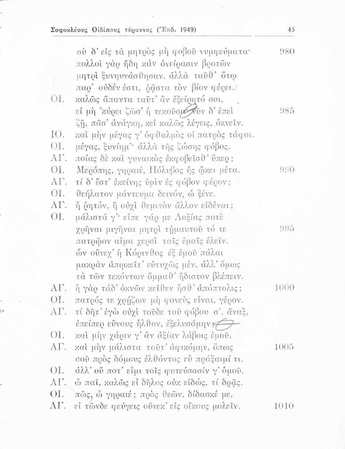 Σχολικό εγχειρίδιο της ΣΤ ΄ Γυμνασίου για το μάθημα των Αρχαίων. Περιέχει το πρωτότυπο κείμενο της τραγωδίας του Σοφοκλή με ερμηνευτικά, πραγματολογικά σχόλια και λεξιλογικές παρατηρήσεις.