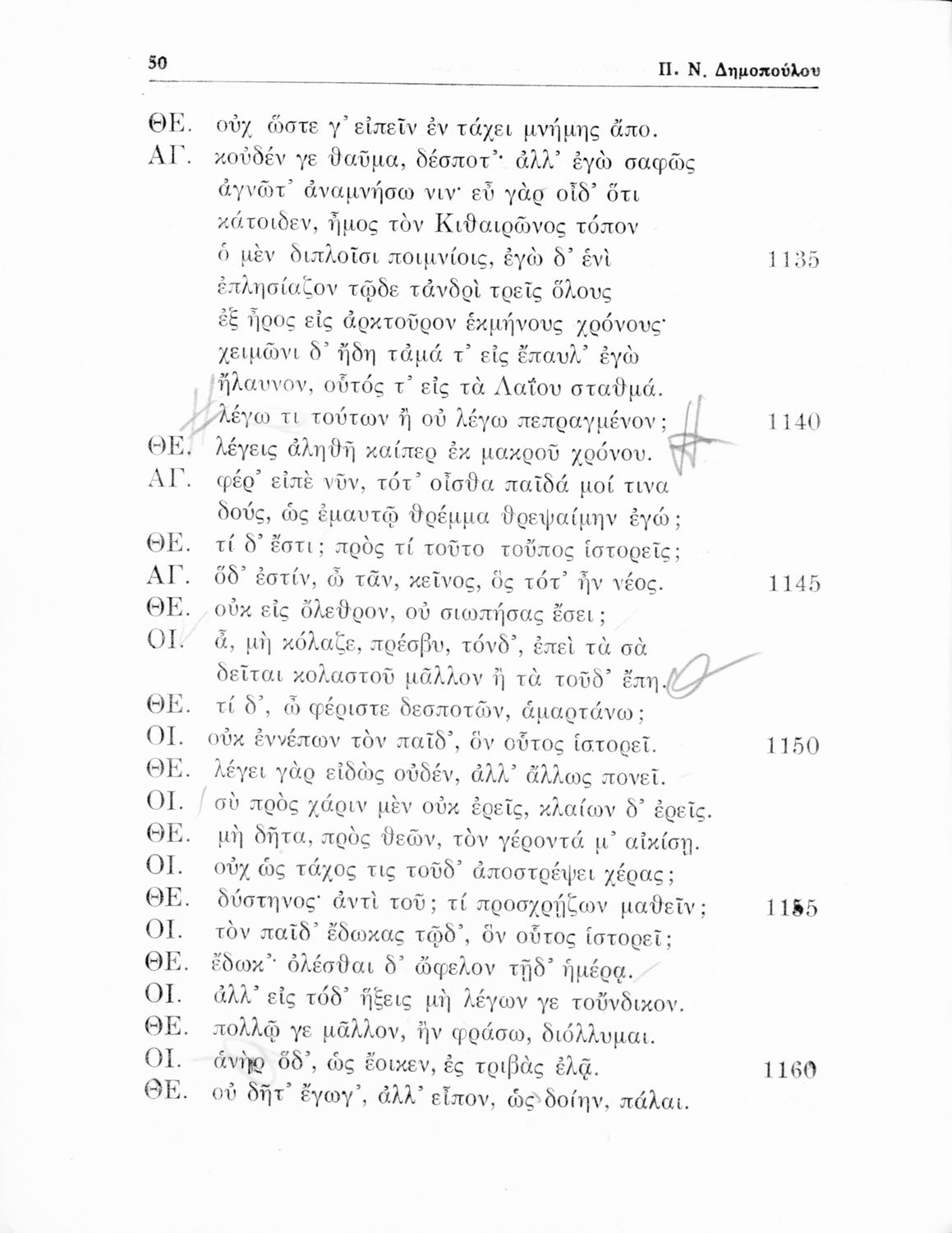Κωδικός αναγνώρισης: 01-17329 Τίτλος: Σοφοκλέους Οιδίπους Τύραννος. Δια την ΣΤ΄ Τάξιν των Γυμνασίων Συγγραφέας: Σοφοκλής, Π.Ν Δημόπουλος (σχόλια) Μέγεθος και υπόστρωμα: Σχολικό εγχειρίδιο, μαλακό εξώφυλλο, 128 σελίδες. |