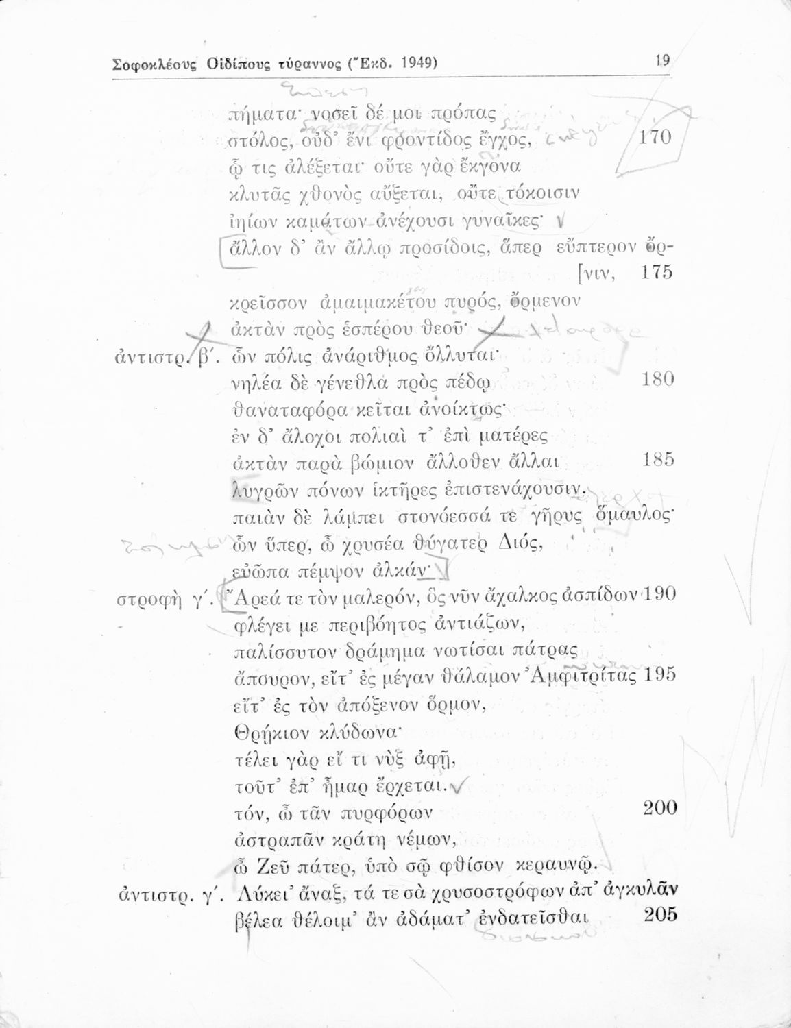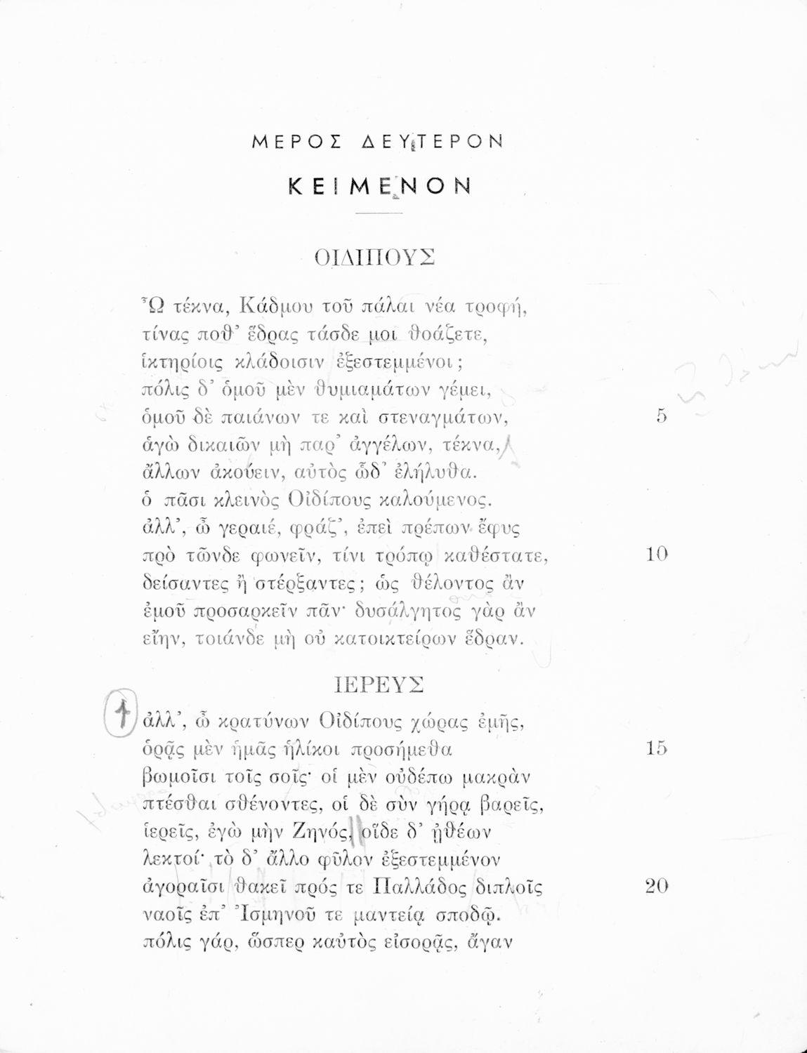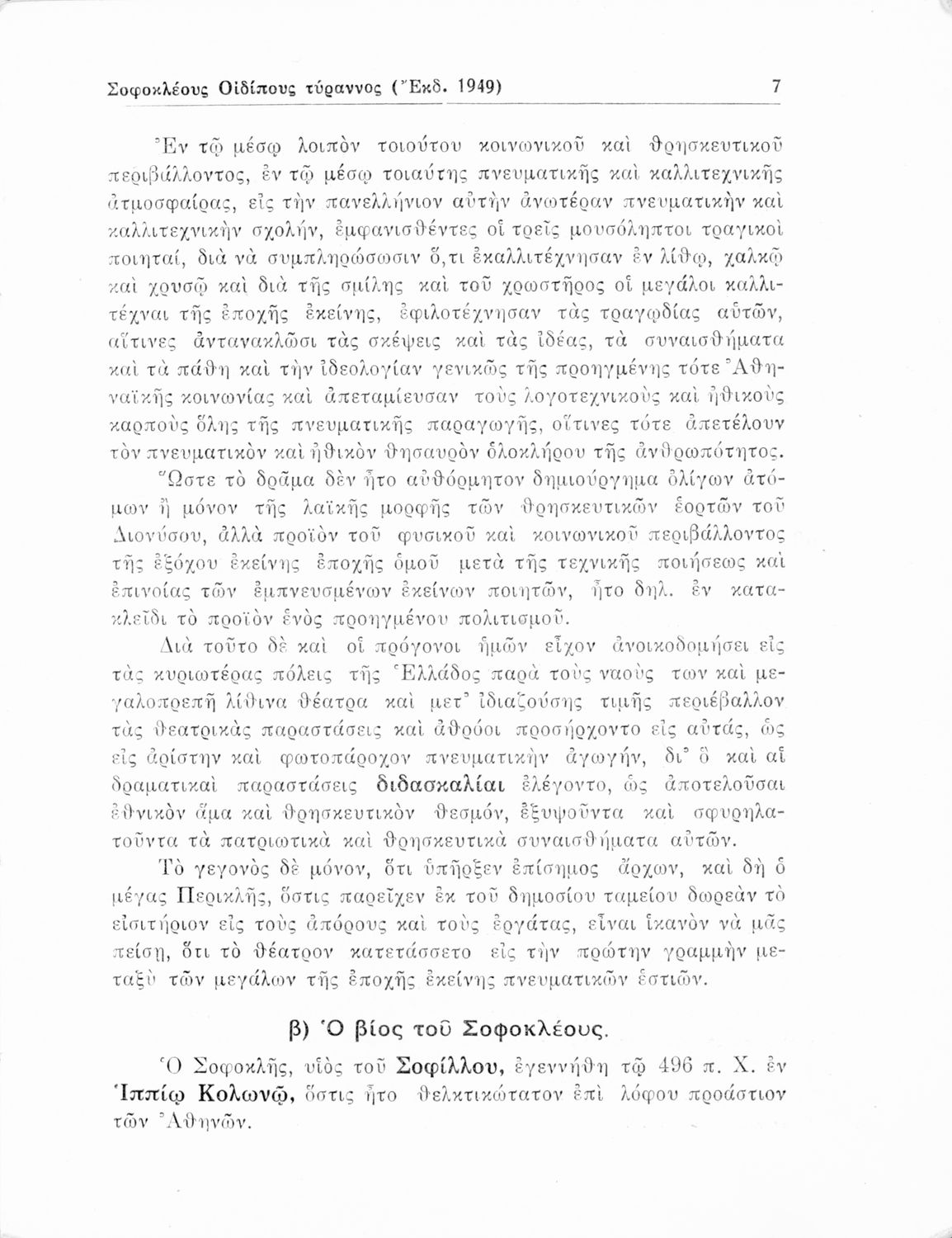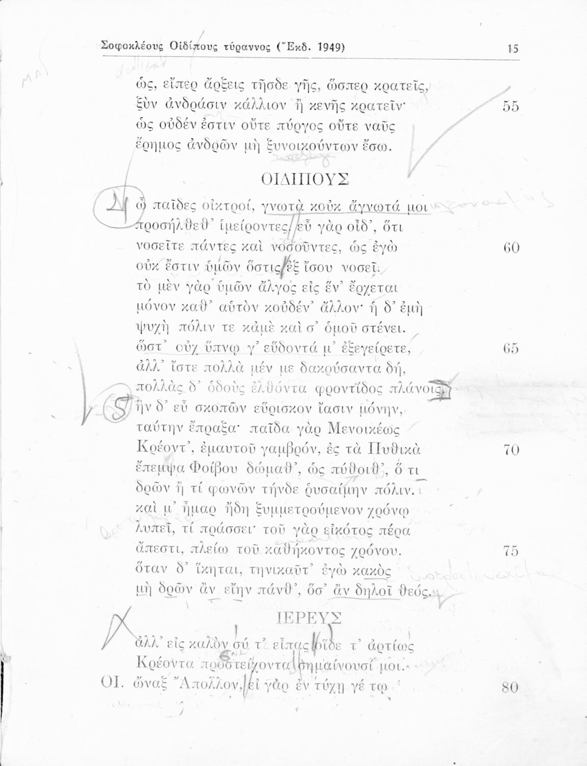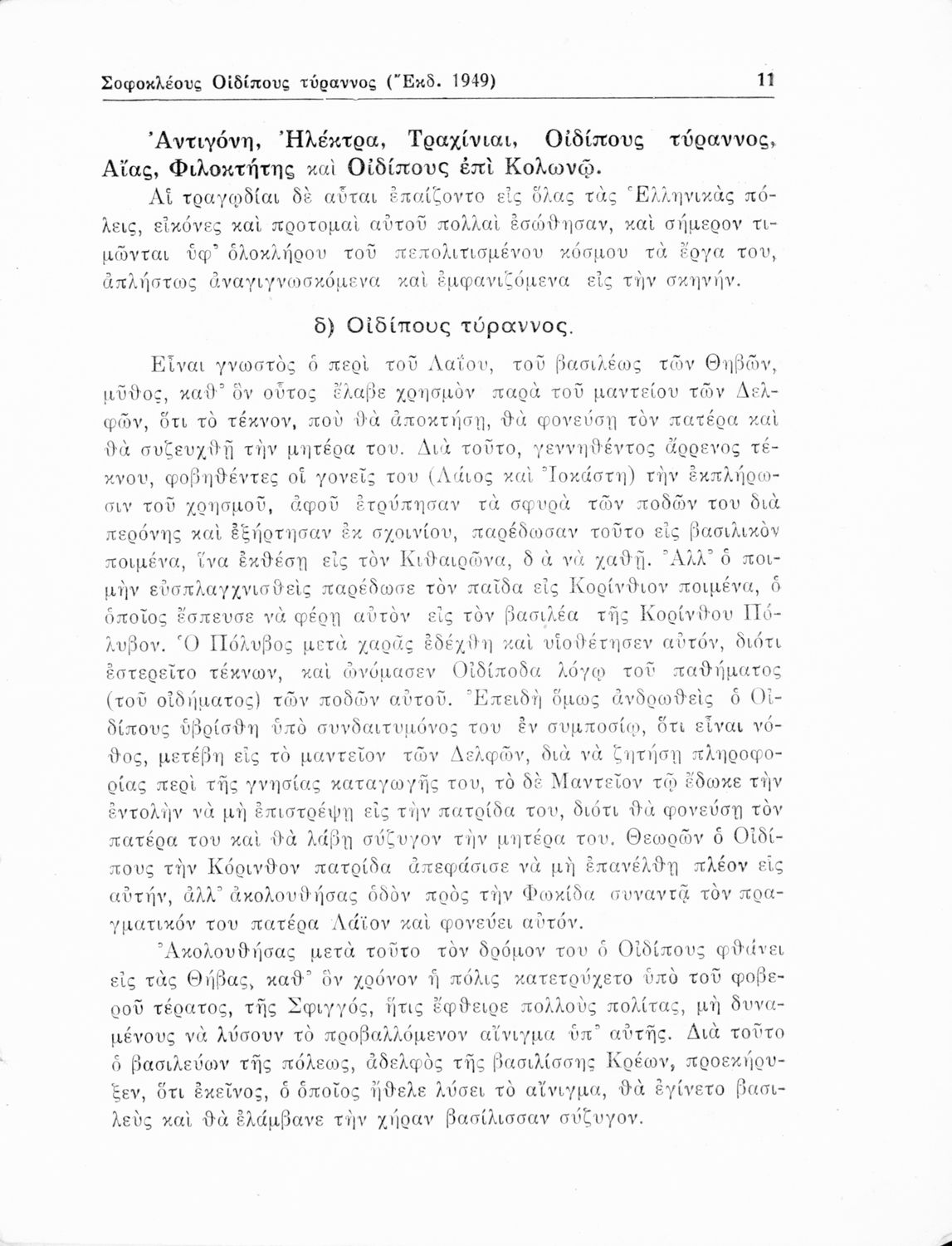 Σχολικό εγχειρίδιο της ΣΤ ΄ Γυμνασίου για το μάθημα των Αρχαίων. Περιέχει το πρωτότυπο κείμενο της τραγωδίας του Σοφοκλή με ερμηνευτικά, πραγματολογικά σχόλια και λεξιλογικές παρατηρήσεις.