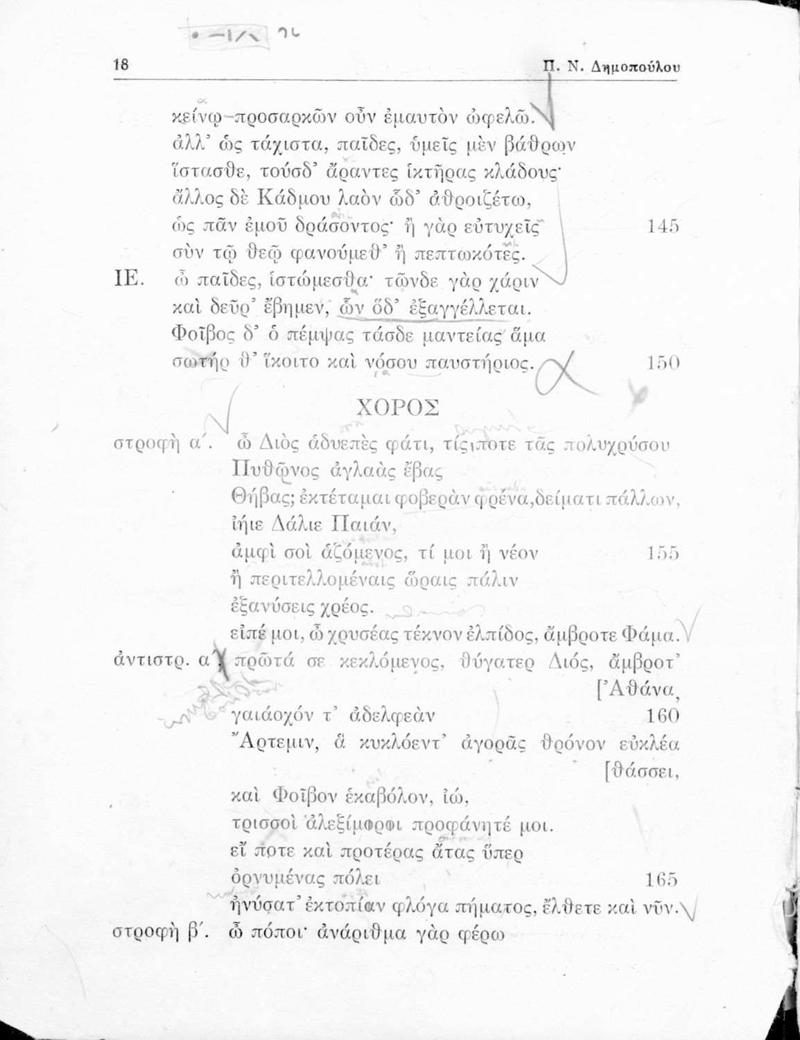 LDR 01144 2200193 4500 035 ## _a01-17329 040 ## _aΙνστιτούτο Εκπαιδευτικής Πολιτικής 041 ## _ael 100 ## _aΣοφοκλής _aΠ.Ν Δημόπουλος (σχόλια) 110 ## _a17329 245 0# _aΣοφοκλέους Οιδίπους Τύραννος. Δια την ΣΤ΄ Τάξιν των Γυμνασίων 260 ## _aΑθήνα _bΟργανισμός Εκδόσεως Σχολικών Βιβλίων _c1949 300 ## _a128 520 ## _aΣχολικό εγχειρίδιο της ΣΤ ΄ Γυμνασίου για το μάθημα των Αρχαίων. Περιέχει το πρωτότυπο κείμενο της τραγωδίας του Σοφοκλή με ερμηνευτικά, πραγματολογικά σχόλια και λεξιλογικές παρατηρήσεις. 521 ## _aΣΤ' Γυμνασίου 522 ## _aΕλλάδα 546 ## _aΑπλή καθαρεύουσα 563 ## _aΜαλακό Εξώφυλλο 650 #4 _aΔράμα _aΚάθαρση _aΟιδίπους Τύραννος _aΣοφοκλής _aΣφίγγα