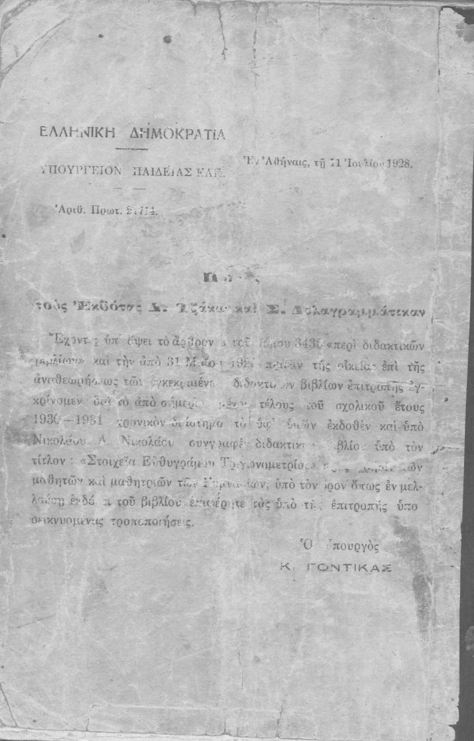 Υπουργική απόφαση / Σύμβαση: 21714/11-7-1928