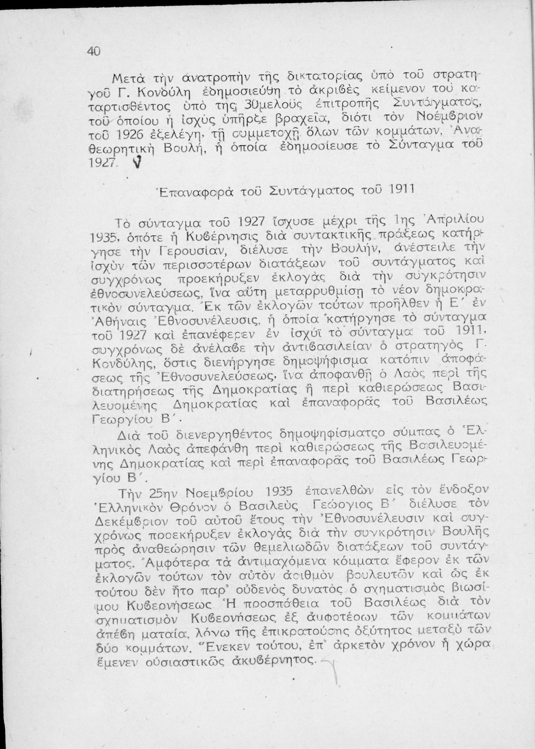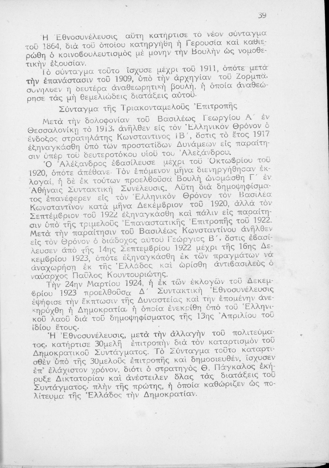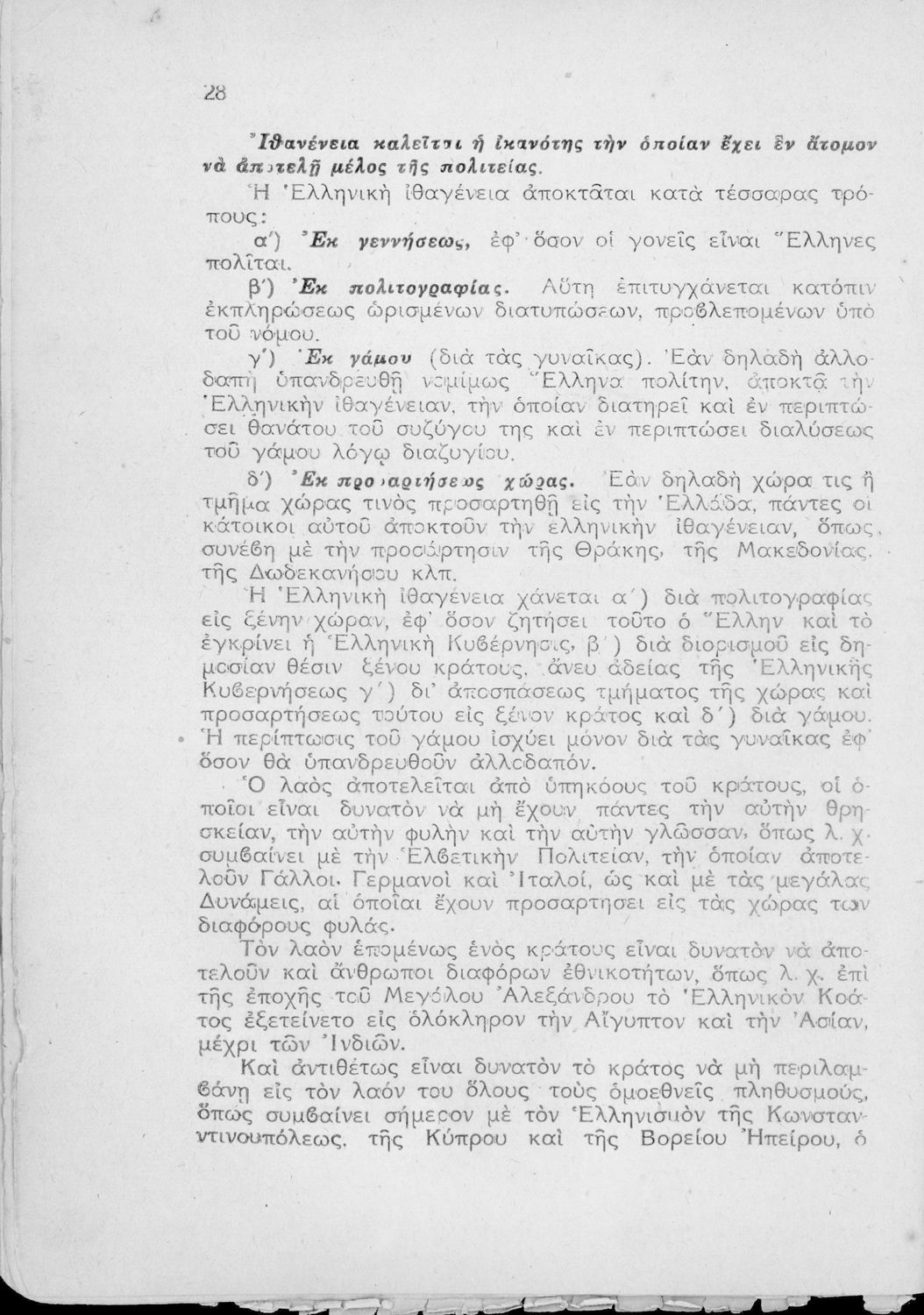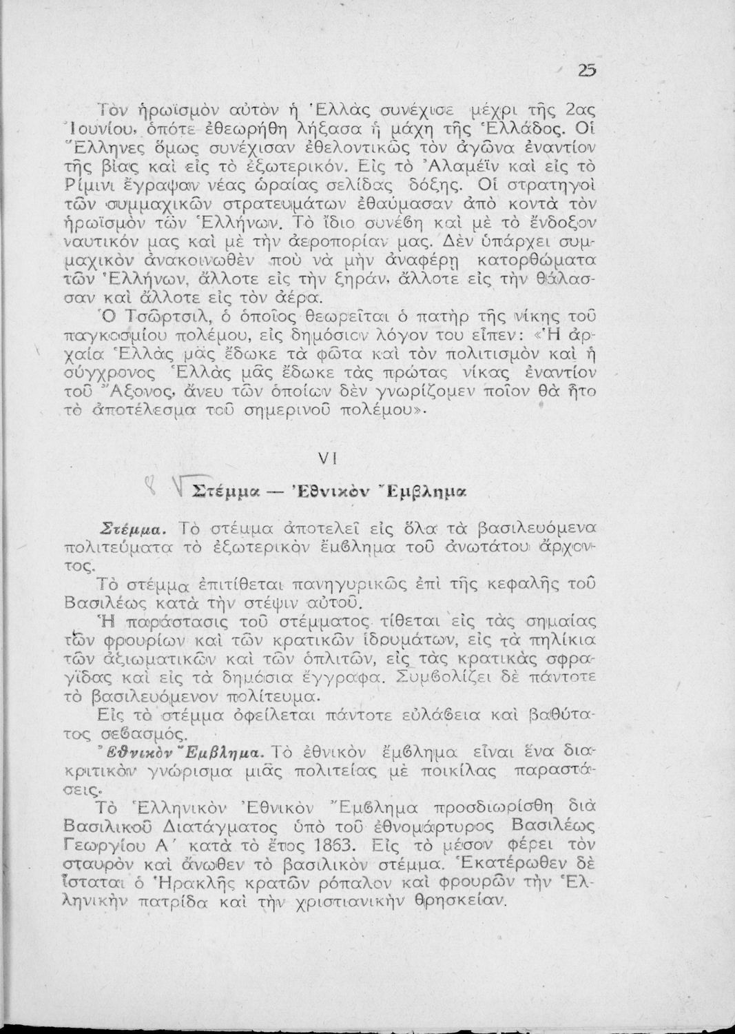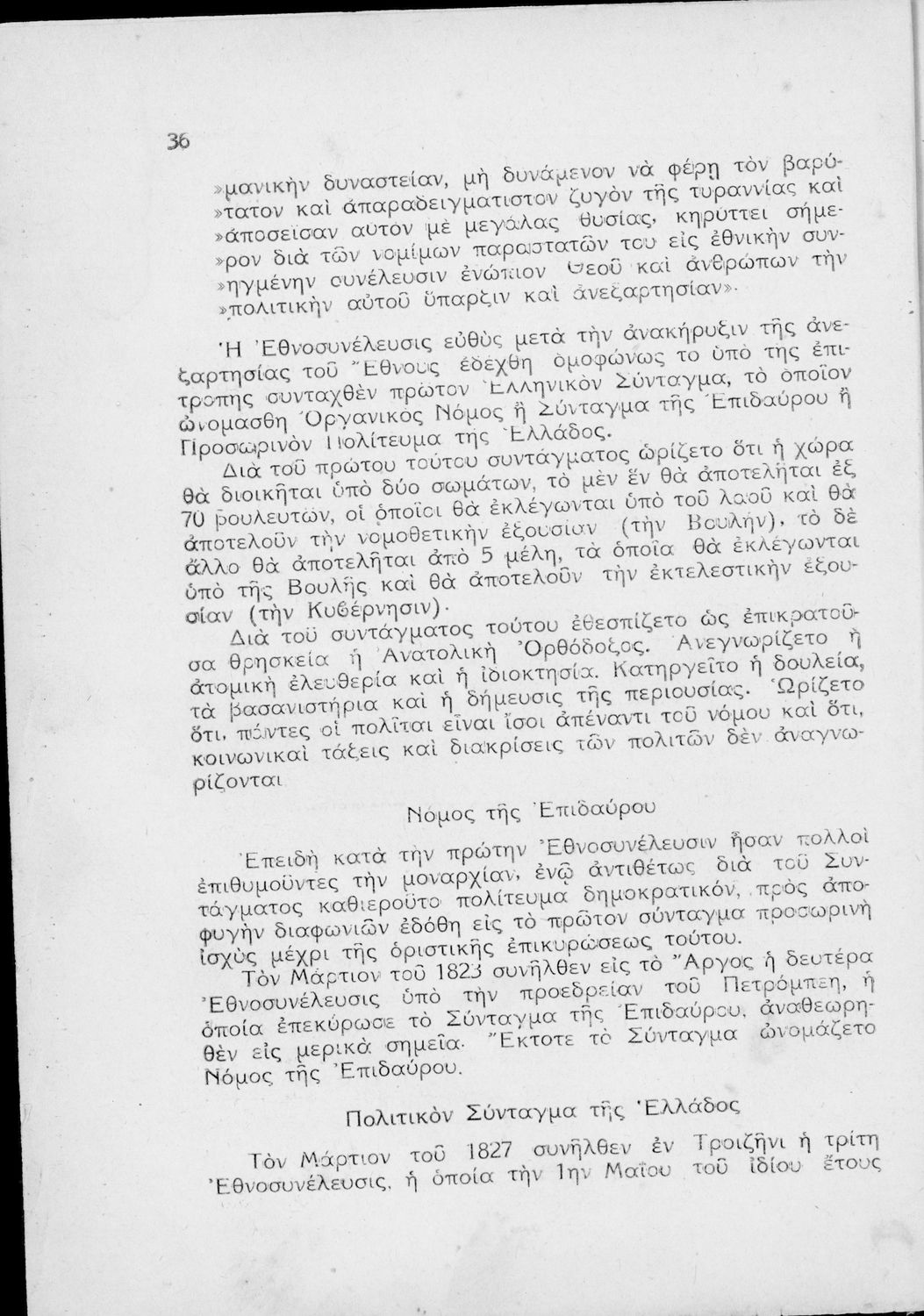 Παιδαγωγικό βοήθημα Αγωγής του Πολίτη που περιέχει στοιχεία Κοινωνιολογίας, Κοινωνικής Οικονομίας και Δικαίου και πραγματεύεται ζητήματα του συντάγματος της Ελλάδος, των τριών εξουσιών, των εθνικών συμβόλων και των καθηκόντων και δικαιωμάτων του πολίτη. Περιέχει και το Σύνταγμα του 1911 που επανήρθε σε ισχύ το 1946.
