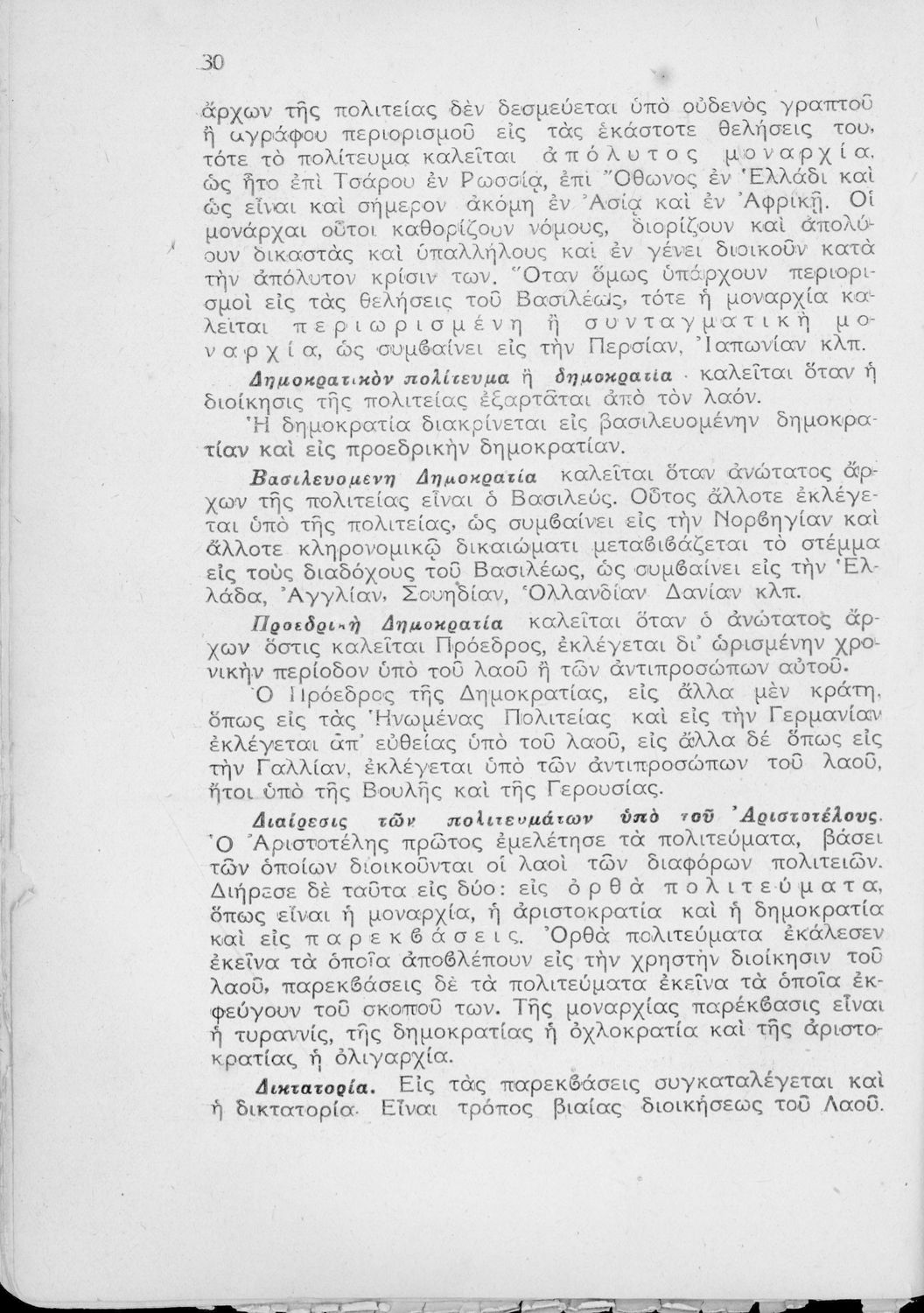 Βαθμίδα εκπαίδευσης: Δευτεροβάθμια Μάθημα: Αγωγή Του Πολίτη Γλώσσα: Απλή καθαρεύουσα Παρουσίαση περιεχομένου: Παιδαγωγικό βοήθημα Αγωγής του Πολίτη που περιέχει στοιχεία Κοινωνιολογίας, Κοινωνικής Οικονομίας και Δικαίου και πραγματεύεται ζητήματα του συντάγματος της Ελλάδος, των τριών εξουσιών, των εθνικών συμβόλων και των καθηκόντων και δικαιωμάτων του πολίτη. Περιέχει και το Σύνταγμα του 1911 που επανήρθε σε ισχύ το 1946. |