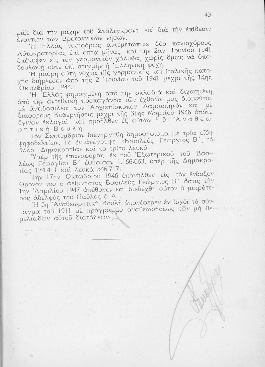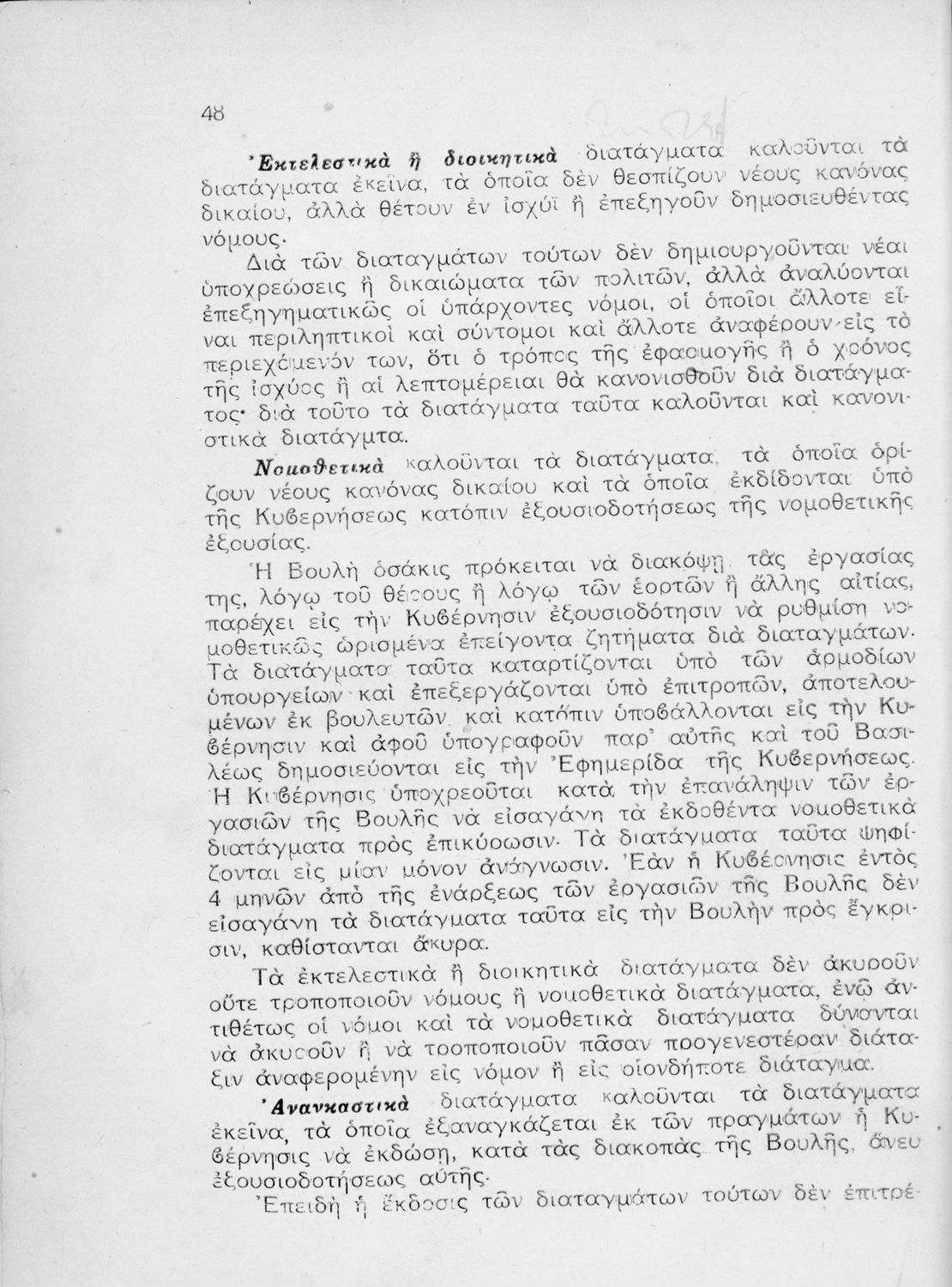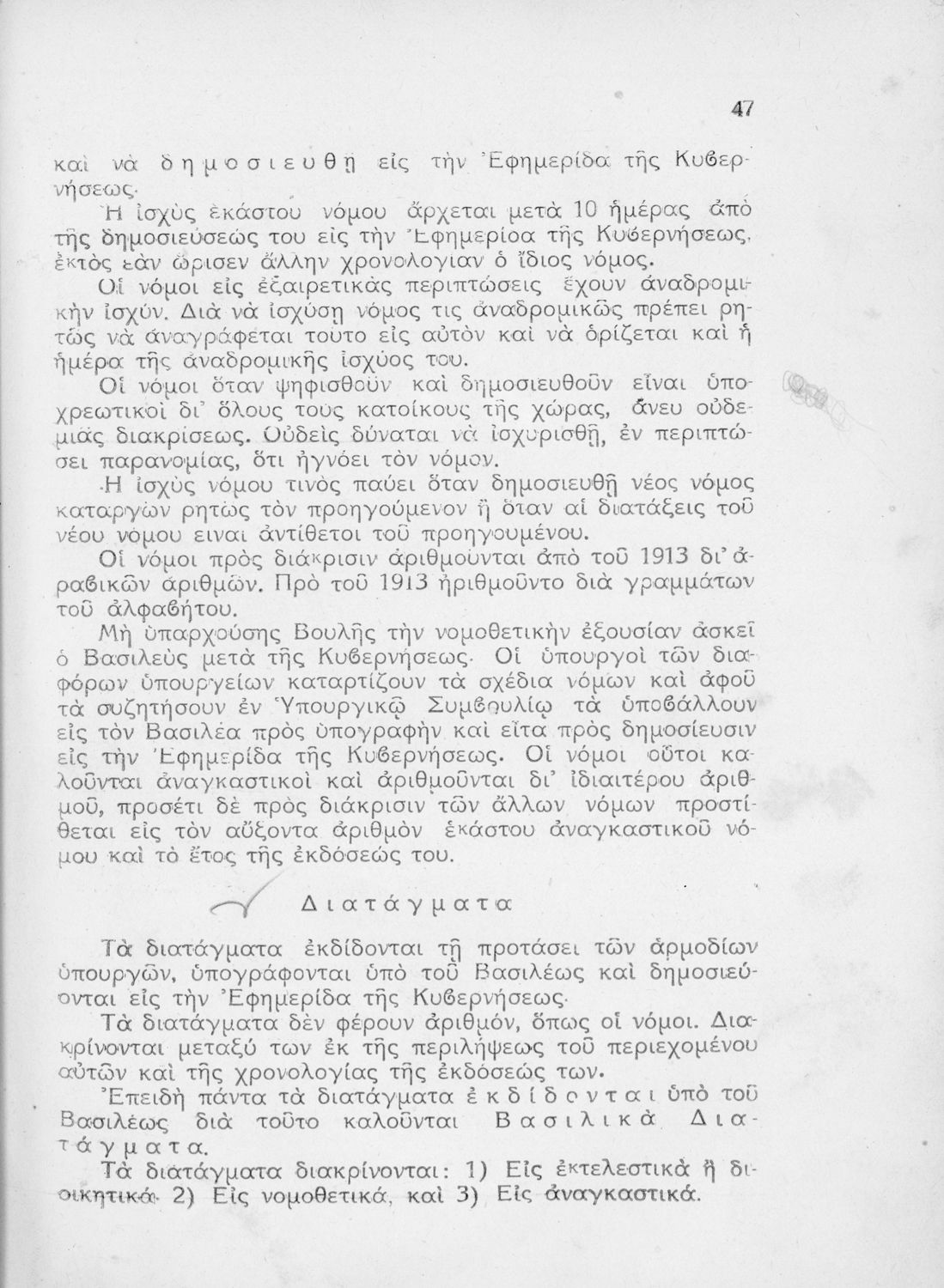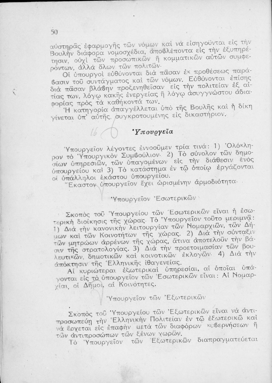 Παιδαγωγικό βοήθημα Αγωγής του Πολίτη που περιέχει στοιχεία Κοινωνιολογίας, Κοινωνικής Οικονομίας και Δικαίου και πραγματεύεται ζητήματα του συντάγματος της Ελλάδος, των τριών εξουσιών, των εθνικών συμβόλων και των καθηκόντων και δικαιωμάτων του πολίτη. Περιέχει και το Σύνταγμα του 1911 που επανήρθε σε ισχύ το 1946.