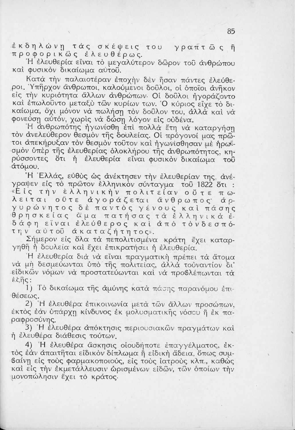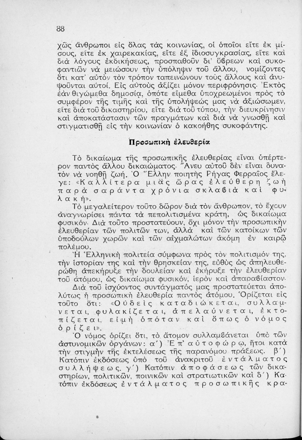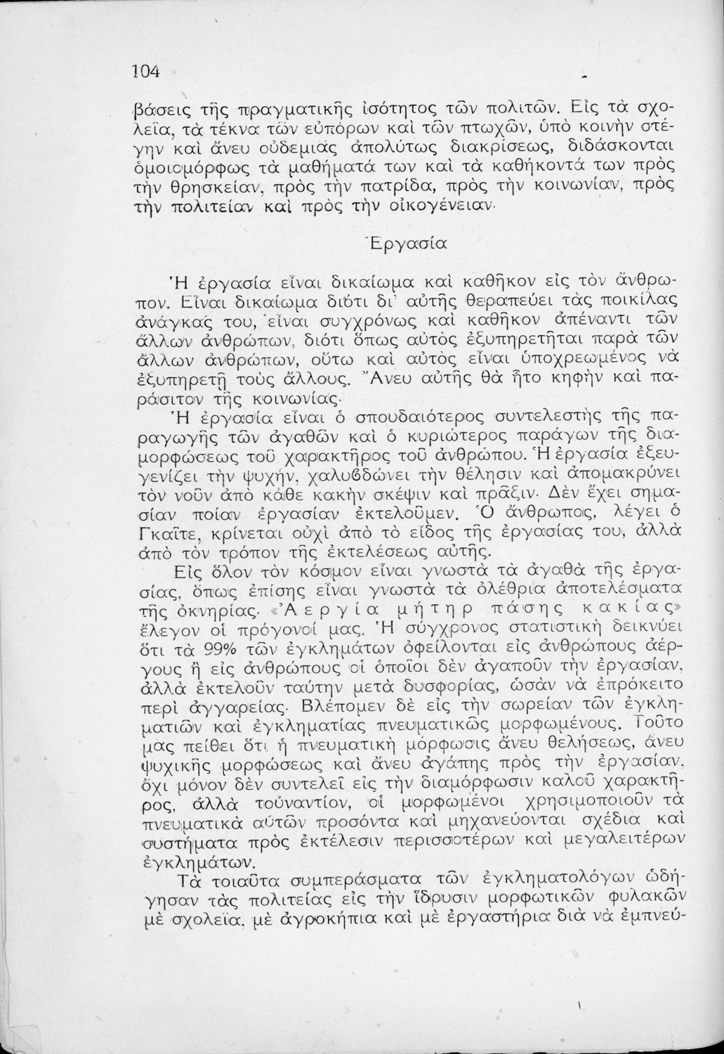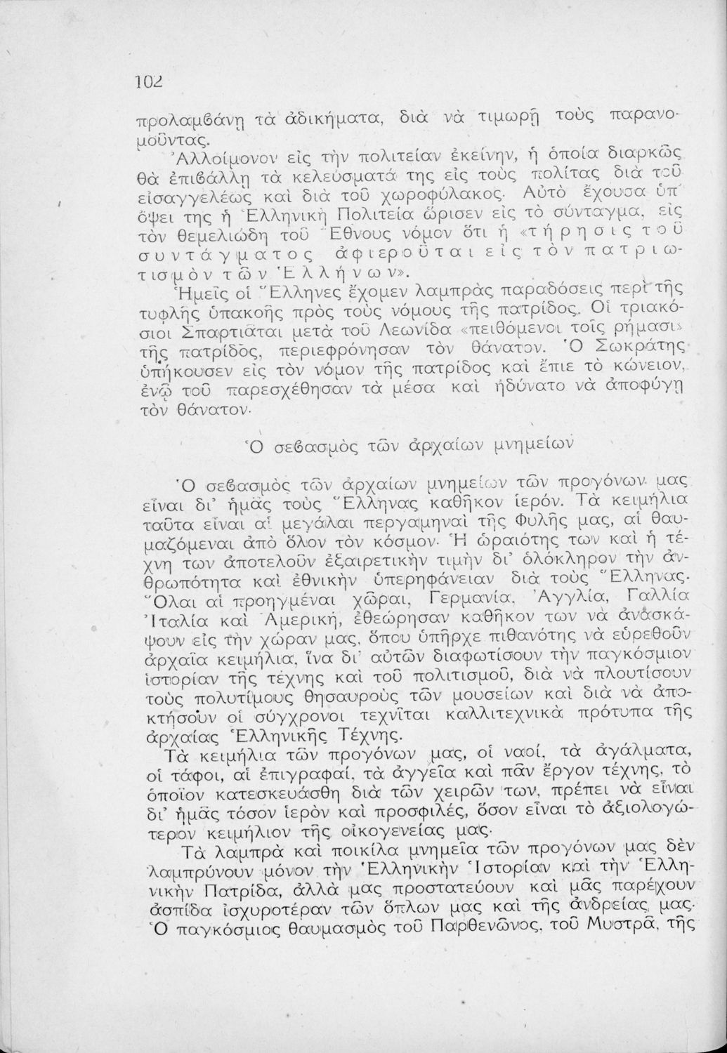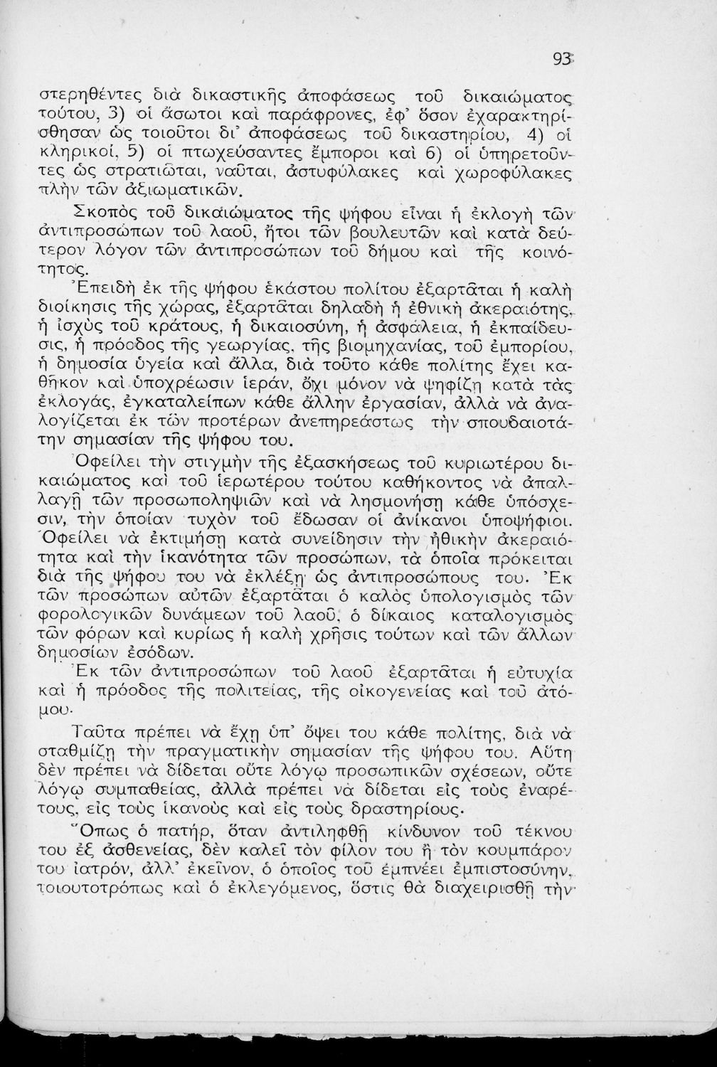 Παιδαγωγικό βοήθημα Αγωγής του Πολίτη που περιέχει στοιχεία Κοινωνιολογίας, Κοινωνικής Οικονομίας και Δικαίου και πραγματεύεται ζητήματα του συντάγματος της Ελλάδος, των τριών εξουσιών, των εθνικών συμβόλων και των καθηκόντων και δικαιωμάτων του πολίτη. Περιέχει και το Σύνταγμα του 1911 που επανήρθε σε ισχύ το 1946.