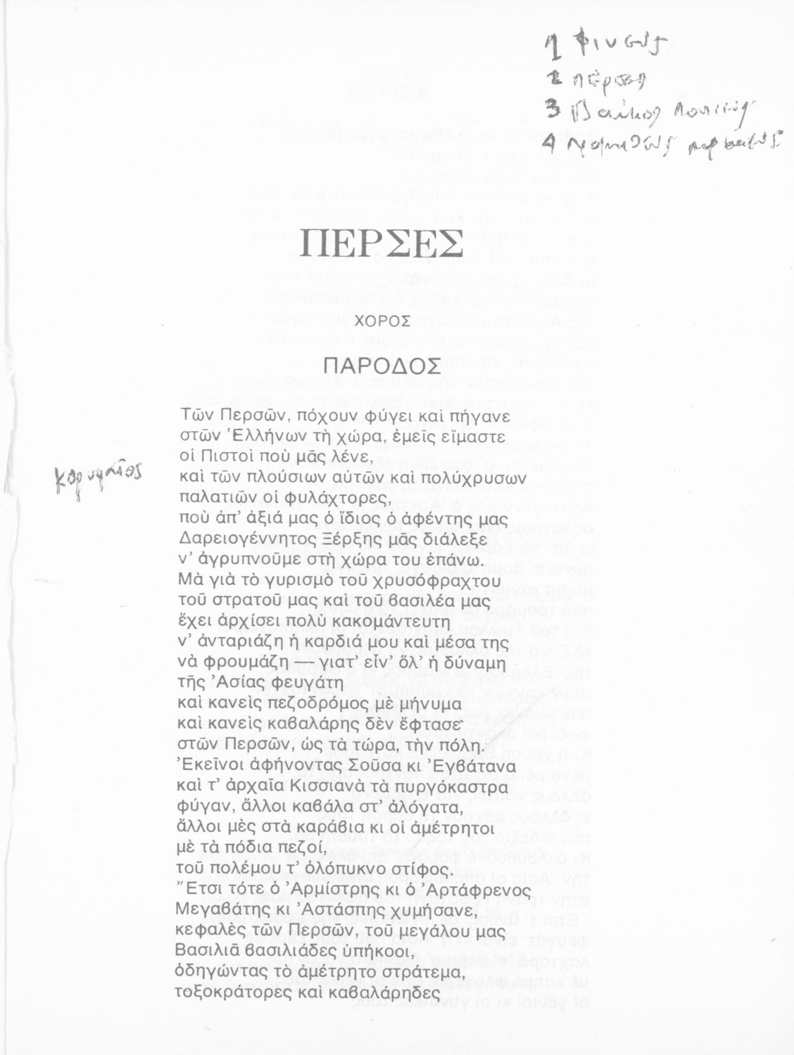 Τίτλος: Αισχύλου Πέρσες, Αριστοφάνους Βάτραχοι, Γ΄ Λυκείου