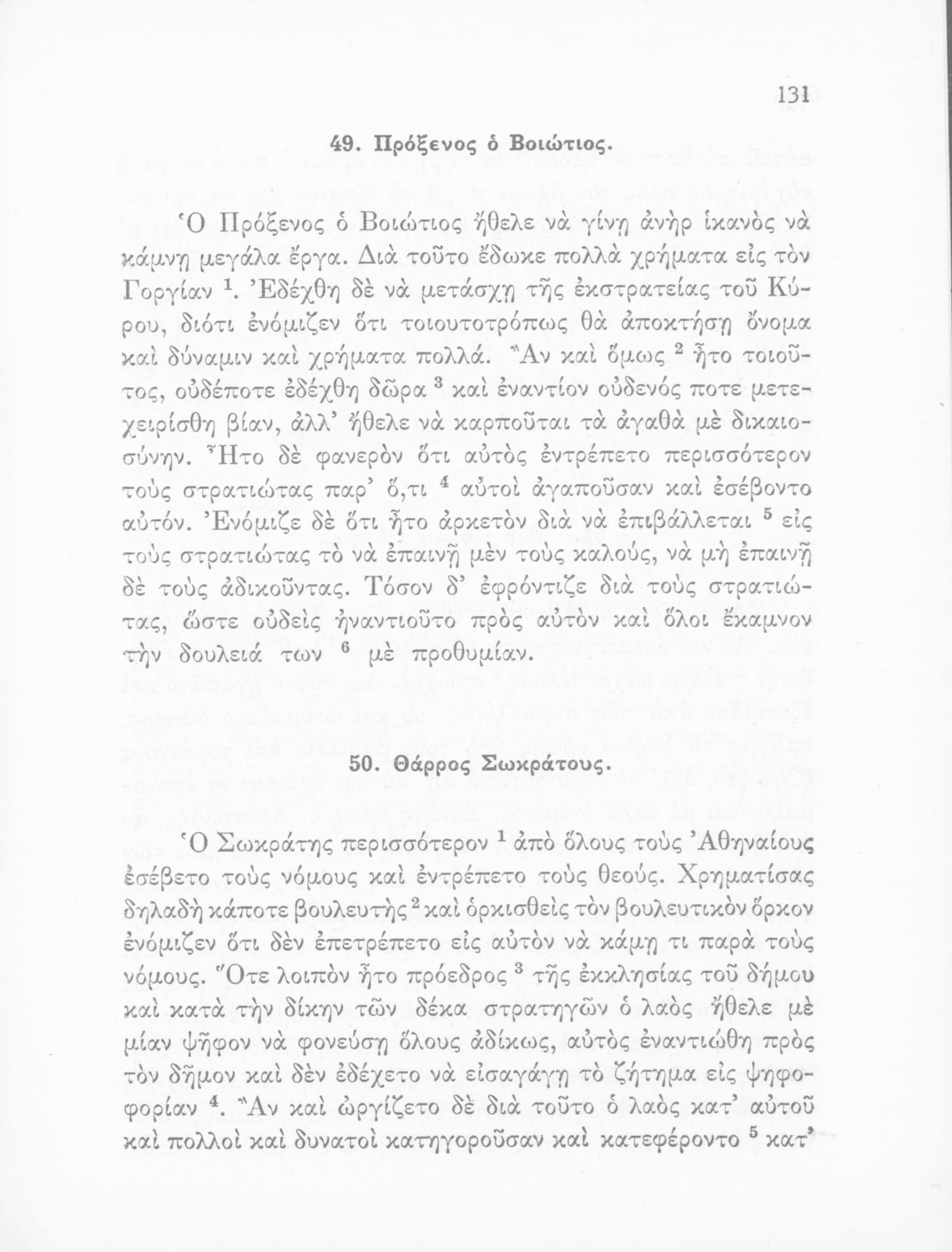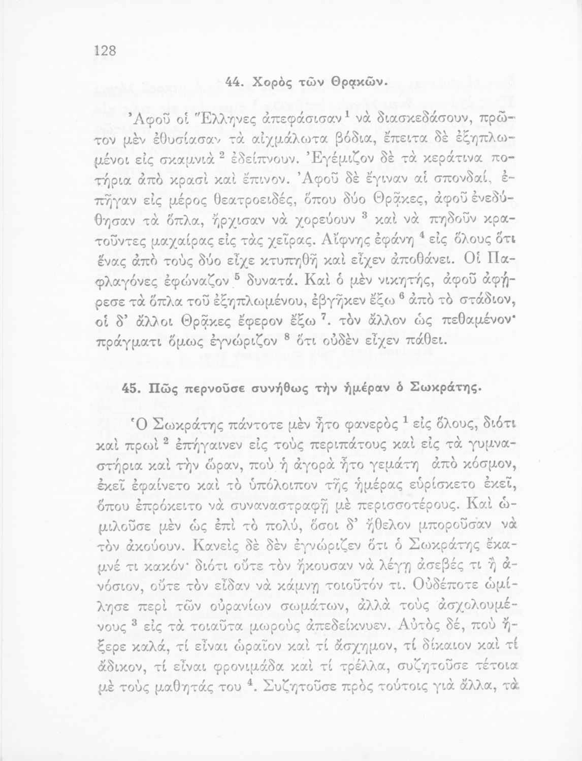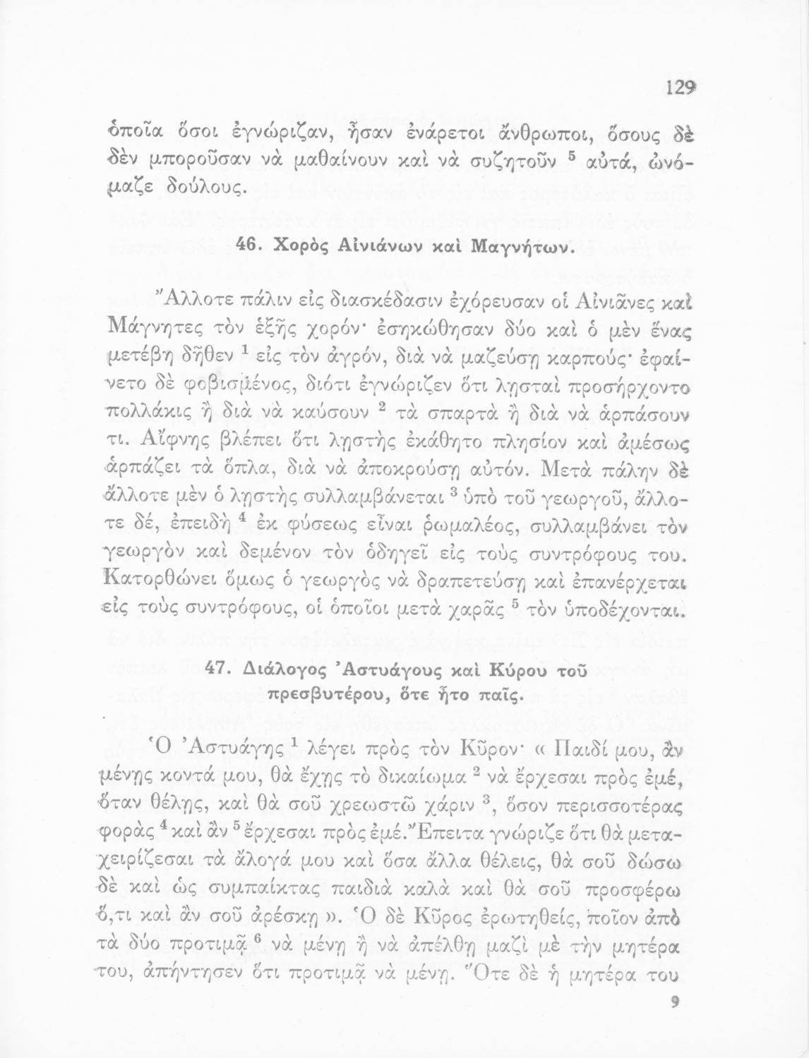 Σχολικό Εγχειρίδιο Αρχαίων Ελληνικών που περιλαμβάνει κείμενα προσαρμοσμένα στη διδασκαλία των γραμματικών και συντακτικών φαινομένων, και ερμηνευτικές και λεξιλογικές σημειώσεις.