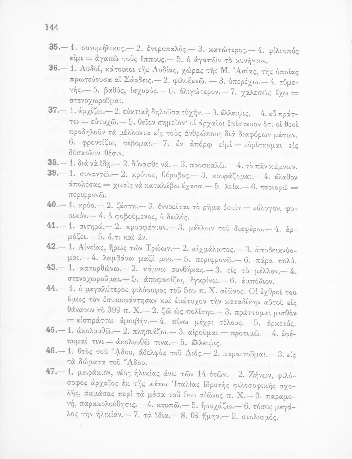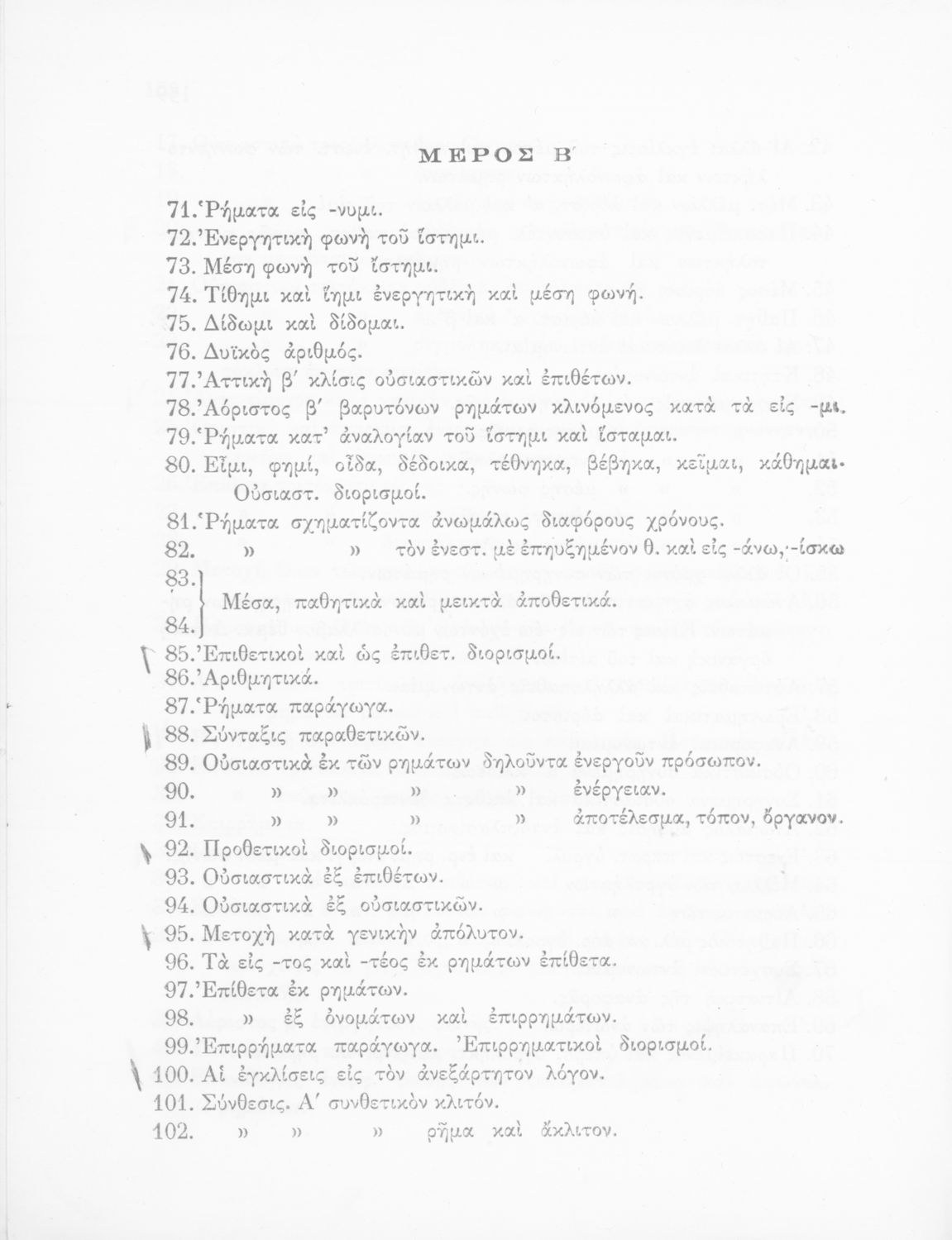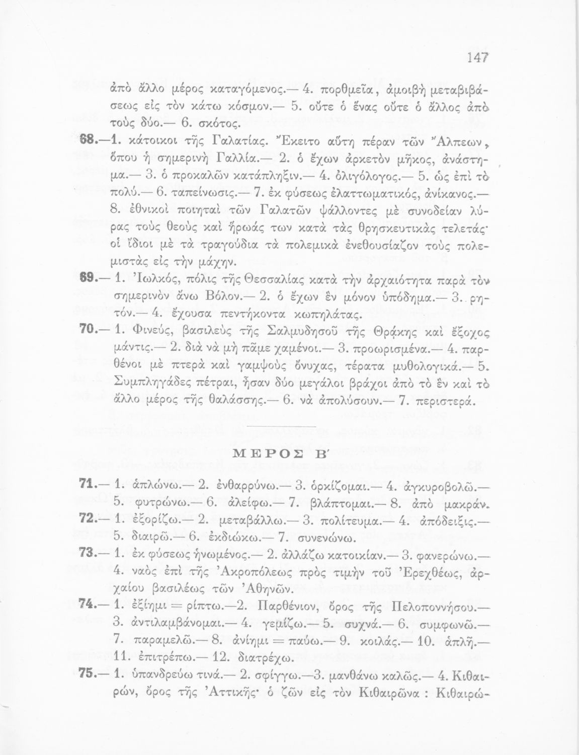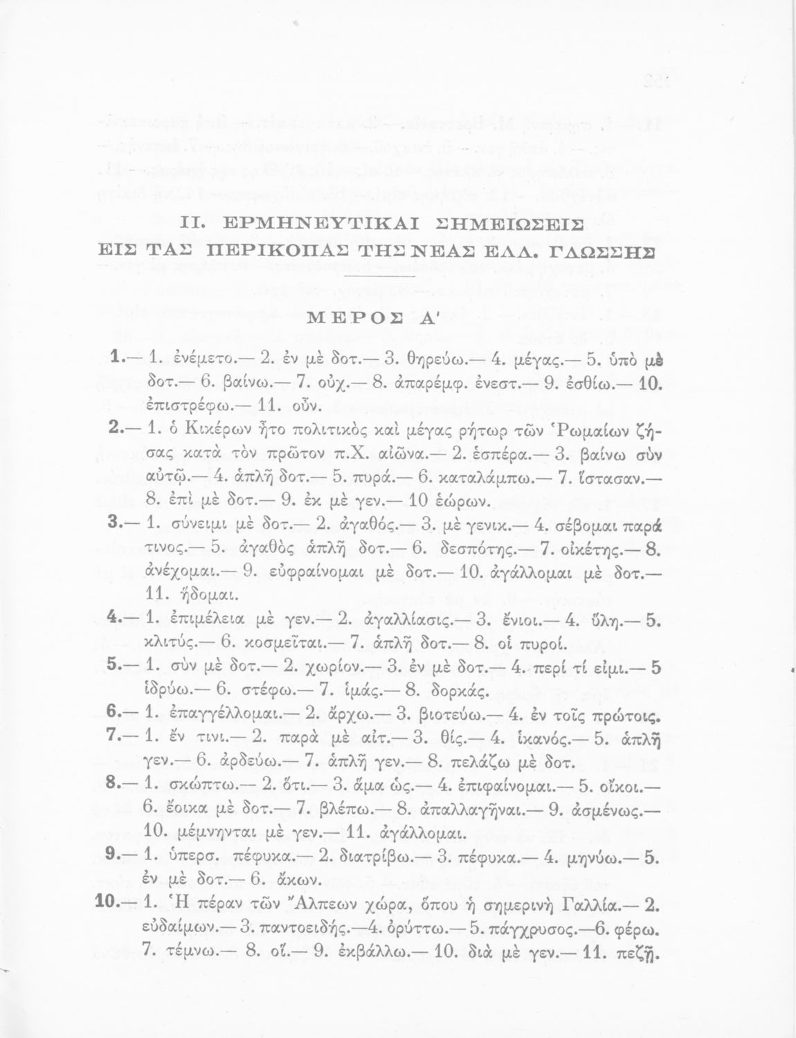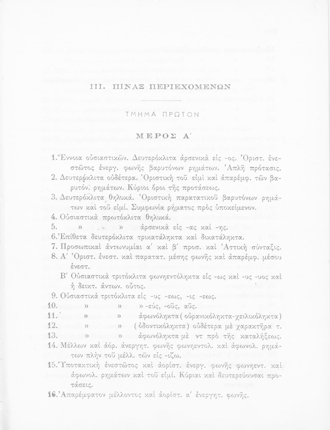 Βαθμίδα εκπαίδευσης: Δευτεροβάθμια Τάξη: Γυμνάσιο Μάθημα: Αρχαία Ελληνικά Γλώσσα: Απλή καθαρεύουσα Παρουσίαση περιεχομένου: Σχολικό Εγχειρίδιο Αρχαίων Ελληνικών που περιλαμβάνει κείμενα προσαρμοσμένα στη διδασκαλία των γραμματικών και συντακτικών φαινομένων, και ερμηνευτικές και λεξιλογικές σημειώσεις. |