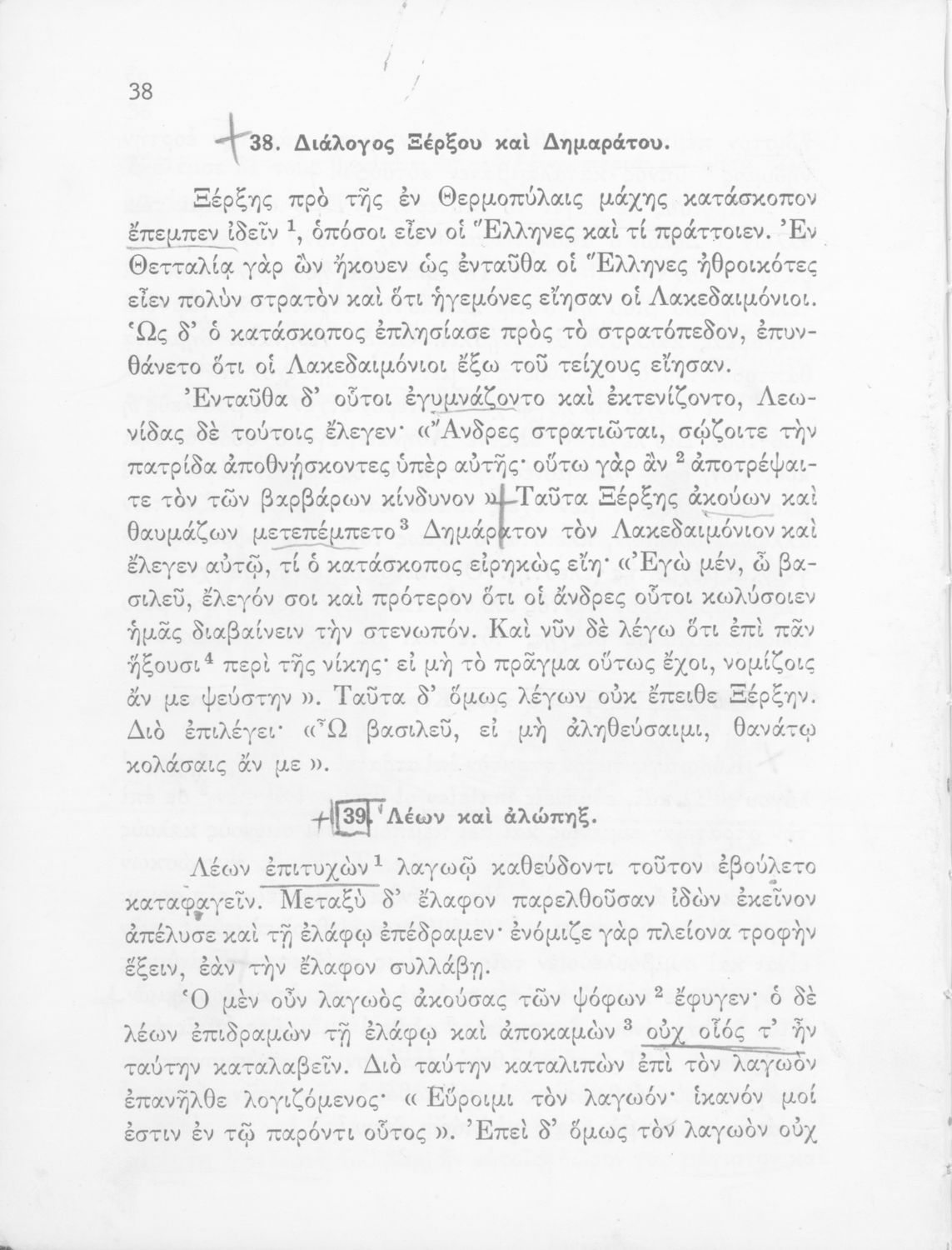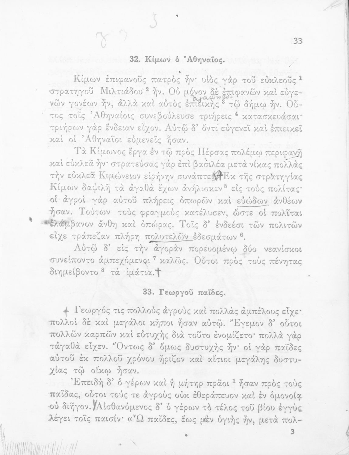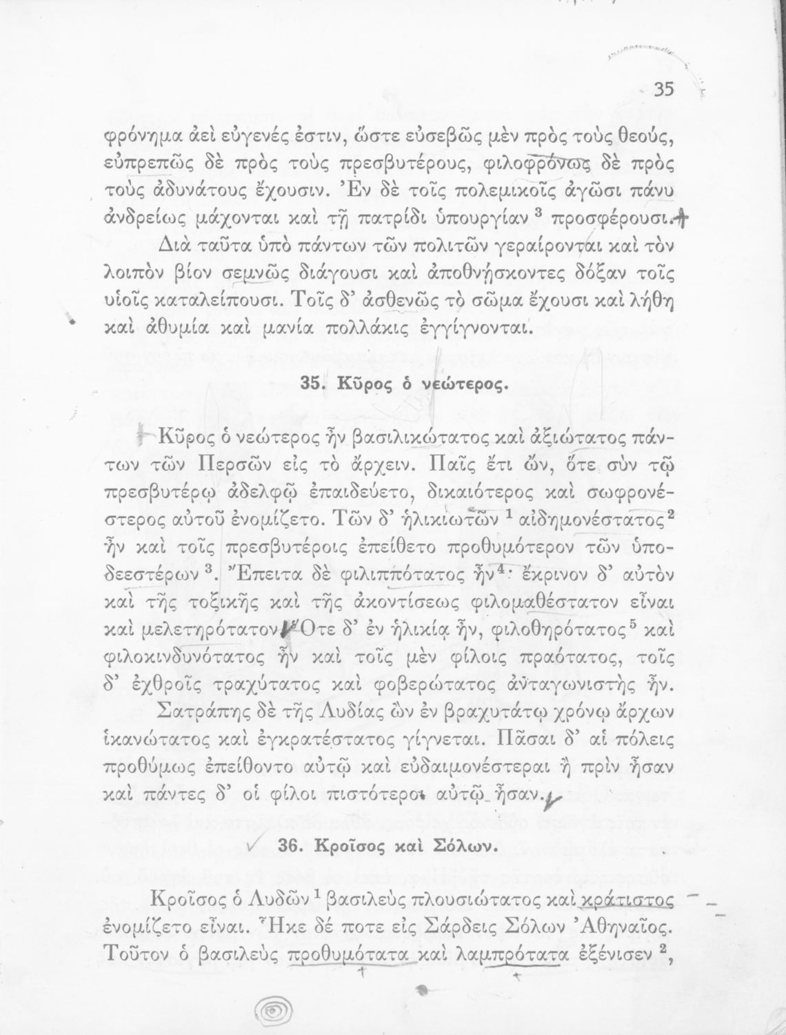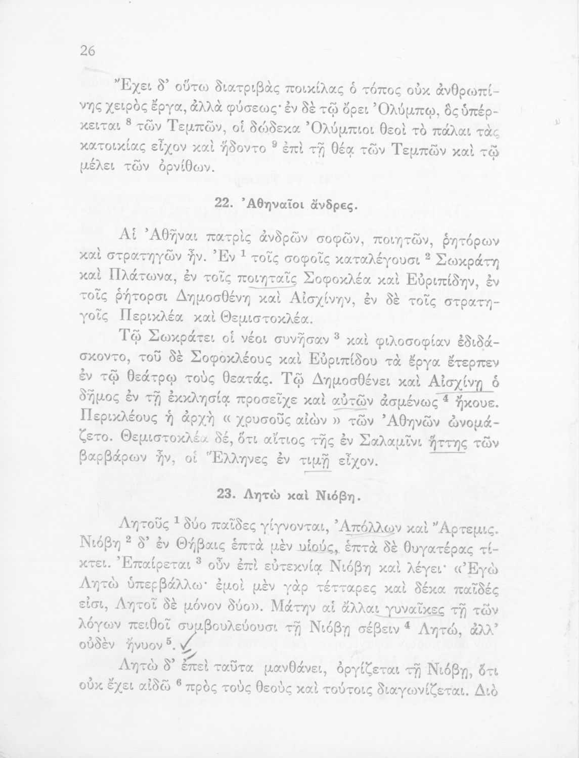 Σχολικό Εγχειρίδιο Αρχαίων Ελληνικών που περιλαμβάνει κείμενα προσαρμοσμένα στη διδασκαλία των γραμματικών και συντακτικών φαινομένων, και ερμηνευτικές και λεξιλογικές σημειώσεις.