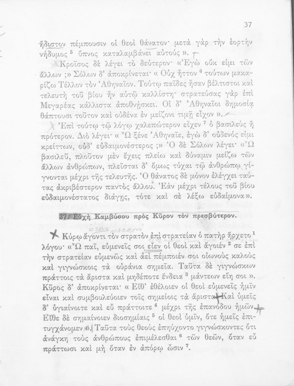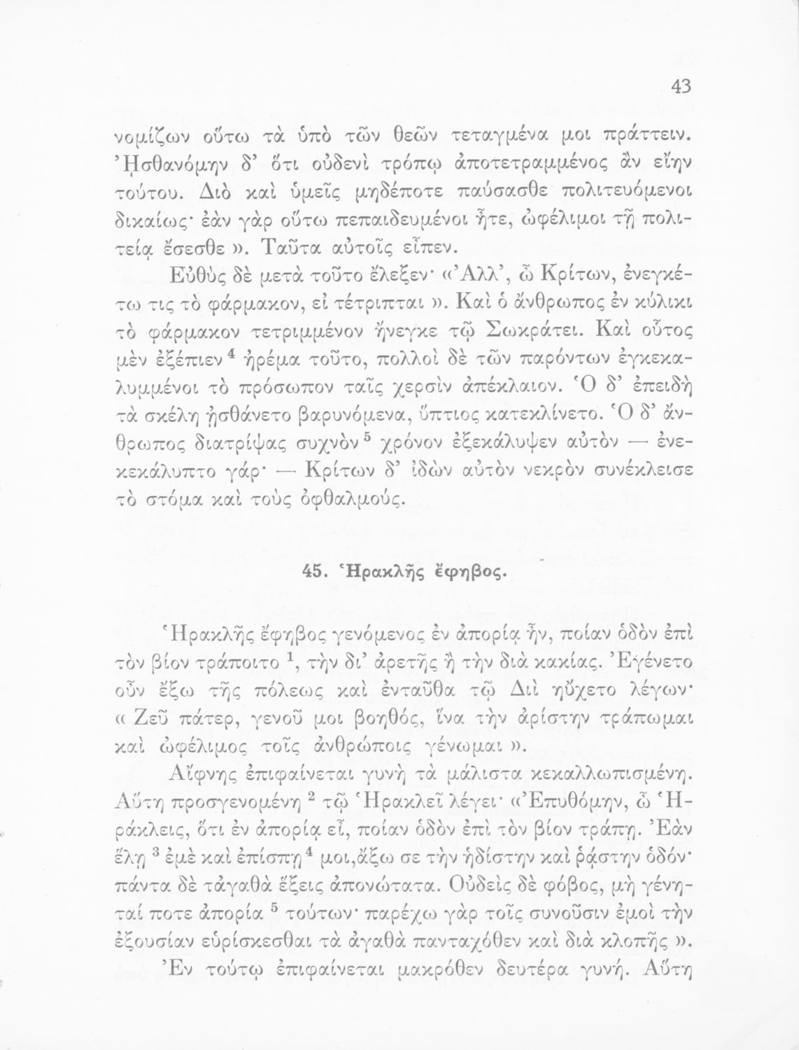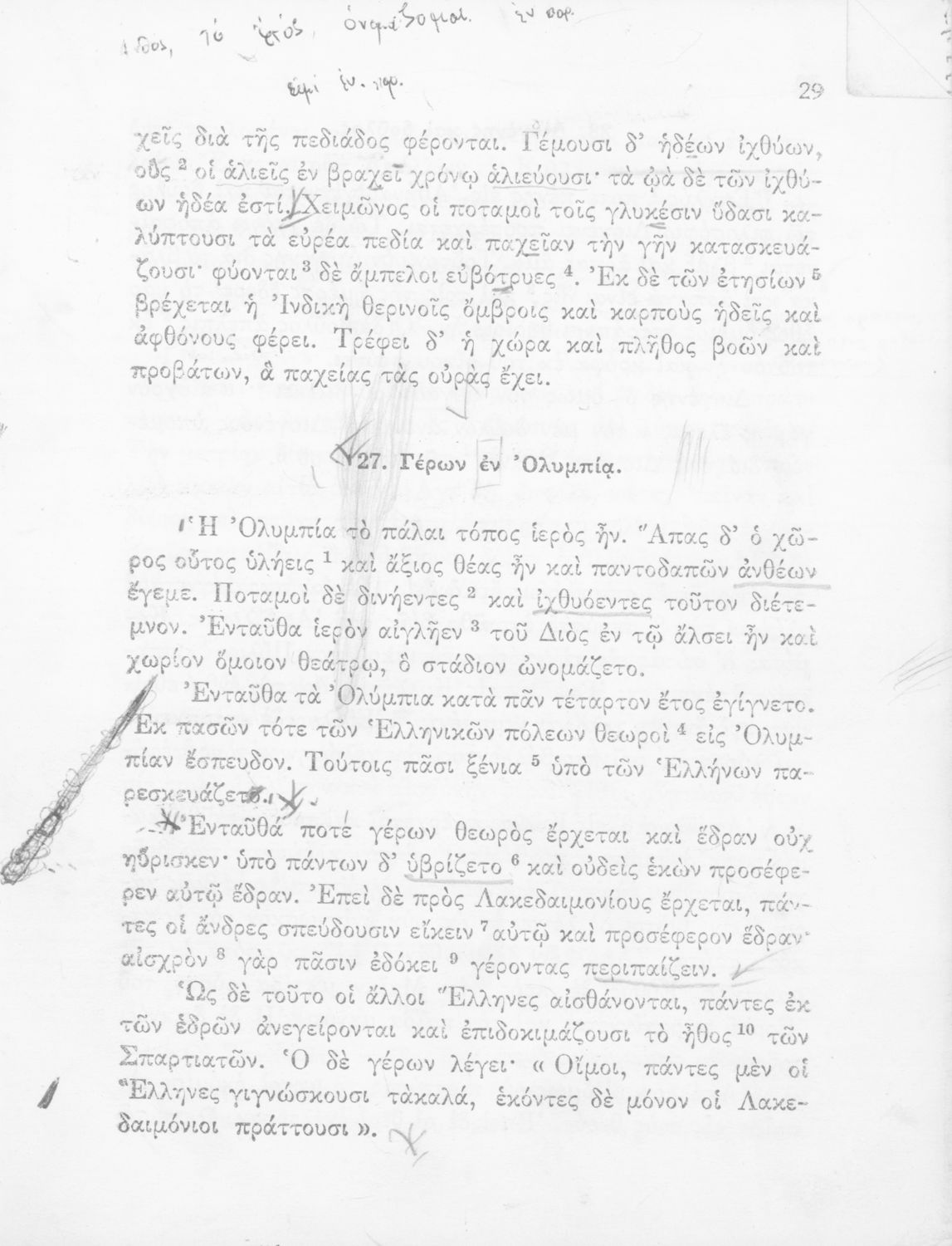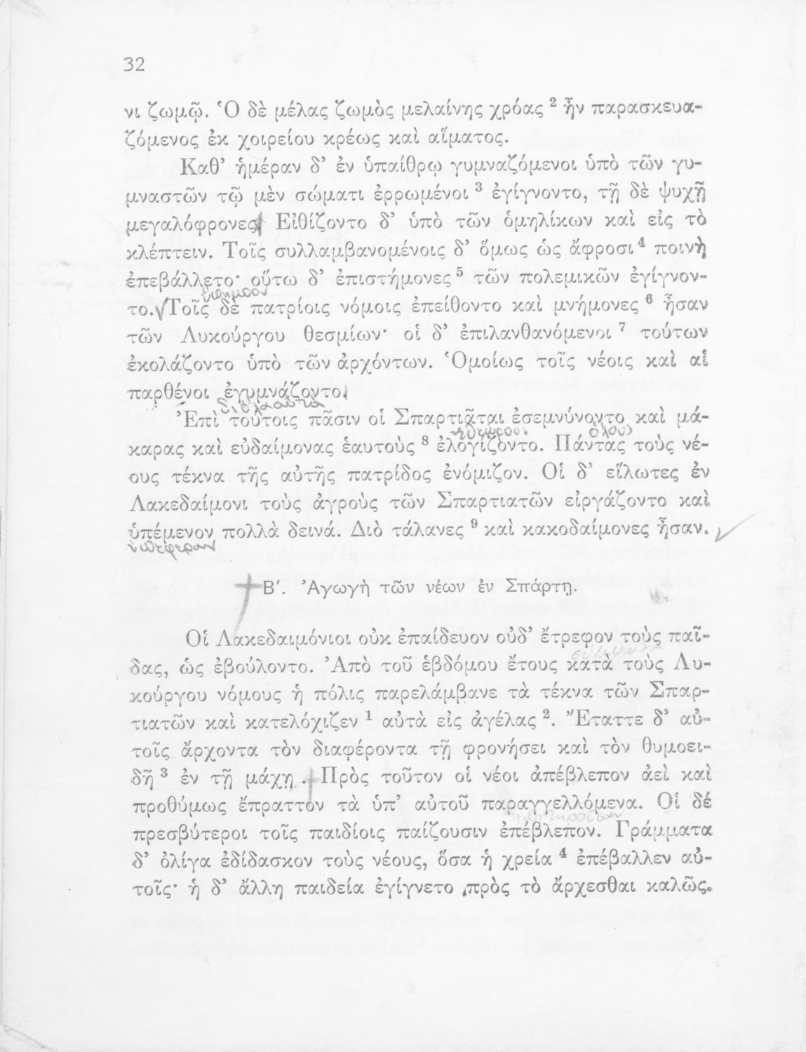 Σχολικό Εγχειρίδιο Αρχαίων Ελληνικών που περιλαμβάνει κείμενα προσαρμοσμένα στη διδασκαλία των γραμματικών και συντακτικών φαινομένων, και ερμηνευτικές και λεξιλογικές σημειώσεις.