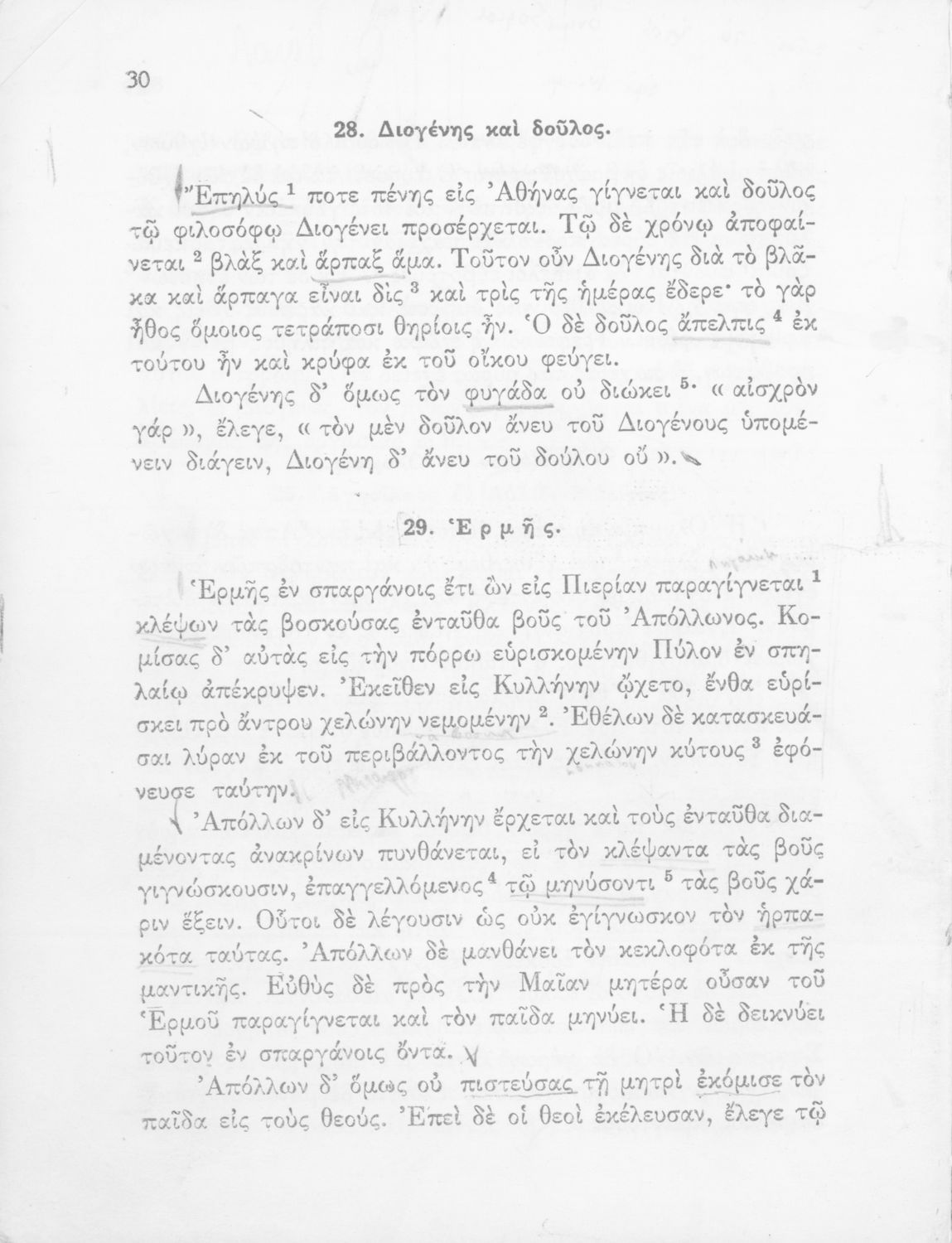 Σχολικό εγχειρίδιο Αρχαίων Ελληνικών που περιλαμβάνει σύντομα κείμενα εμπνευσμένα από την αρχαία ελληνική ιστορία και μυθολογία που χρησιμοποιούνται για τη διδασκαλία γραμματικών και συντακτικών φαινομένων ...