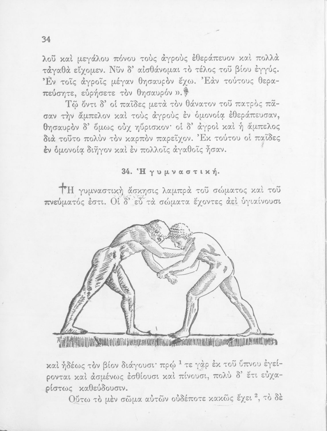 Σχολικό Εγχειρίδιο Αρχαίων Ελληνικών Α' και Β΄ Γυμνασίου που περιλαμβάνει κείμενα προσαρμοσμένα στη διδασκαλία των γραμματικών και συντακτικών φαινομένων, και ερμηνευτικές και λεξιλογικές σημειώσεις.