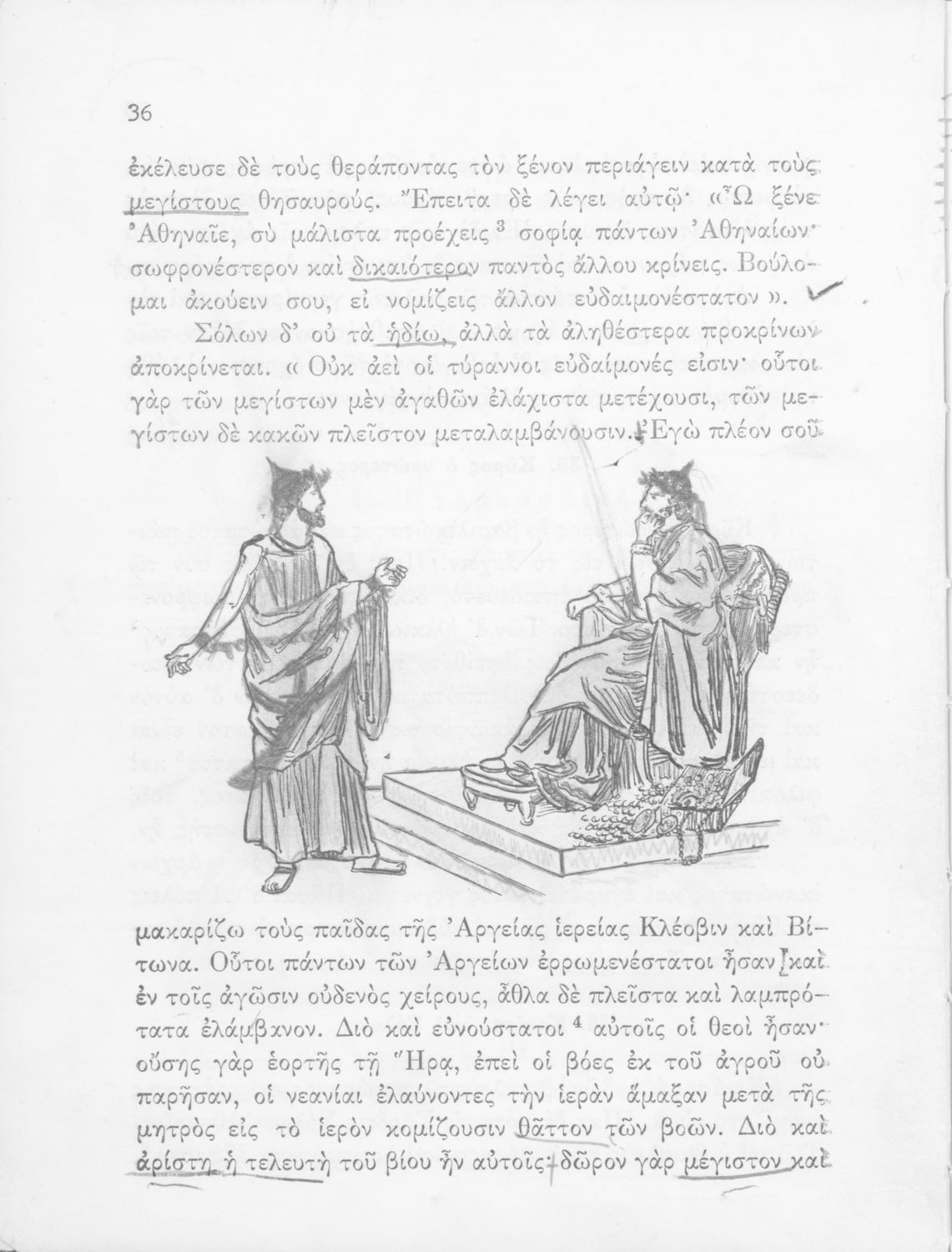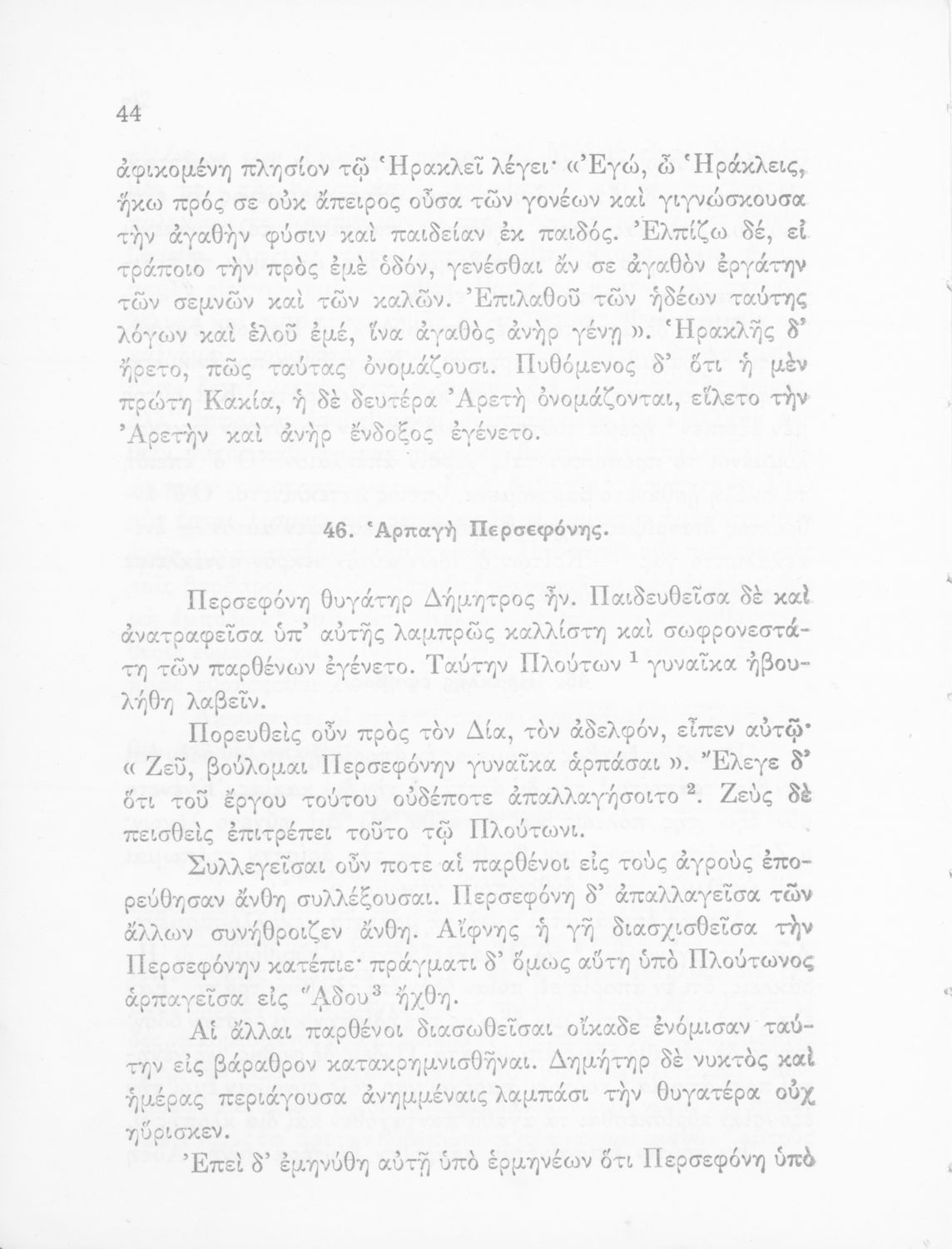 Σχολικό εγχειρίδιο Αρχαίων Ελληνικών Γυμνασίου που περιέχει κείμενα βασισμένα στην αρχαία ελληνική ιστορία και μυθολογία και γραμματικές, συντακτικές και ετυμολογικές παρατηρήσεις.