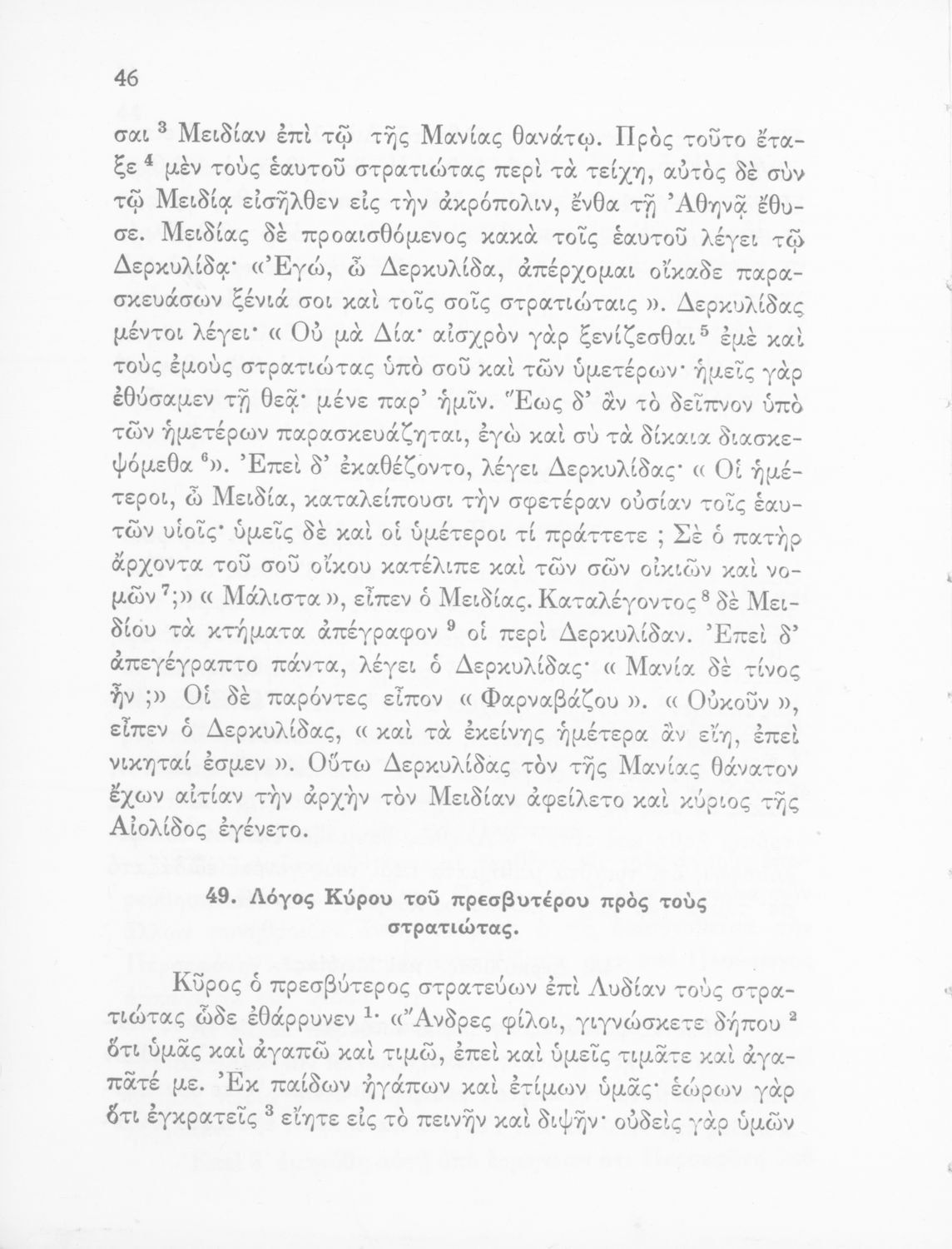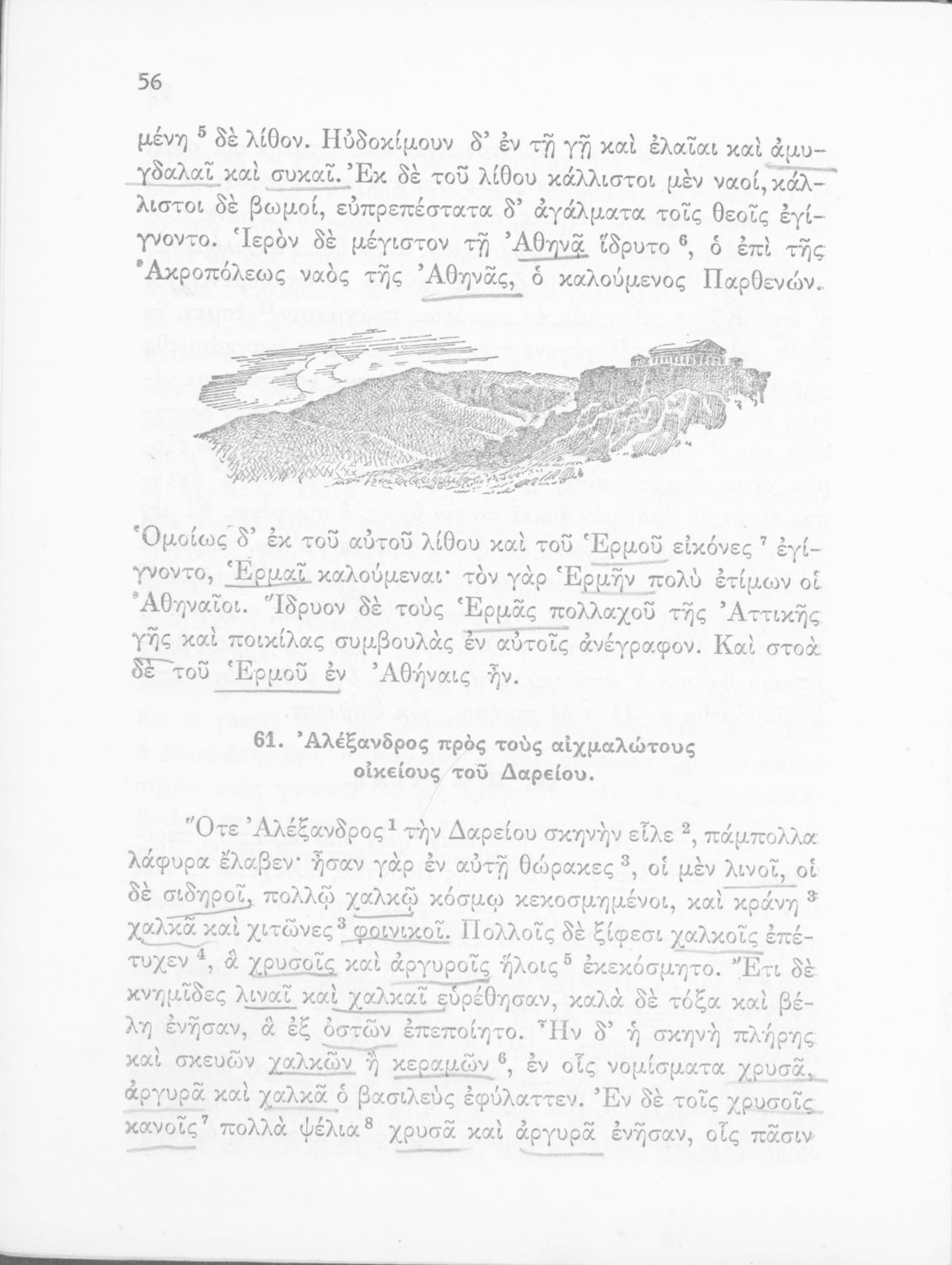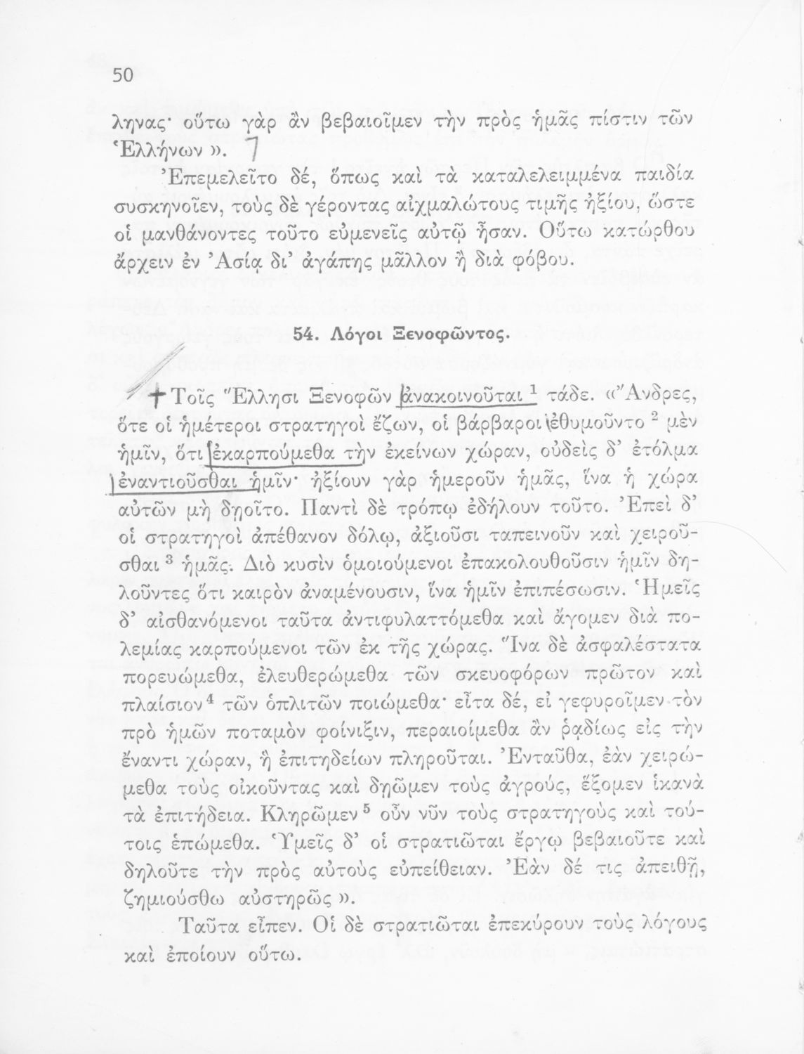 Σχολικό εγχειρίδιο Αρχαίων Ελληνικών Γυμνασίου που περιέχει κείμενα βασισμένα στην αρχαία ελληνική ιστορία και μυθολογία και γραμματικές, συντακτικές και ετυμολογικές παρατηρήσεις.